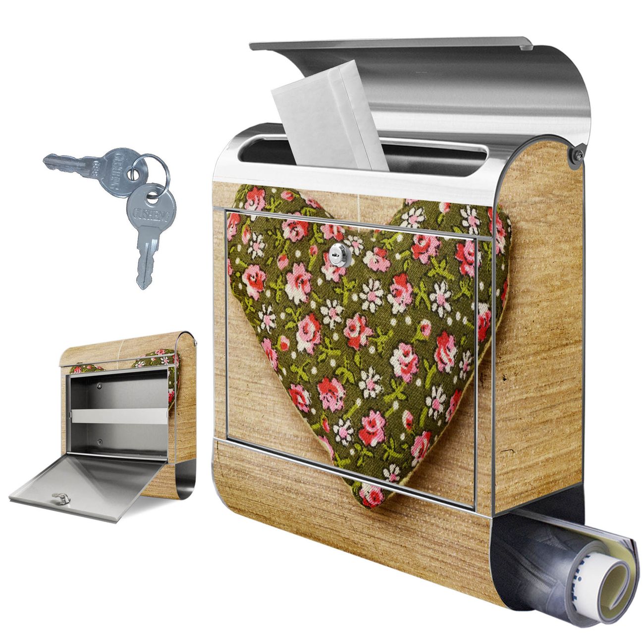Wandbriefkasten Edelstahl Motiv Weiches Herz