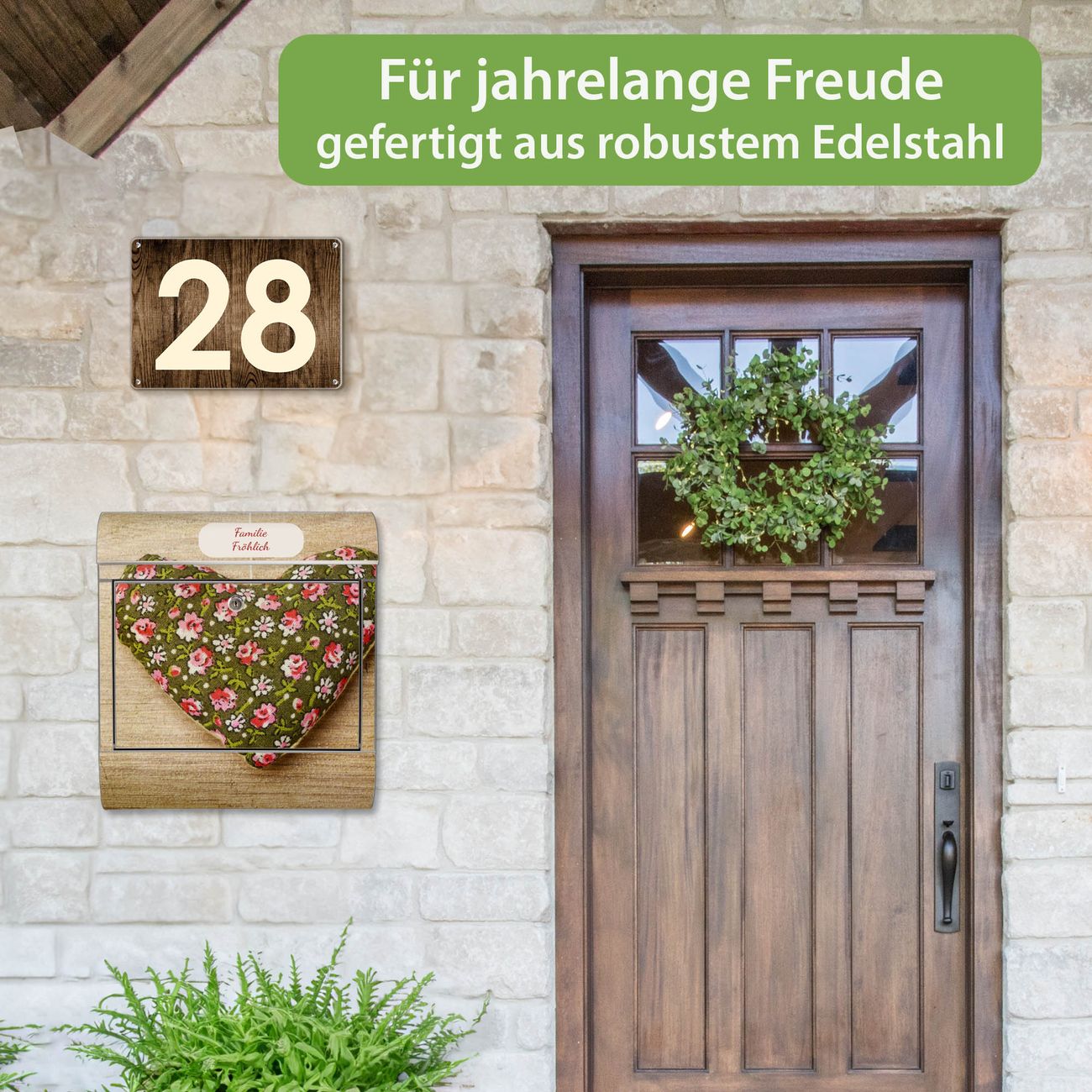 Der Vorschau-Text Familie Fröhlich wird durch Ihren persönlichen Wunschtext ersetzt. Die Schriftart und Farbe bleiben gleich wie in der Vorschau.