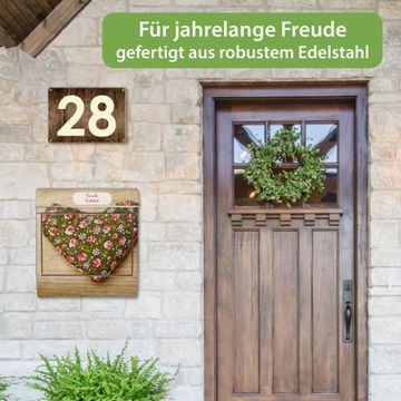 FUNKTION: Der banjado Edelstahl Briefkasten mit Motiv Motiv Weiches Herz bietet Ihnen mit seinem Fassungsvermögen genügend Platz auch für große A4 Sendungen. Das integrierte Zeitungsfach eignet sich hervorragend um unkompliziert die Tageszeitung zu fassen. Auf Wunsch können Sie bei uns den passenden Ständer kaufen und so aus dem Wandbriefkasten einen Standbriefkasten machen. DESIGN: Der Motivbriefkasten hat ein sehr ansprechendes und ausgefallenes Design, damit entlocken Sie Ihren Nachbarn und dem Postboten ein Lächeln. Heben Sie Sich ab von der tristen grauen Masse ohne auf Funktionalität zu verzichten. DETAILS: Der Design Briefkasten mit Motiv Motiv Weiches Herz besteht aus hochwertigem 18/0 Edelstahl. Das Motiv besteht aus einer wetter- und UV-resistenten Folie, die mit einem Schutzlaminat überzogen ist. Der Briefkasten wird mit Montagematerial und zwei Schlüsseln geliefert. NUTZEN: Sie können diesen Briefkasten sowohl als Wandbriefkasten montieren oder einen passenden Ständer auswählen und als Standbriefkasten einbetonieren. Die Größe bietet genügend Platz für Sendungen aller Art, das hochwertige Edelstahl ist rostfrei und die Motivfolie absolut wetterfest. SCHUTZ: Um Ihre Post optimal vor Witterungseinflüssen wie Starkregen zu schützen, empfehlen wir, den Briefkasten geschützt anzubringen. BANJADO: Ihr Briefkasten wird in Sachsen in einer kleinen Manufaktur von Hand veredelt. Die Motivfolie ist lösungsmittelfrei und schutzlaminiert, dies sorgt für einen langen Halt. Wir legen großen Wert auf die Verbindung von Funktionalität und Design. Sie erhalten Handarbeit aus Sachsen.
