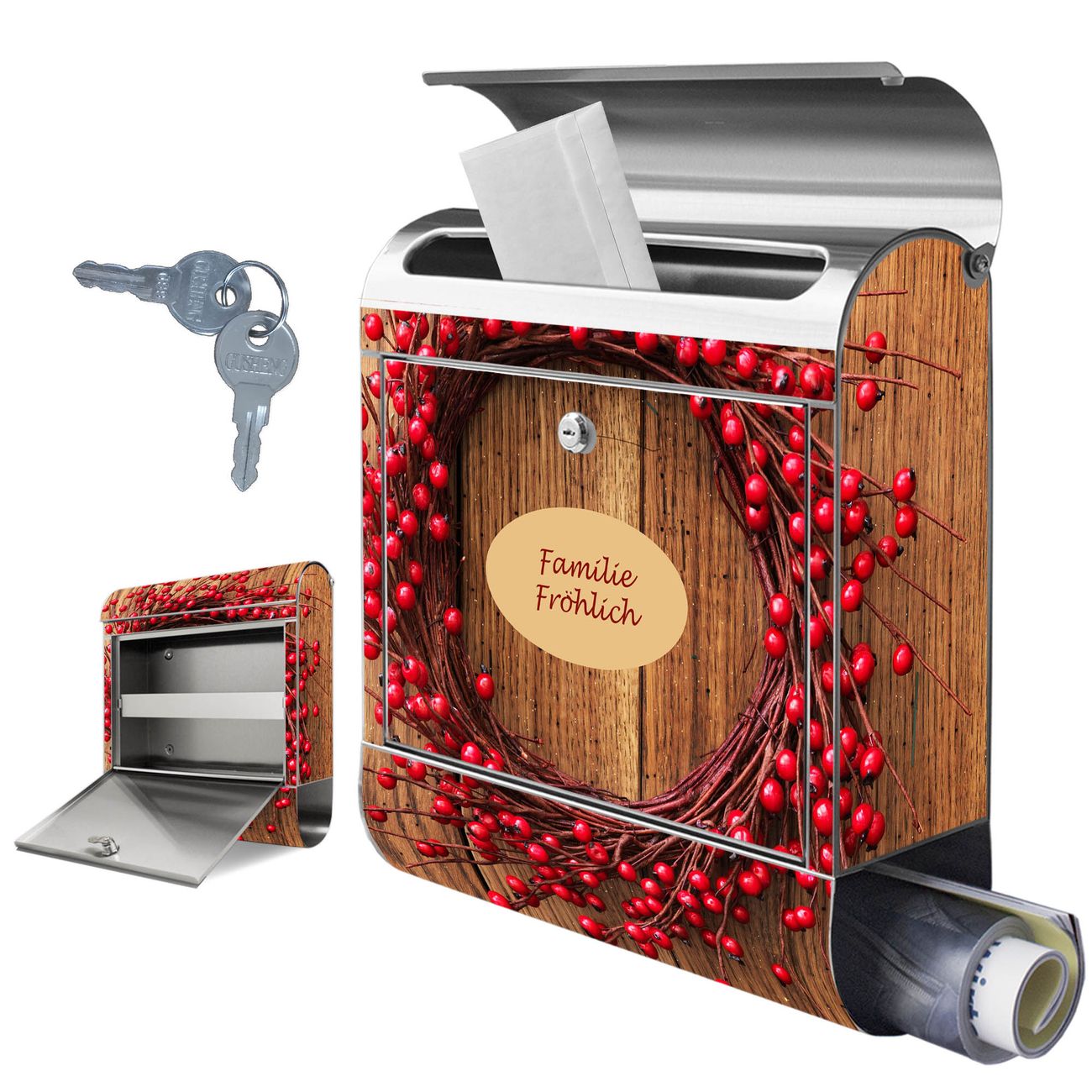 Wandbriefkasten Edelstahl Motiv Weihnachtskranz