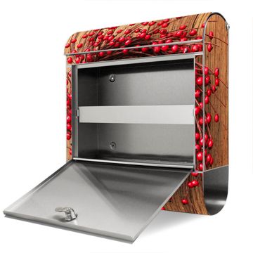 FUNKTION: Der banjado Edelstahl Briefkasten mit Motiv Motiv Weihnachtskranz bietet Ihnen mit seinem Fassungsvermögen genügend Platz auch für große A4 Sendungen. Das integrierte Zeitungsfach eignet sich hervorragend um unkompliziert die Tageszeitung zu fassen. Auf Wunsch können Sie bei uns den passenden Ständer kaufen und so aus dem Wandbriefkasten einen Standbriefkasten machen. DESIGN: Der Motivbriefkasten hat ein sehr ansprechendes und ausgefallenes Design, damit entlocken Sie Ihren Nachbarn und dem Postboten ein Lächeln. Heben Sie Sich ab von der tristen grauen Masse ohne auf Funktionalität zu verzichten. DETAILS: Der Design Briefkasten mit Motiv Motiv Weihnachtskranz besteht aus hochwertigem 18/0 Edelstahl. Das Motiv besteht aus einer wetter- und UV-resistenten Folie, die mit einem Schutzlaminat überzogen ist. Der Briefkasten wird mit Montagematerial und zwei Schlüsseln geliefert. NUTZEN: Sie können diesen Briefkasten sowohl als Wandbriefkasten montieren oder einen passenden Ständer auswählen und als Standbriefkasten einbetonieren. Die Größe bietet genügend Platz für Sendungen aller Art, das hochwertige Edelstahl ist rostfrei und die Motivfolie absolut wetterfest. SCHUTZ: Um Ihre Post optimal vor Witterungseinflüssen wie Starkregen zu schützen, empfehlen wir, den Briefkasten geschützt anzubringen. BANJADO: Ihr Briefkasten wird in Sachsen in einer kleinen Manufaktur von Hand veredelt. Die Motivfolie ist lösungsmittelfrei und schutzlaminiert, dies sorgt für einen langen Halt. Wir legen großen Wert auf die Verbindung von Funktionalität und Design. Sie erhalten Handarbeit aus Sachsen.