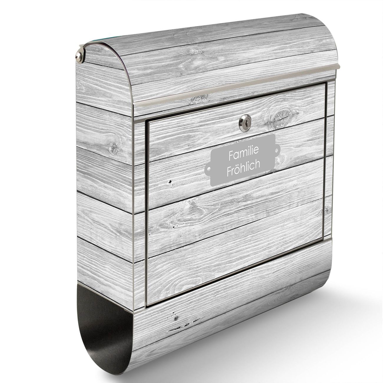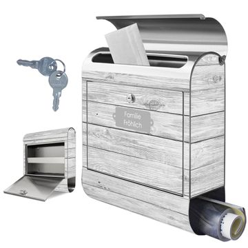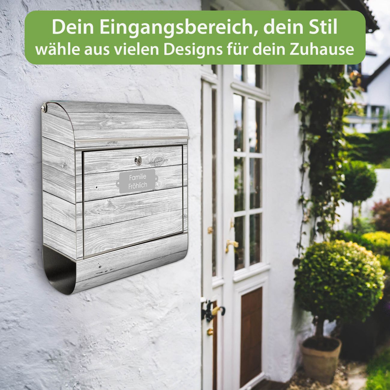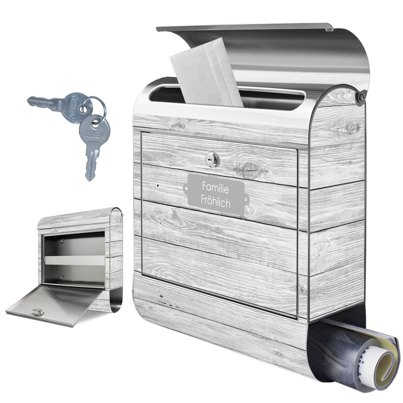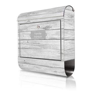 Wandbriefkasten Edelstahl Motiv Weiß Gebeizt