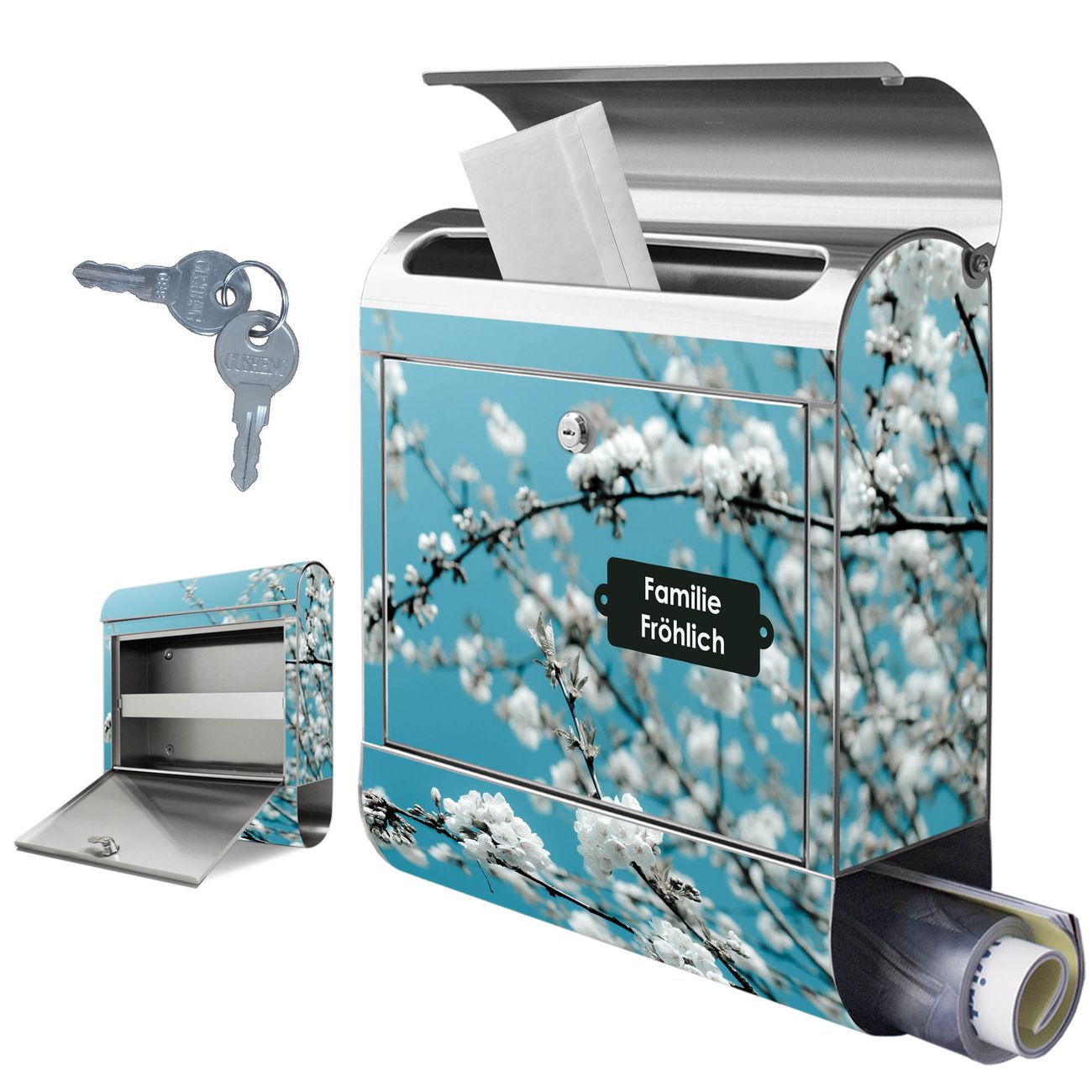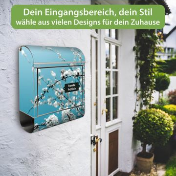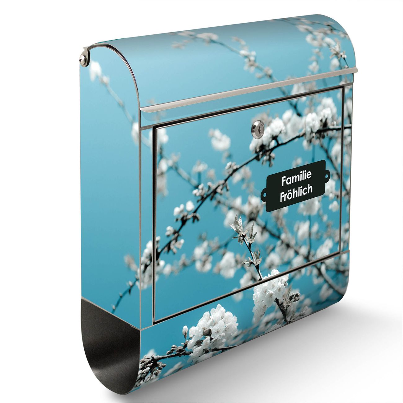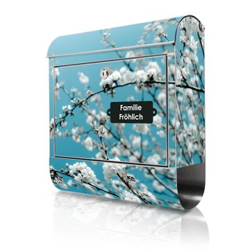 Wandbriefkasten Edelstahl Motiv weiße Kirschblüten