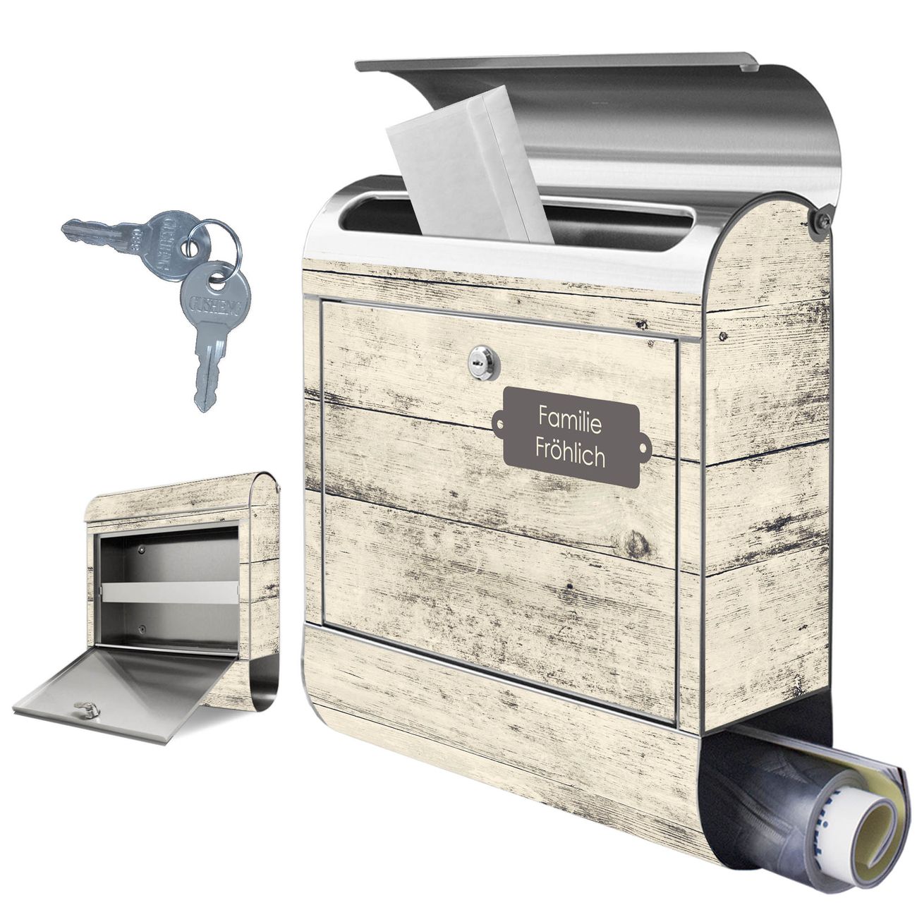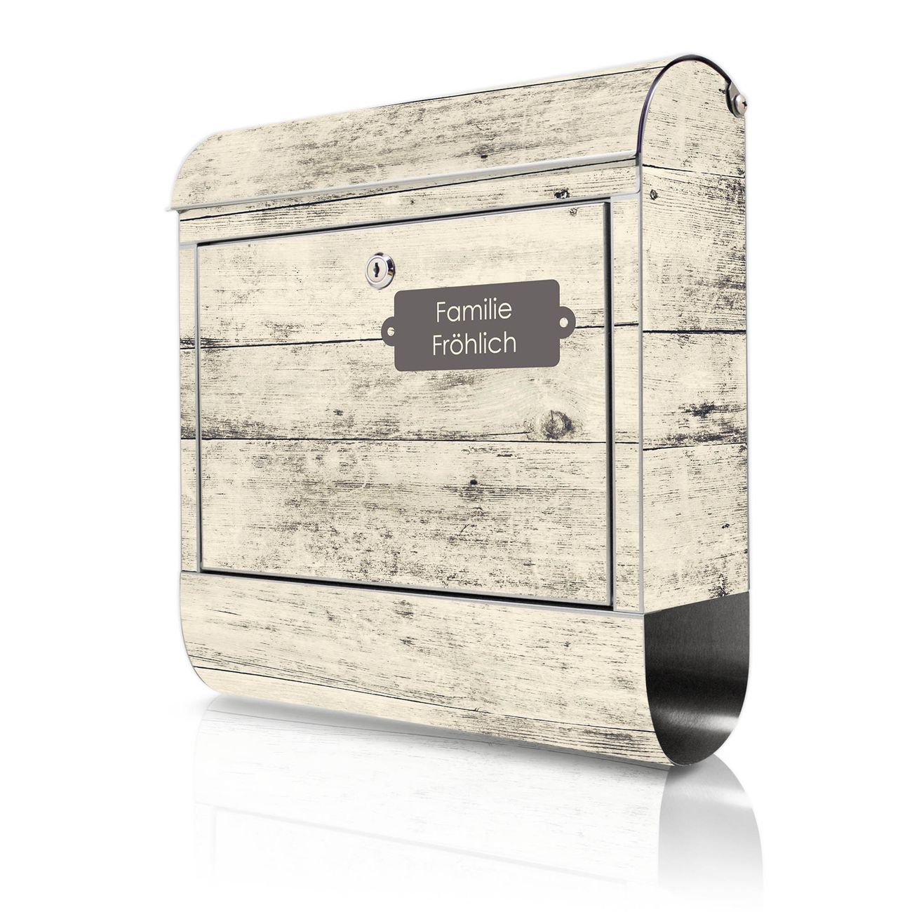 Wandbriefkasten Edelstahl Motiv Weiße Planken H