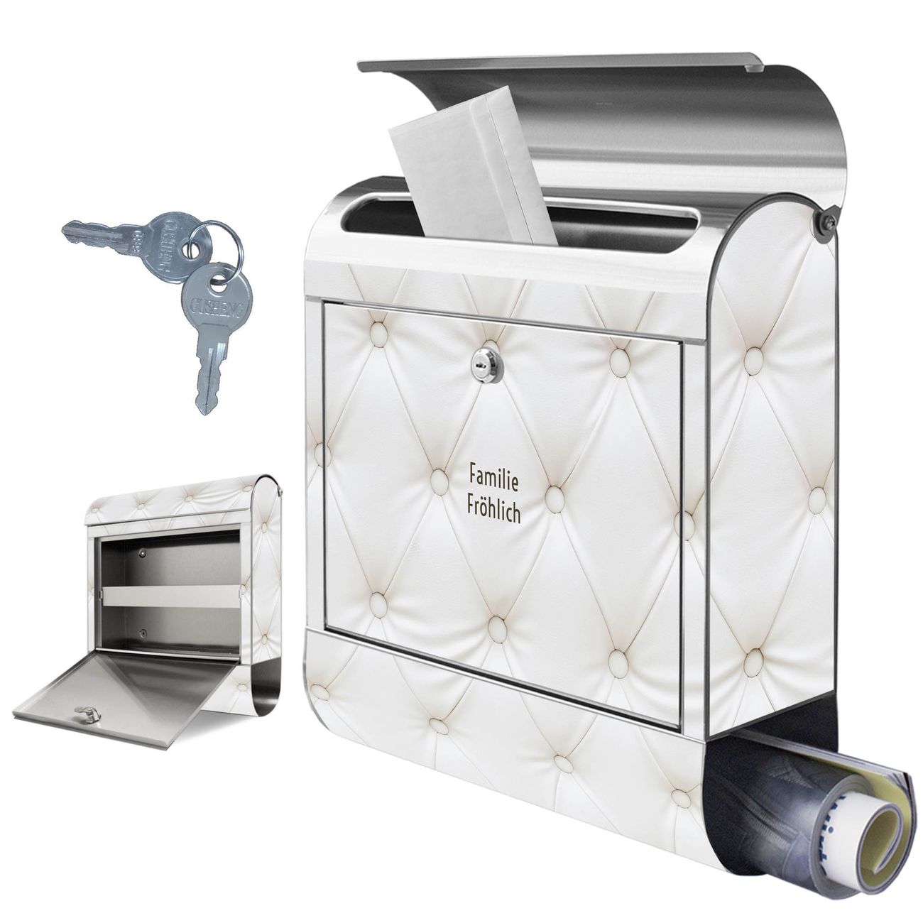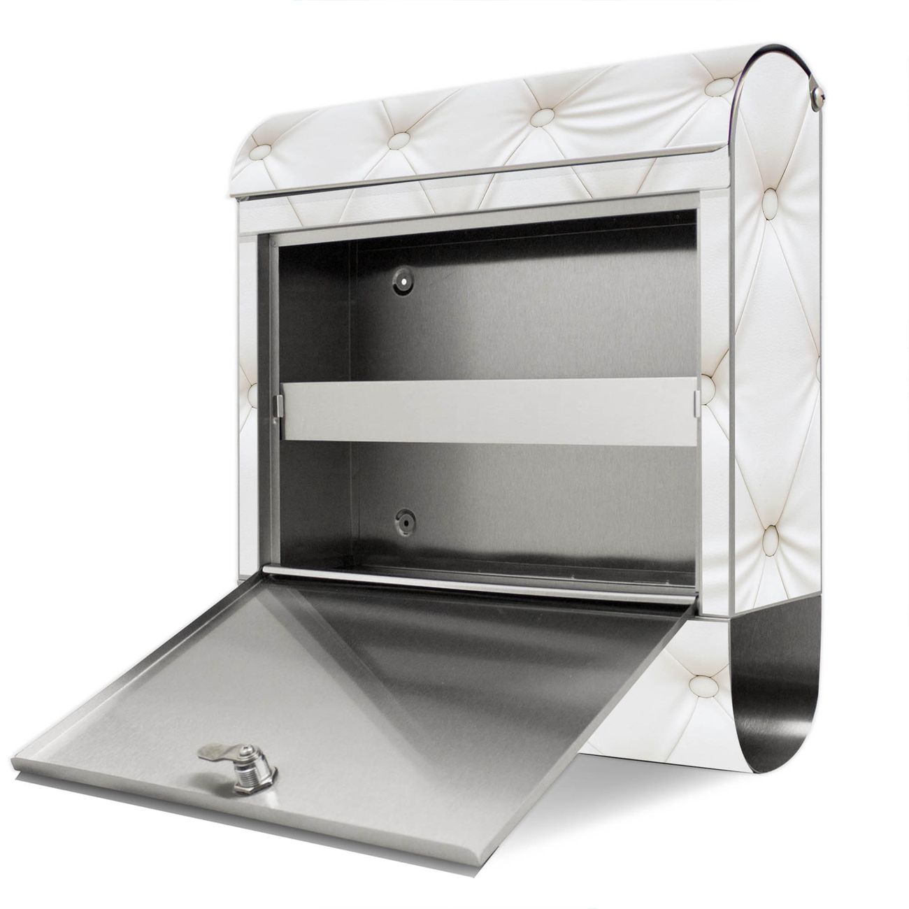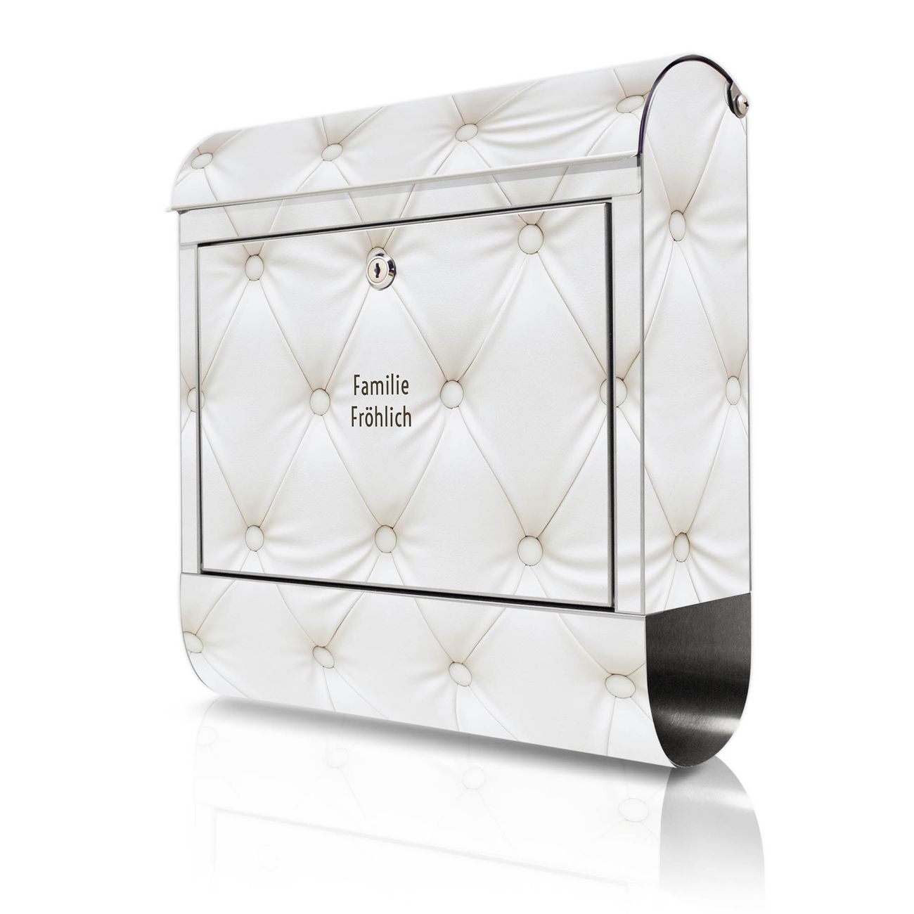 Wandbriefkasten Edelstahl Motiv Weißes Polster