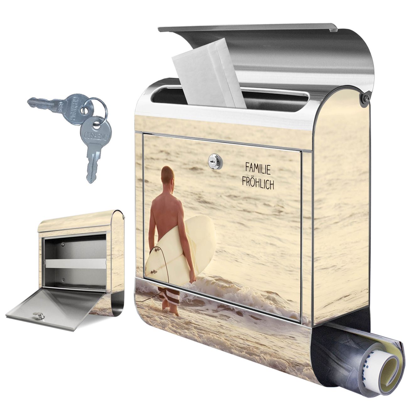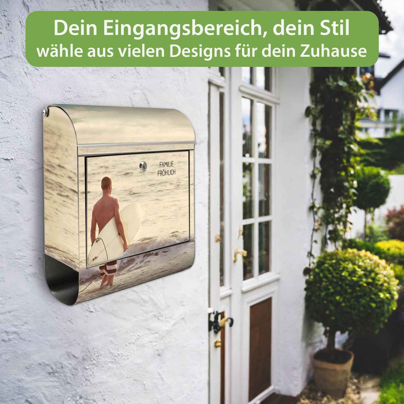 Wandbriefkasten Edelstahl Motiv Wellenreiten Gehen 2