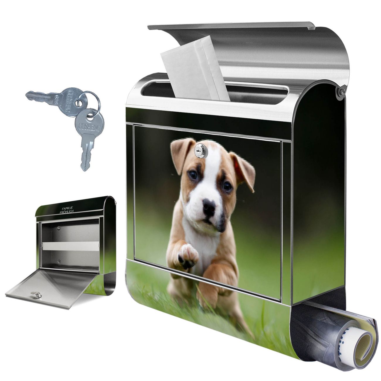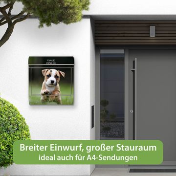 Wandbriefkasten Edelstahl Motiv Welpe im Gras
