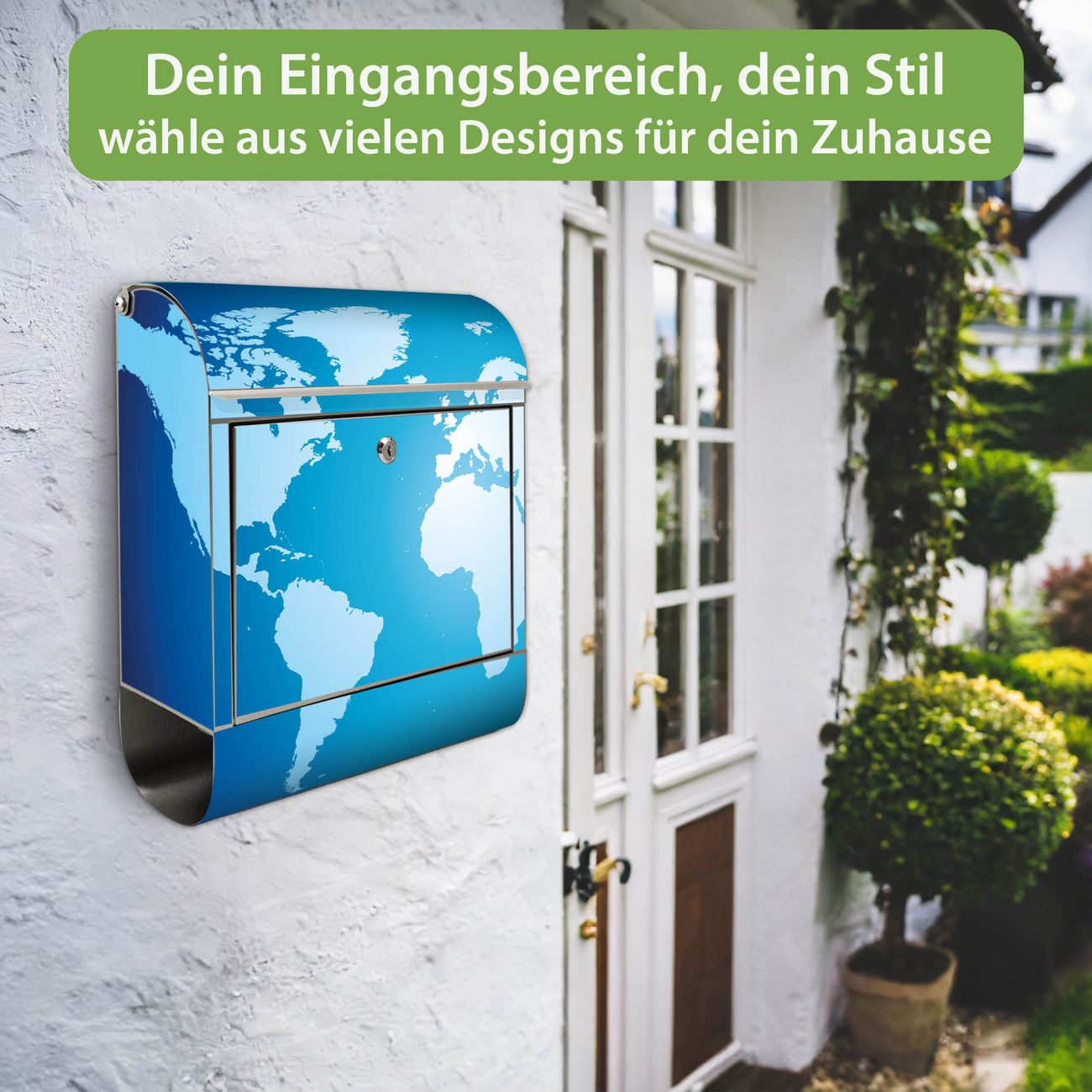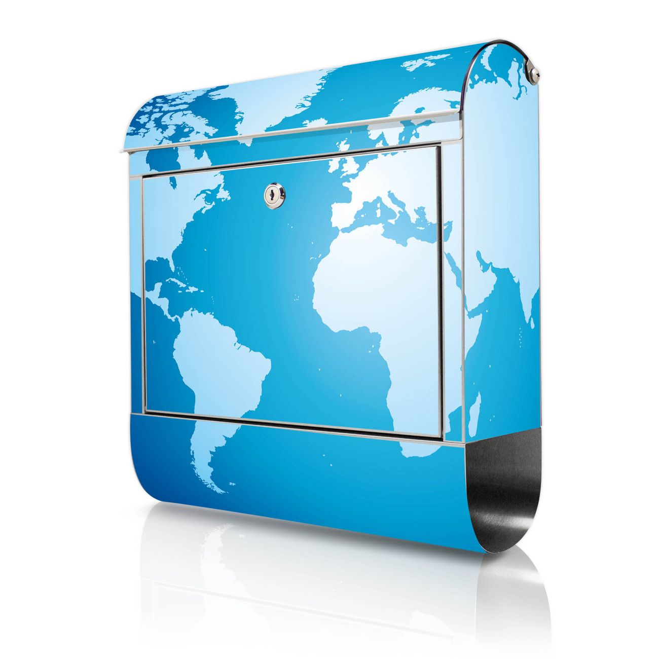 Wandbriefkasten Edelstahl Motiv Weltkarte