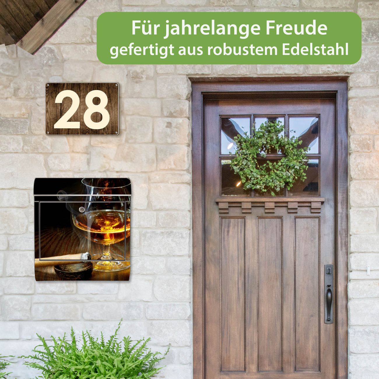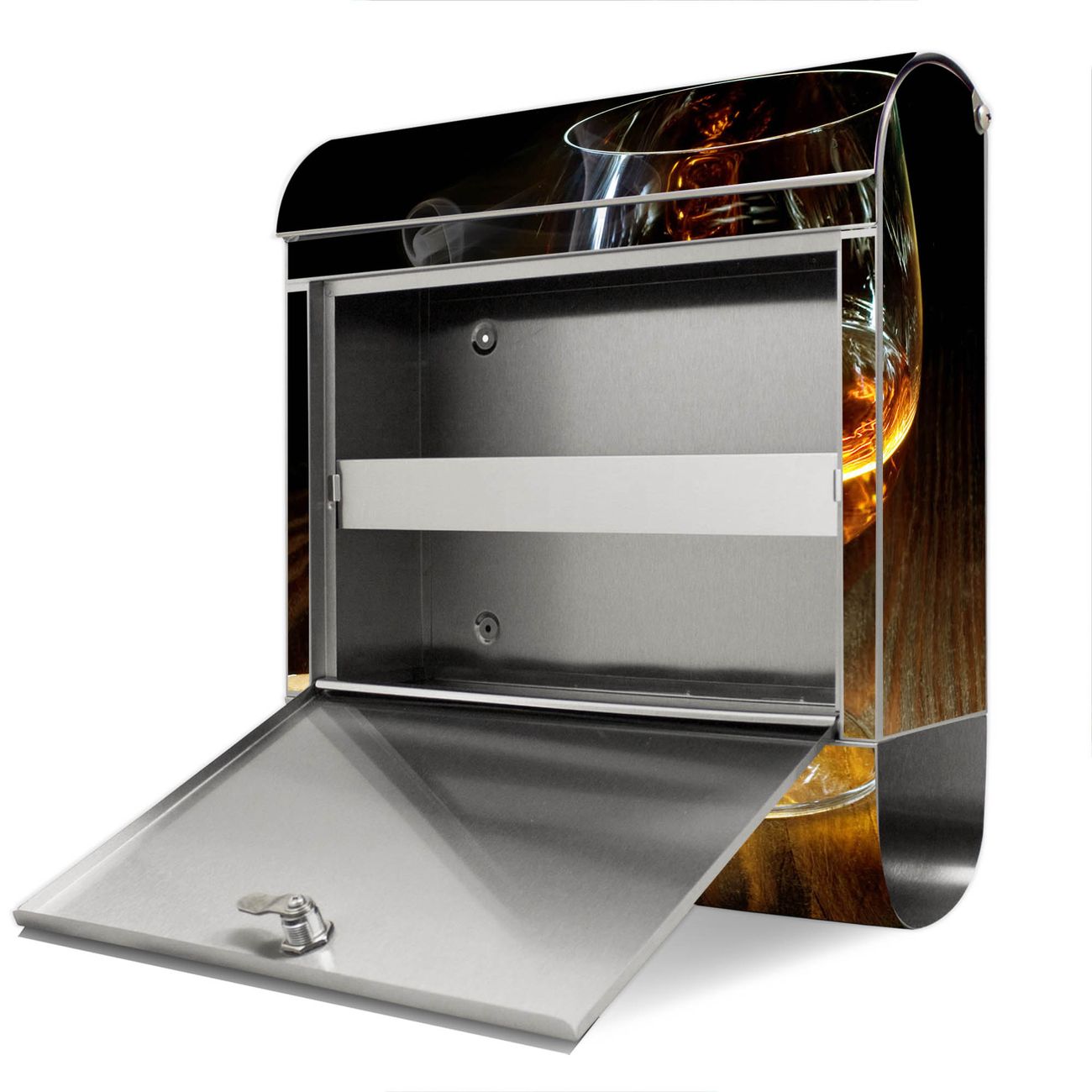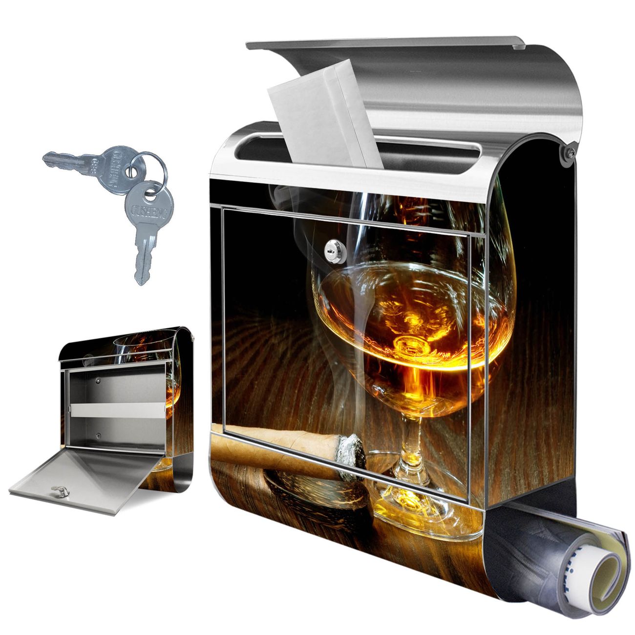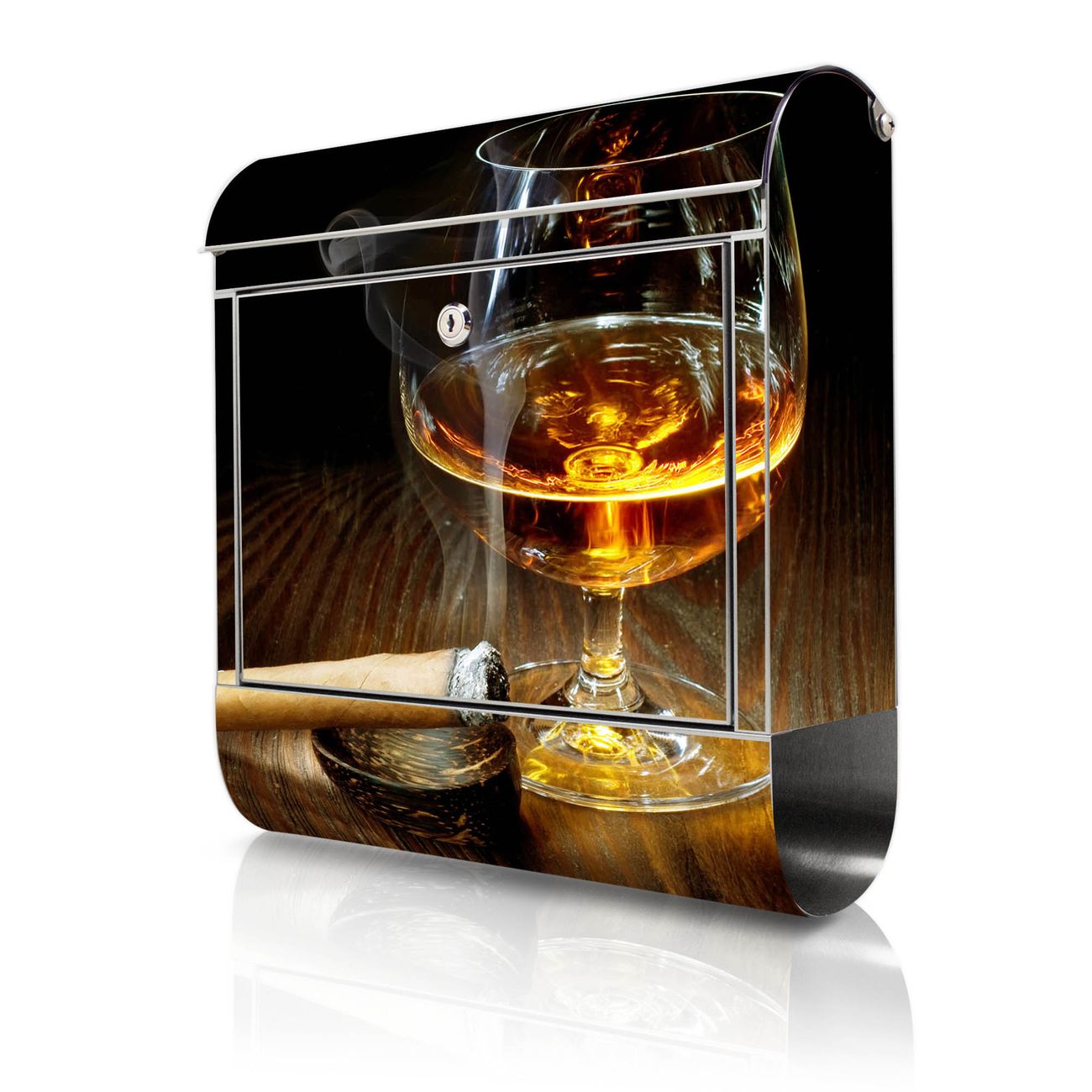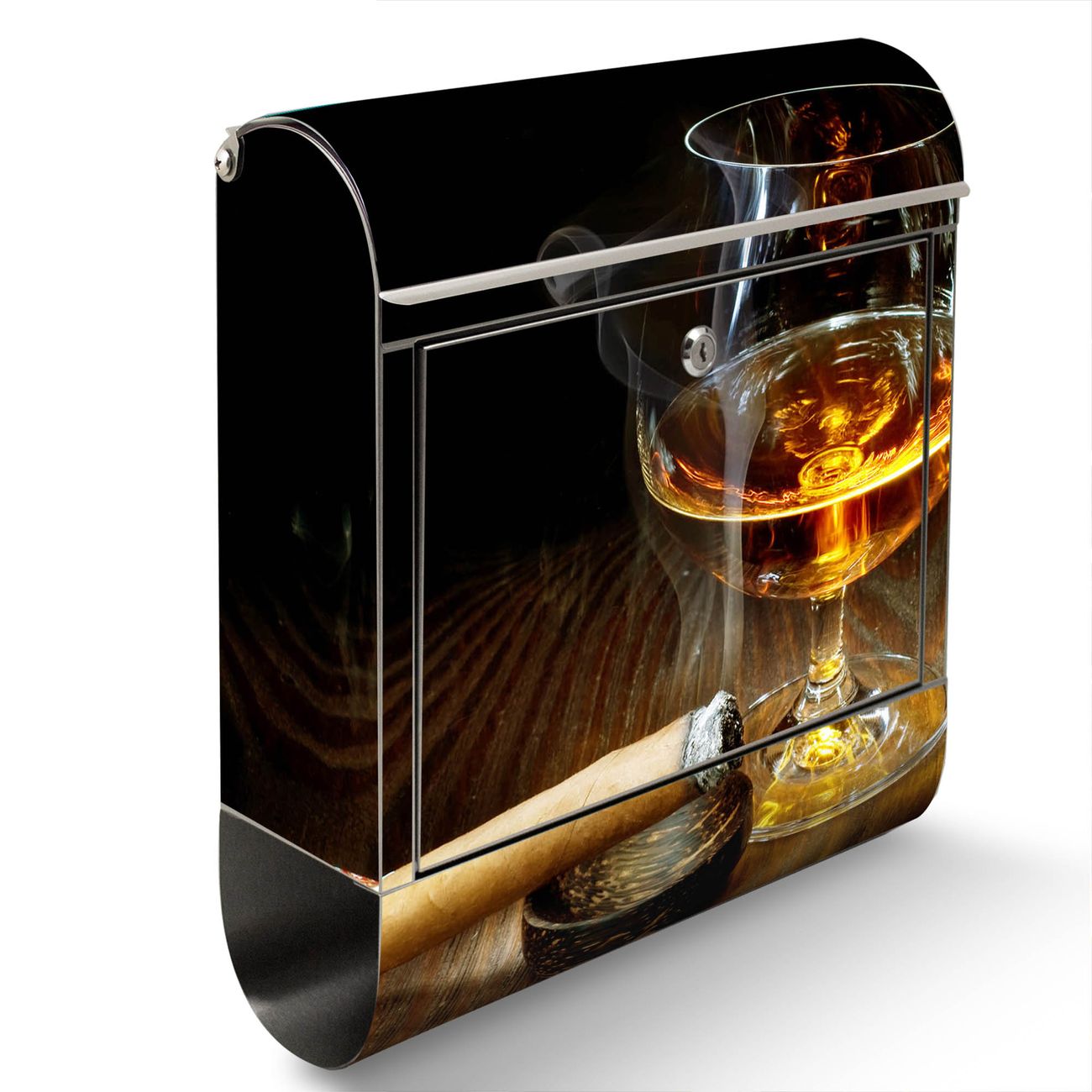 Wandbriefkasten Edelstahl Motiv Whiskey & Cigar