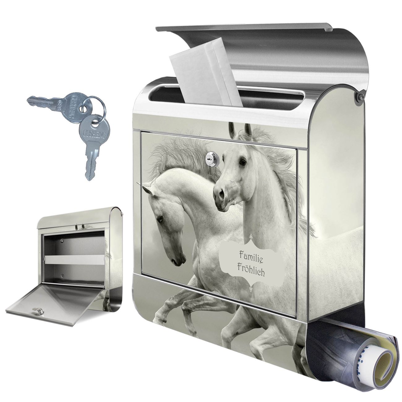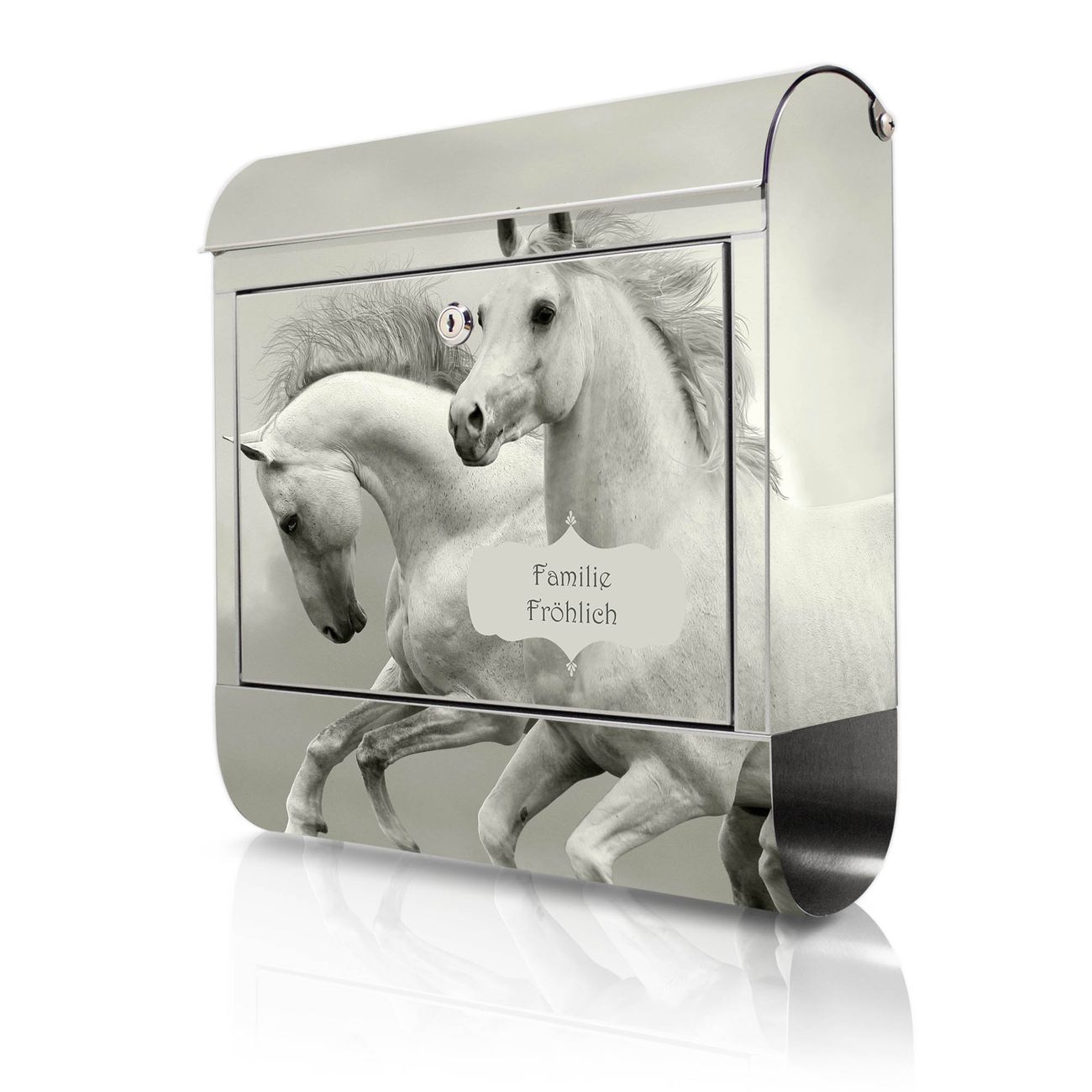 Wandbriefkasten Edelstahl Motiv Wilde Pferde SW