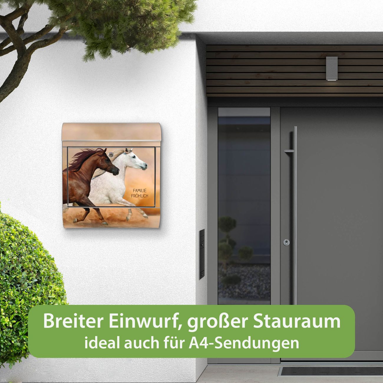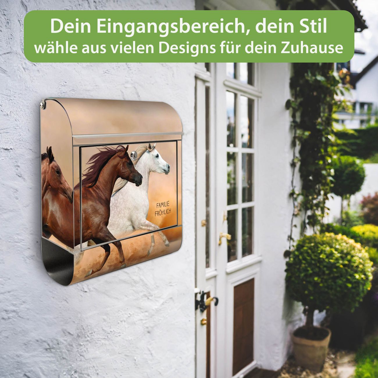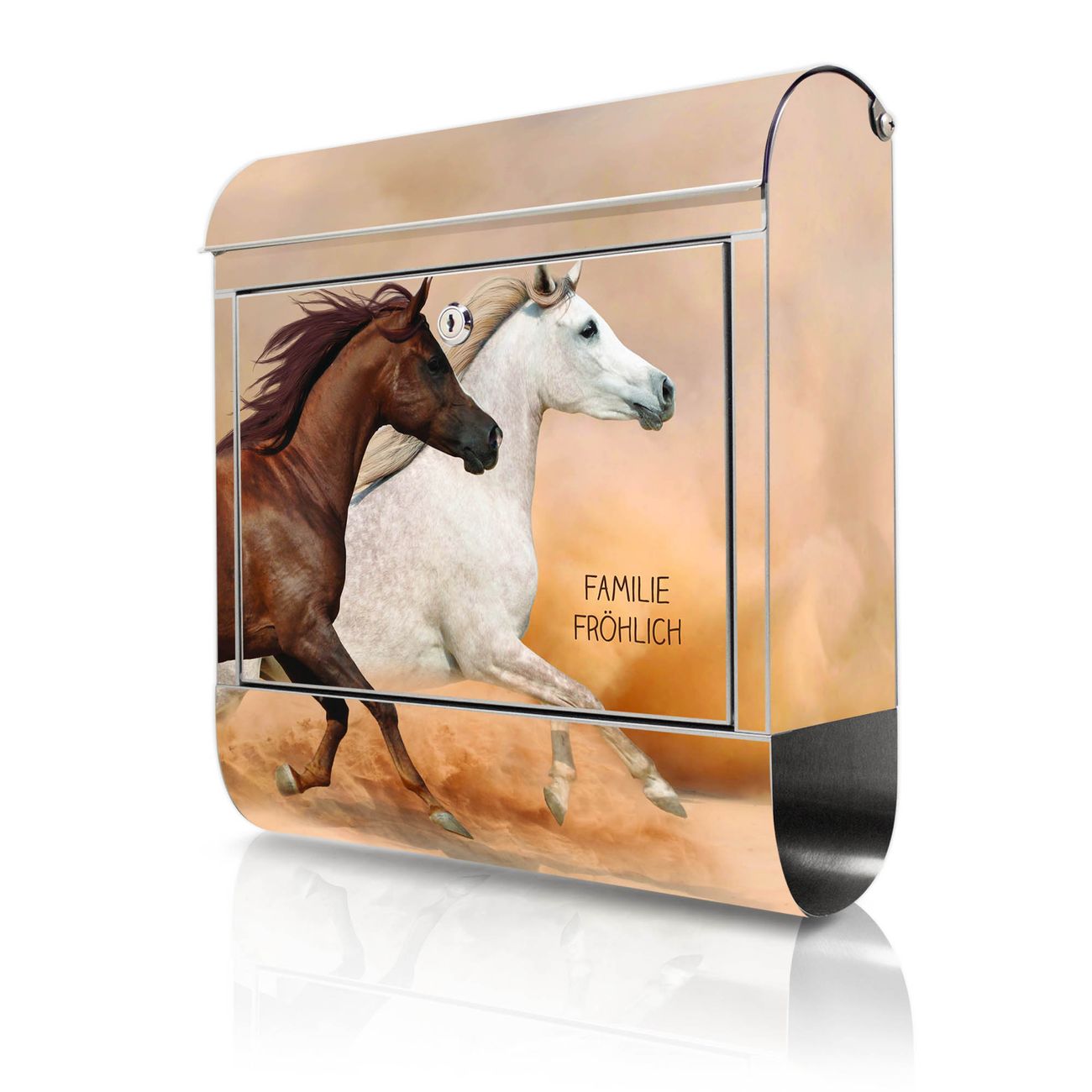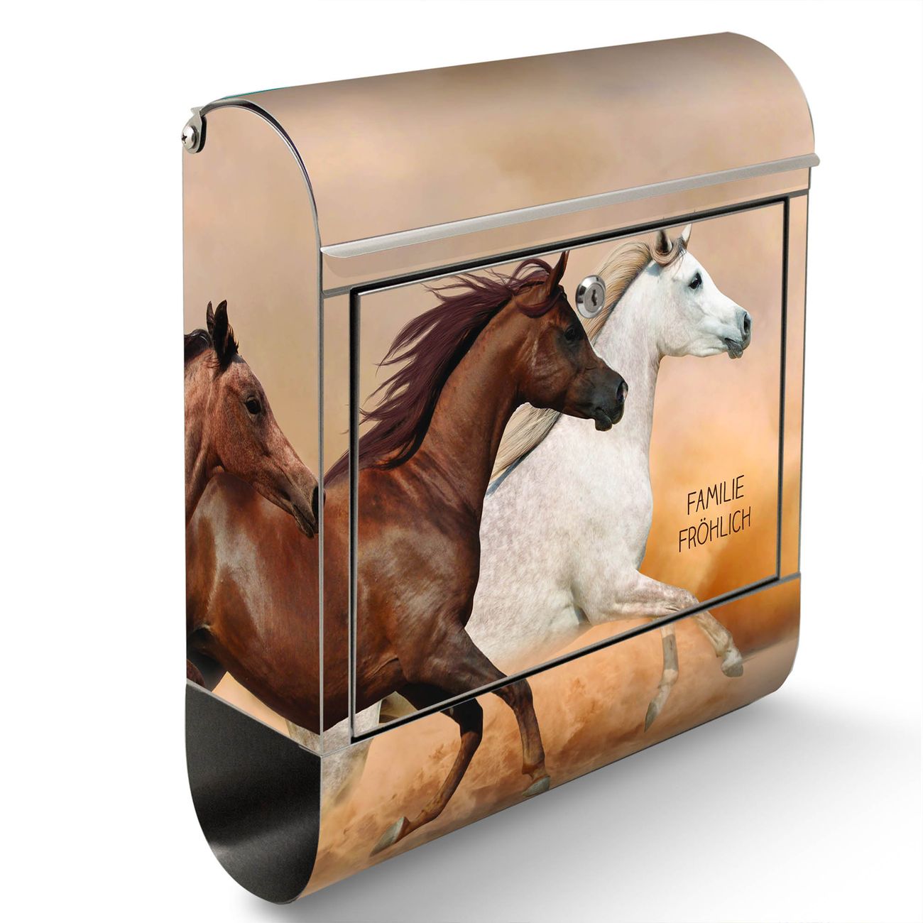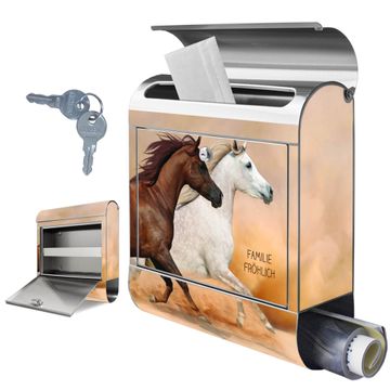 Wandbriefkasten Edelstahl Motiv Wilde Pferde