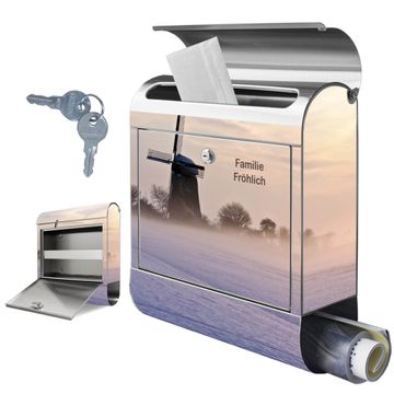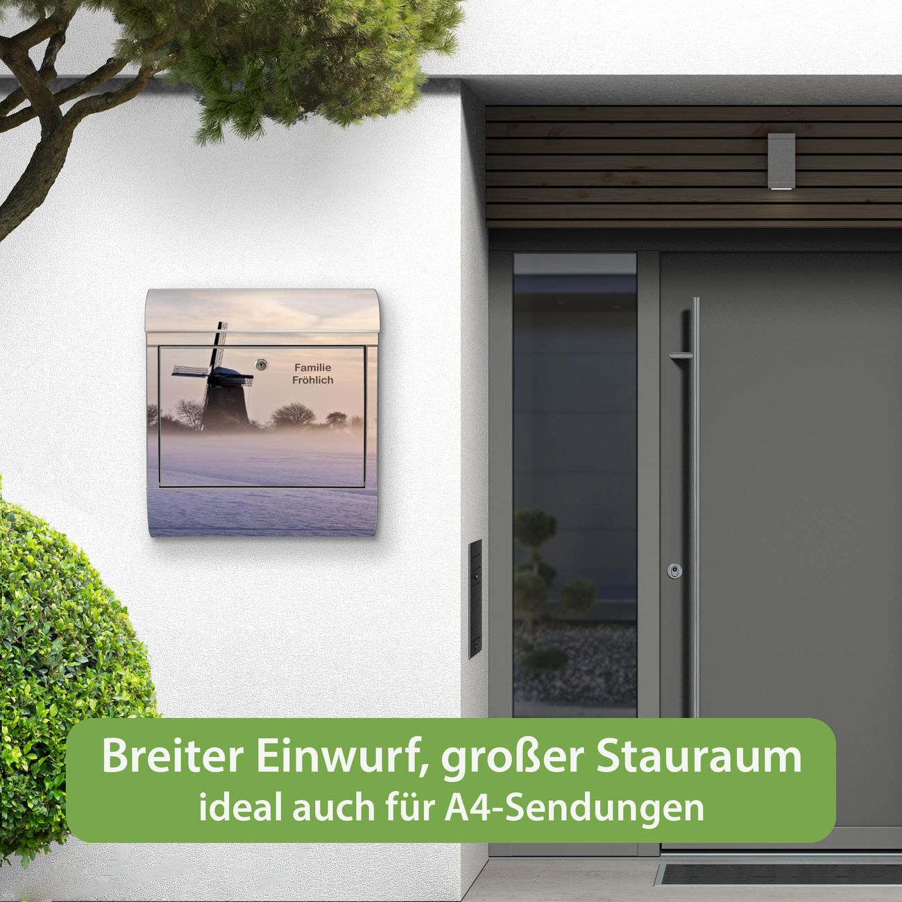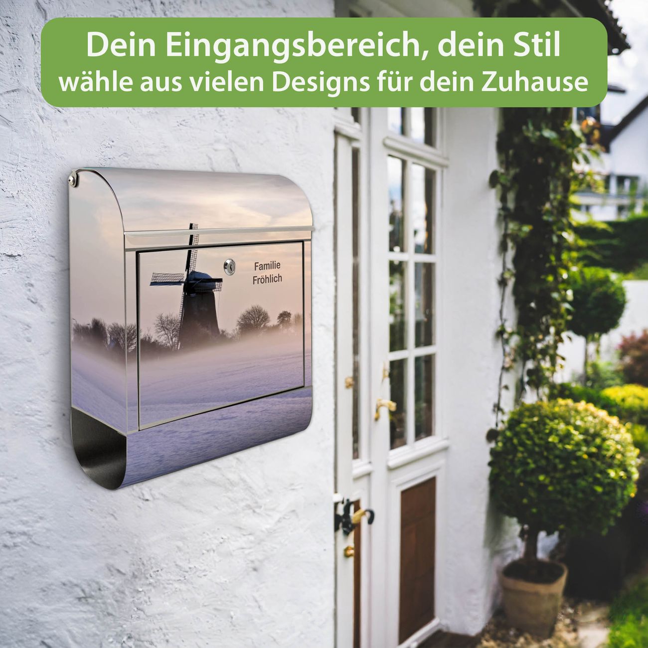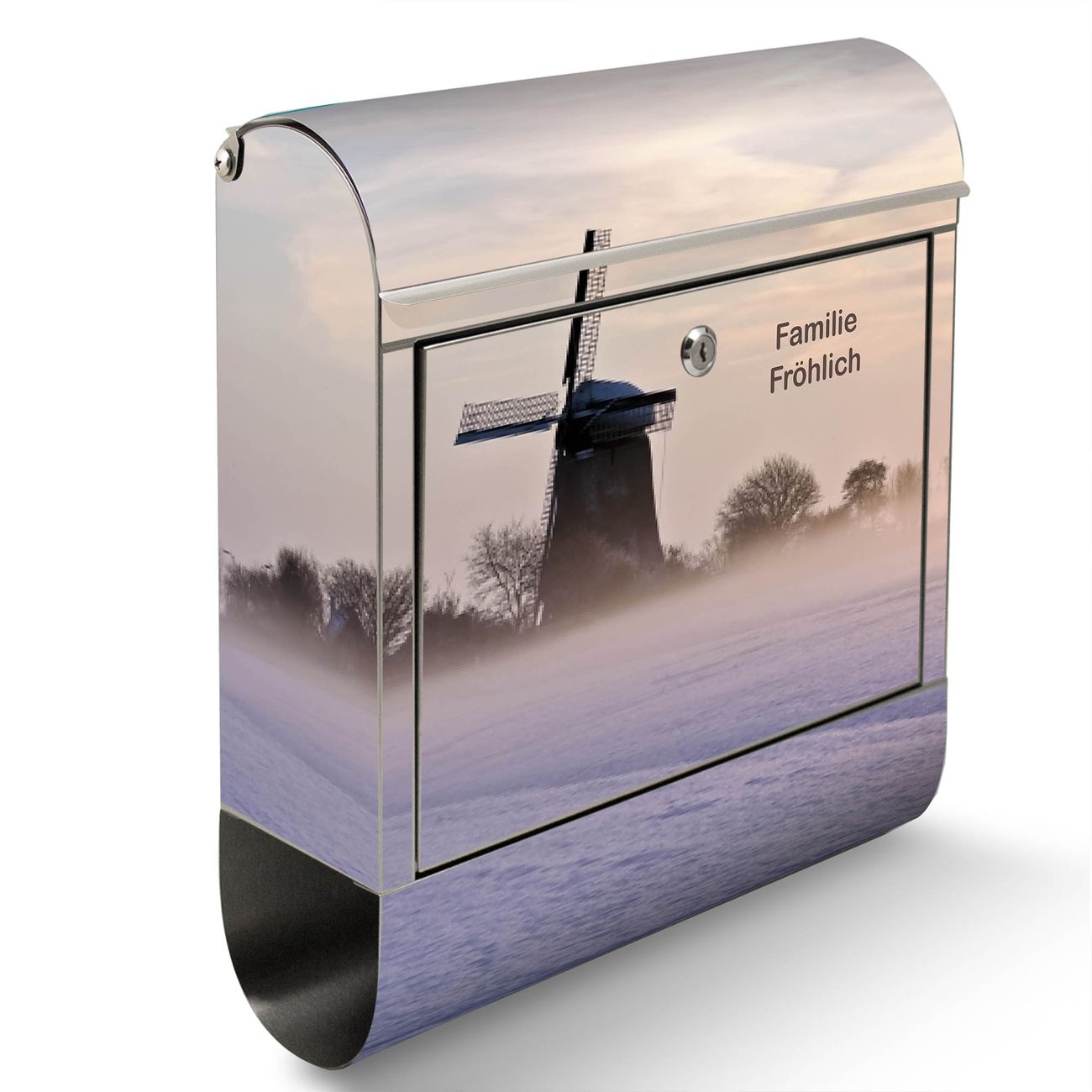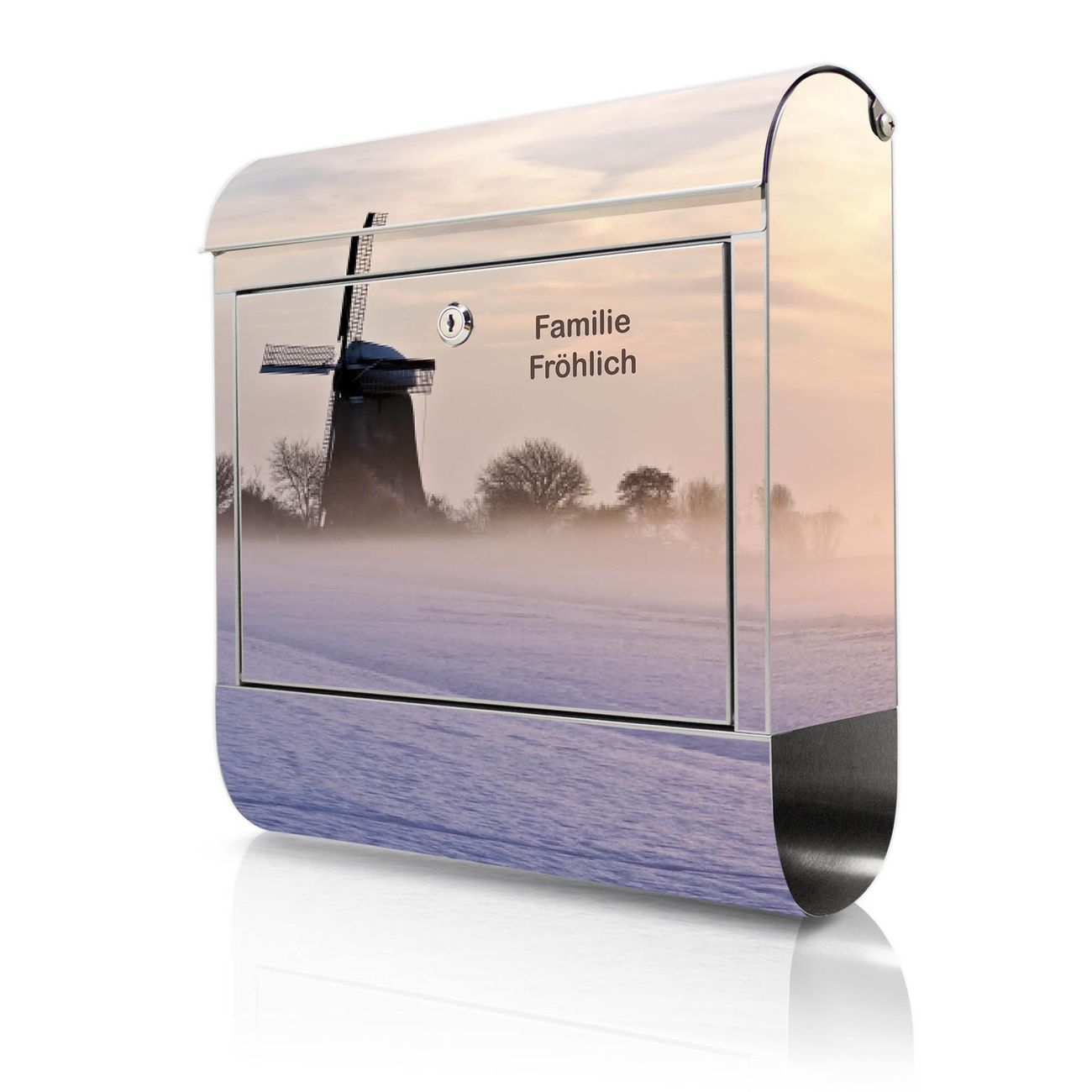 Wandbriefkasten Edelstahl Motiv Windmühle im Winter