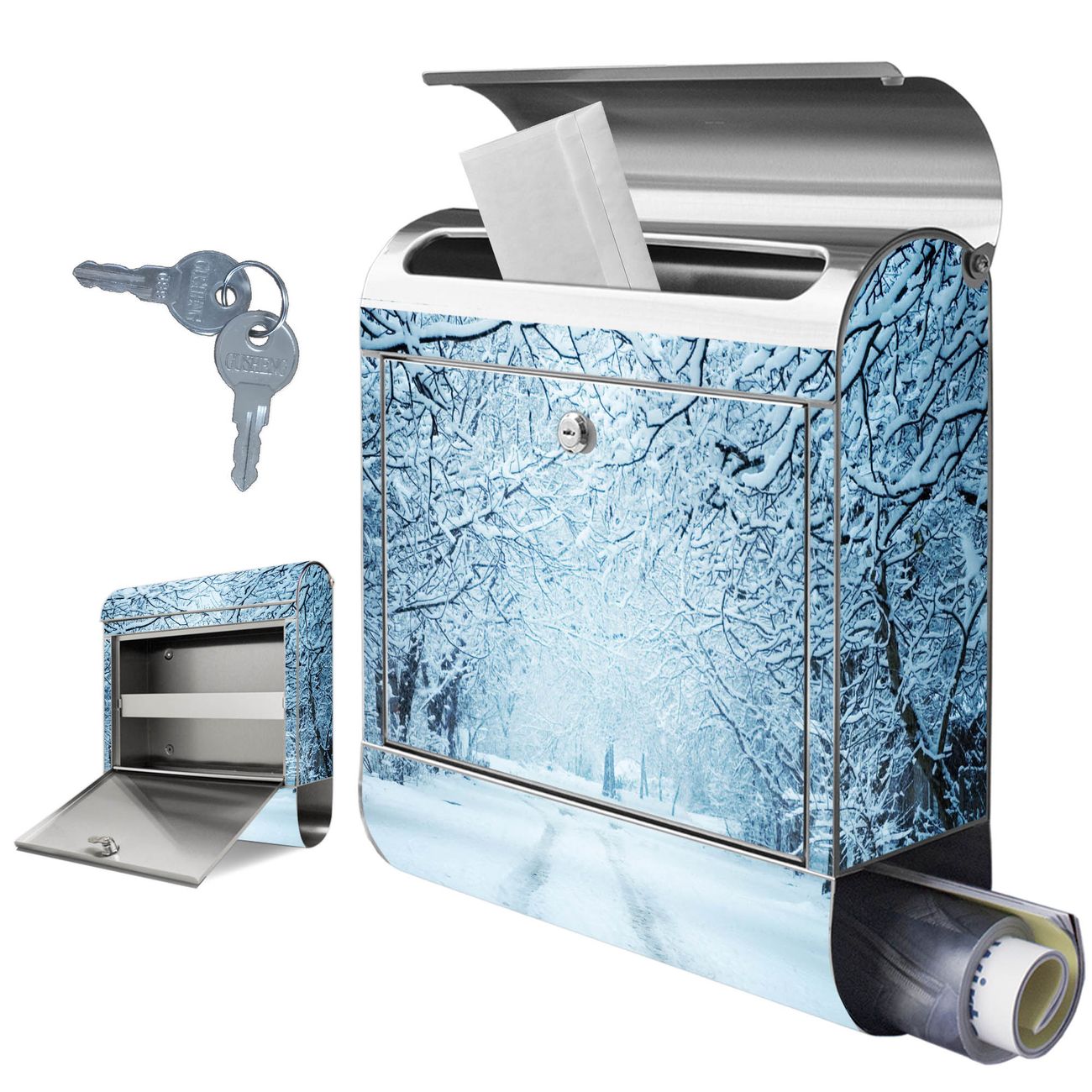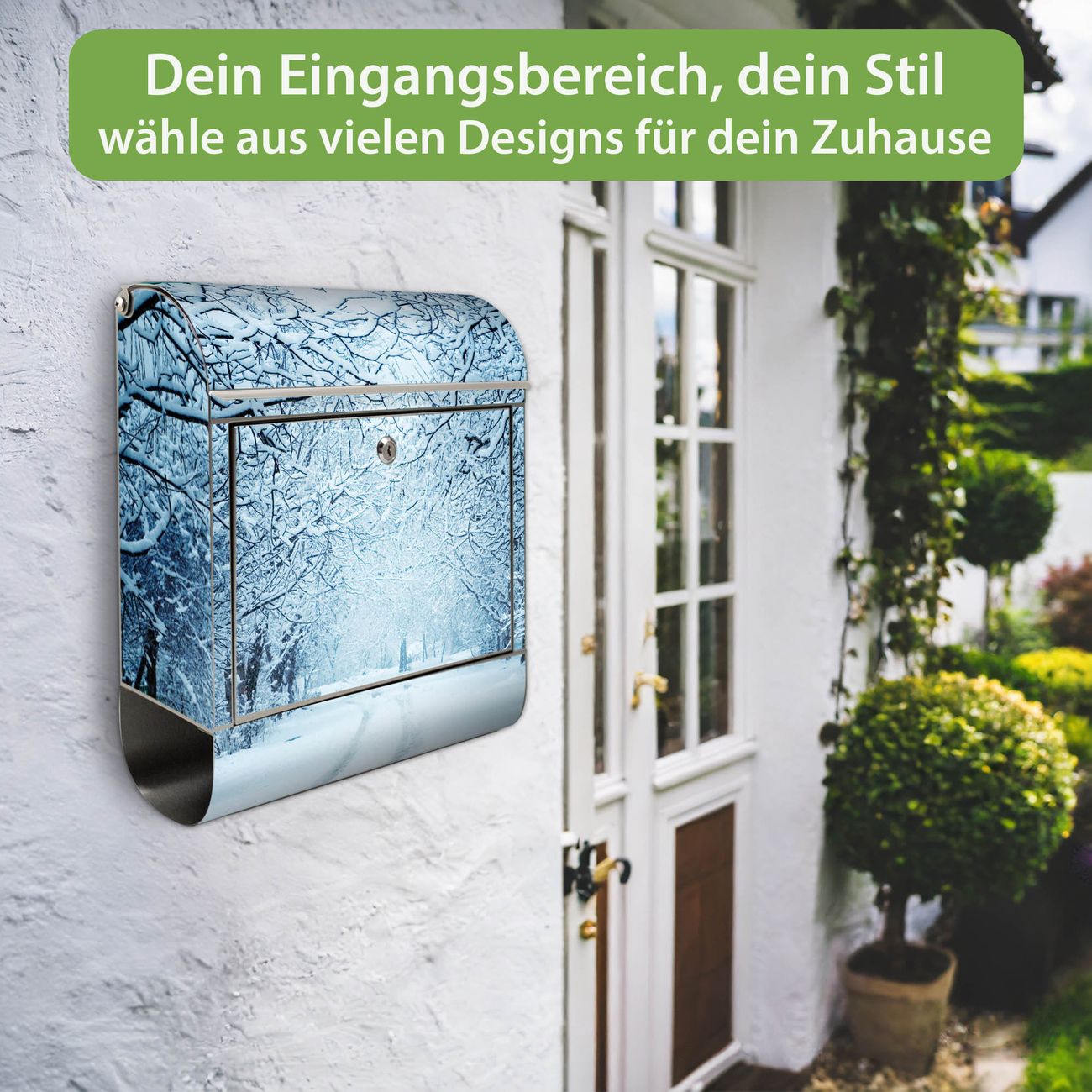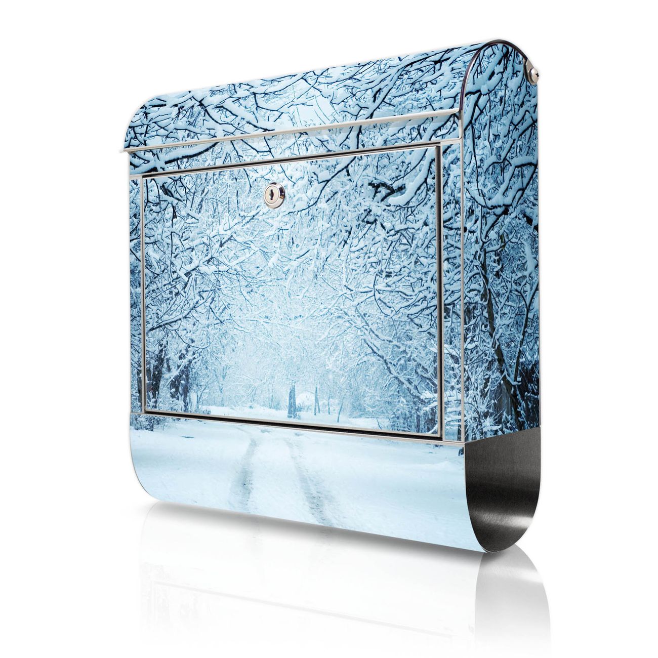 Wandbriefkasten Edelstahl Motiv Winterspaziergang