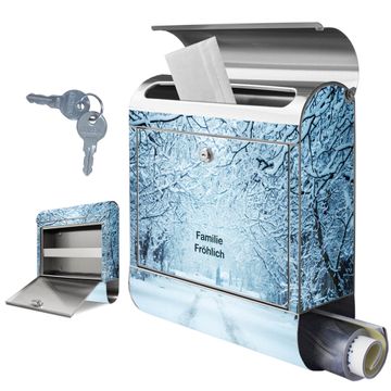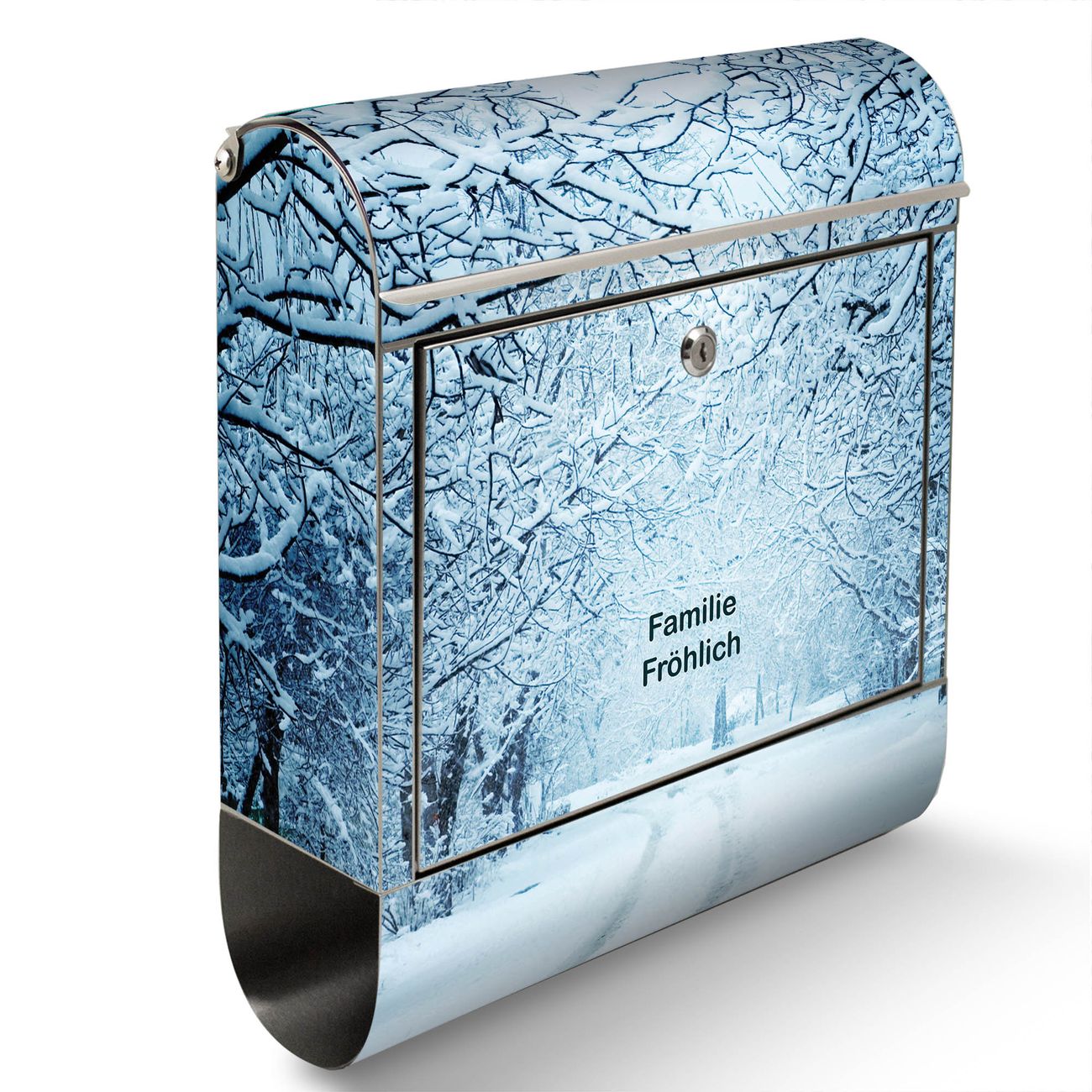 Wandbriefkasten Edelstahl Motiv Winterspaziergang