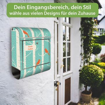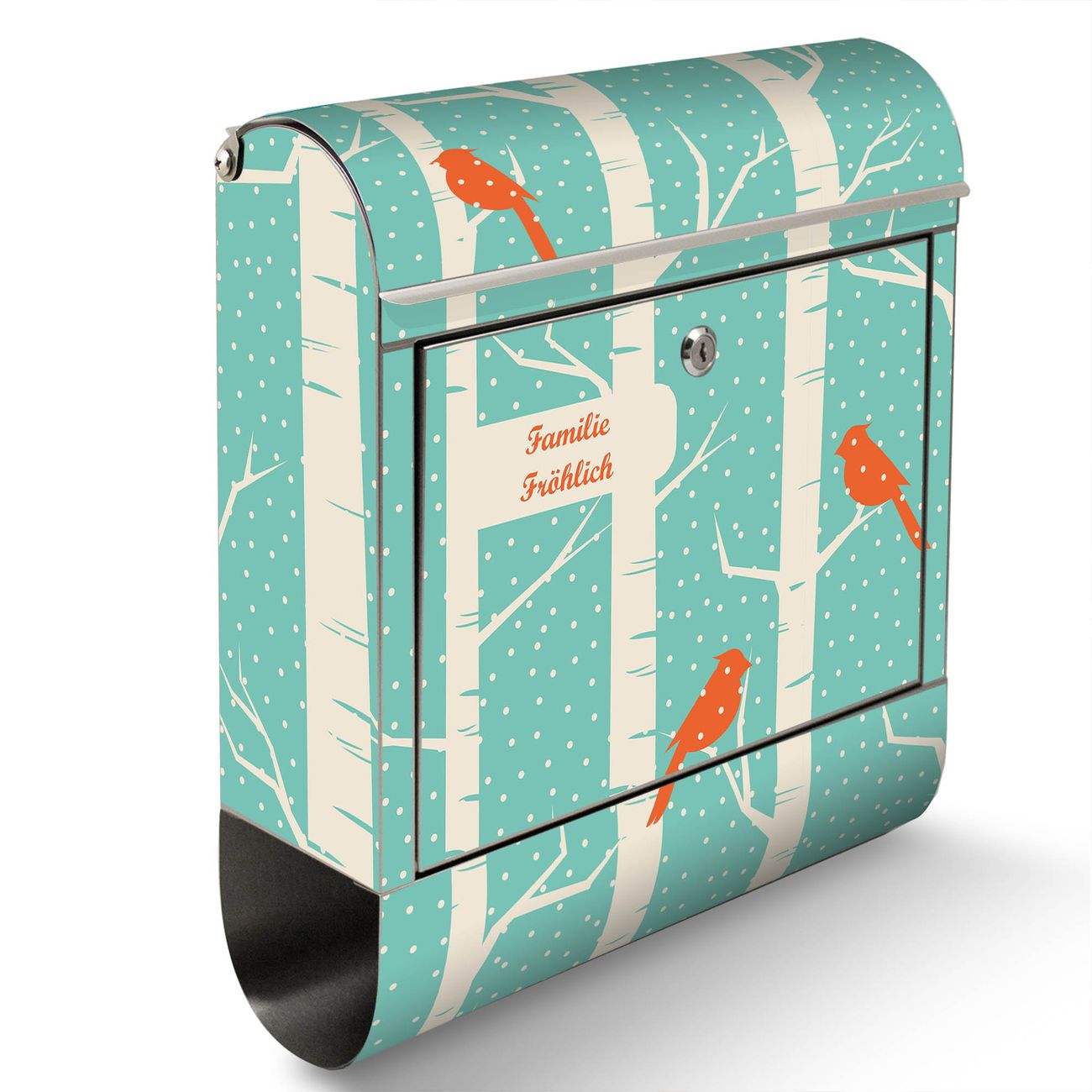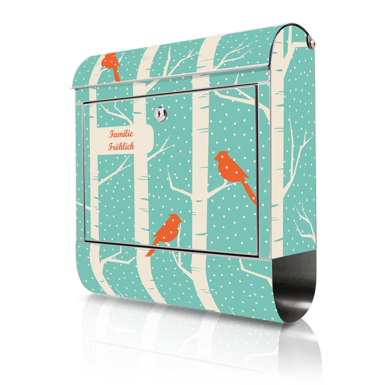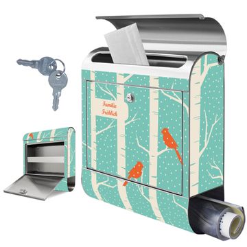 Wandbriefkasten Edelstahl Motiv Wintervögel