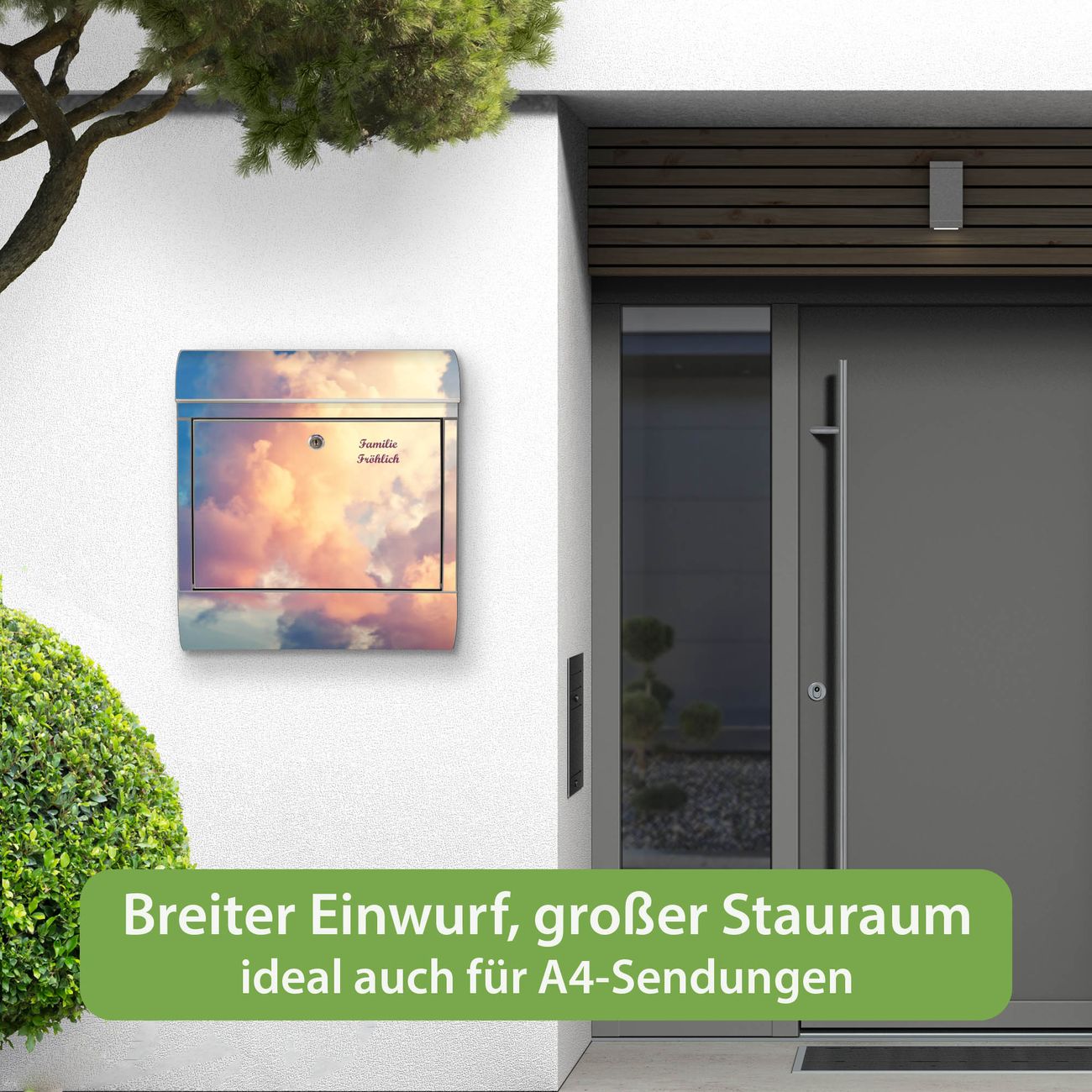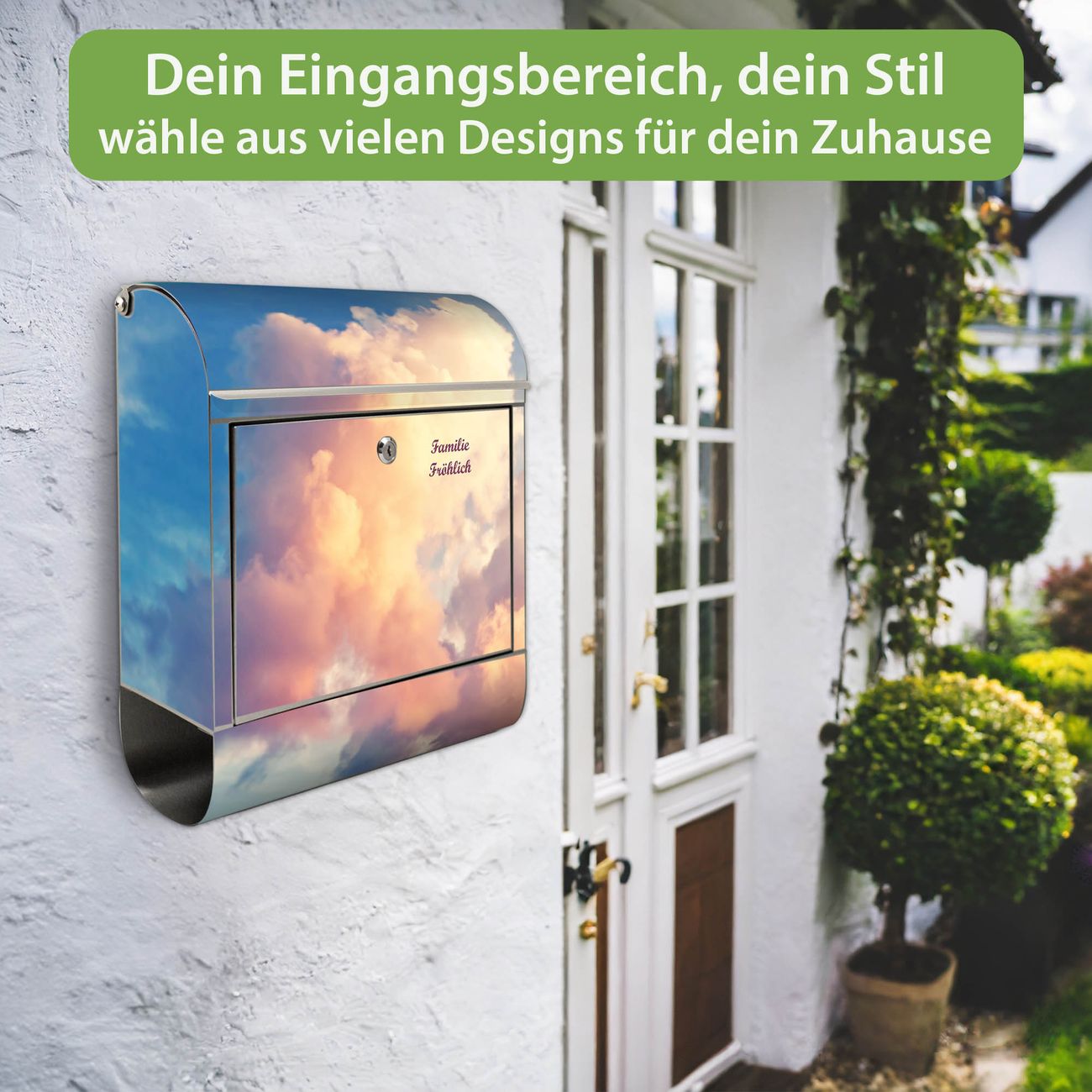 Wandbriefkasten Edelstahl Motiv Wolken 10