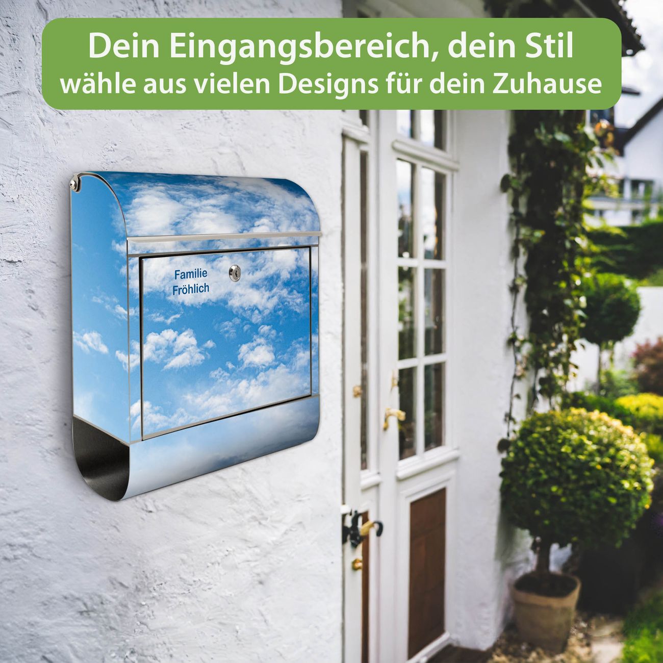 Wandbriefkasten Edelstahl Motiv Wolken 1