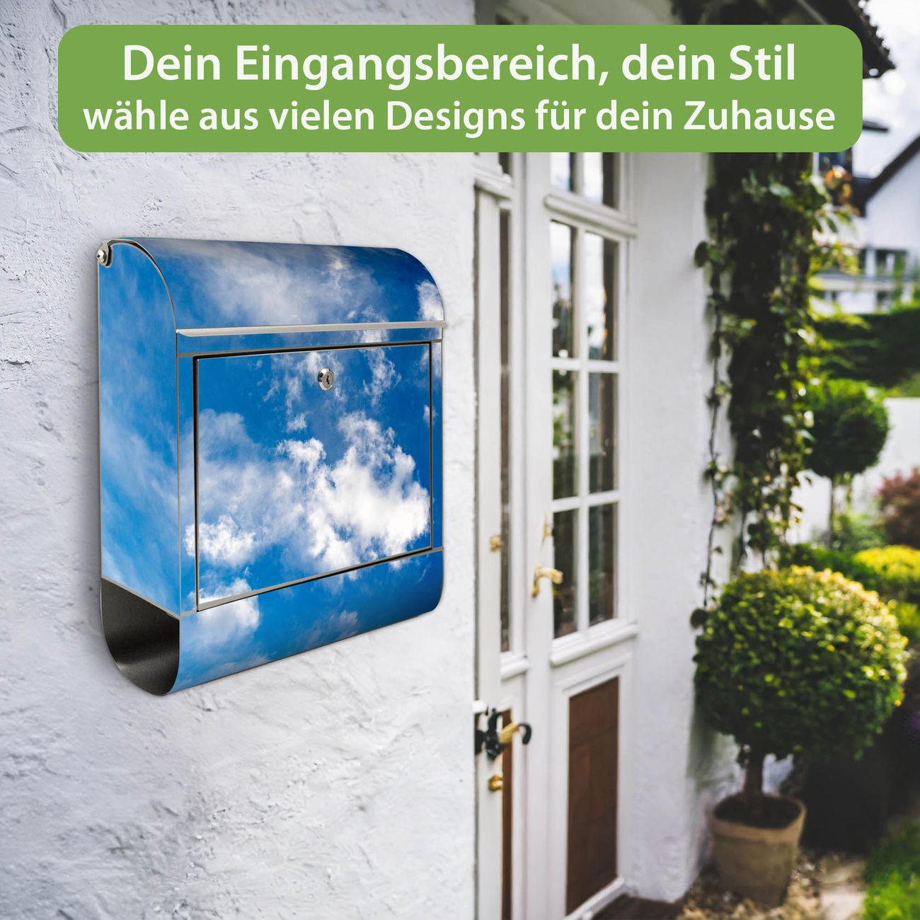 Wandbriefkasten Edelstahl Motiv Wolken 2