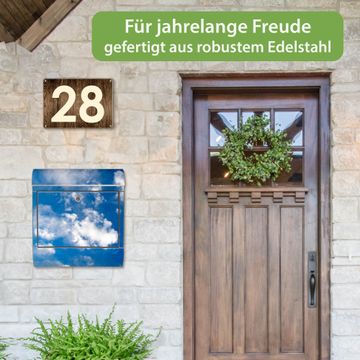 FUNKTION: Der banjado Edelstahl Briefkasten mit Motiv Motiv Wolken 2 bietet Ihnen mit seinem Fassungsvermögen genügend Platz auch für große A4 Sendungen. Das integrierte Zeitungsfach eignet sich hervorragend um unkompliziert die Tageszeitung zu fassen. Auf Wunsch können Sie bei uns den passenden Ständer kaufen und so aus dem Wandbriefkasten einen Standbriefkasten machen. DESIGN: Der Motivbriefkasten hat ein sehr ansprechendes und ausgefallenes Design, damit entlocken Sie Ihren Nachbarn und dem Postboten ein Lächeln. Heben Sie Sich ab von der tristen grauen Masse ohne auf Funktionalität zu verzichten. DETAILS: Der Design Briefkasten mit Motiv Motiv Wolken 2 besteht aus hochwertigem 18/0 Edelstahl. Das Motiv besteht aus einer wetter- und UV-resistenten Folie, die mit einem Schutzlaminat überzogen ist. Der Briefkasten wird mit Montagematerial und zwei Schlüsseln geliefert. NUTZEN: Sie können diesen Briefkasten sowohl als Wandbriefkasten montieren oder einen passenden Ständer auswählen und als Standbriefkasten einbetonieren. Die Größe bietet genügend Platz für Sendungen aller Art, das hochwertige Edelstahl ist rostfrei und die Motivfolie absolut wetterfest. SCHUTZ: Um Ihre Post optimal vor Witterungseinflüssen wie Starkregen zu schützen, empfehlen wir, den Briefkasten geschützt anzubringen. BANJADO: Ihr Briefkasten wird in Sachsen in einer kleinen Manufaktur von Hand veredelt. Die Motivfolie ist lösungsmittelfrei und schutzlaminiert, dies sorgt für einen langen Halt. Wir legen großen Wert auf die Verbindung von Funktionalität und Design. Sie erhalten Handarbeit aus Sachsen.