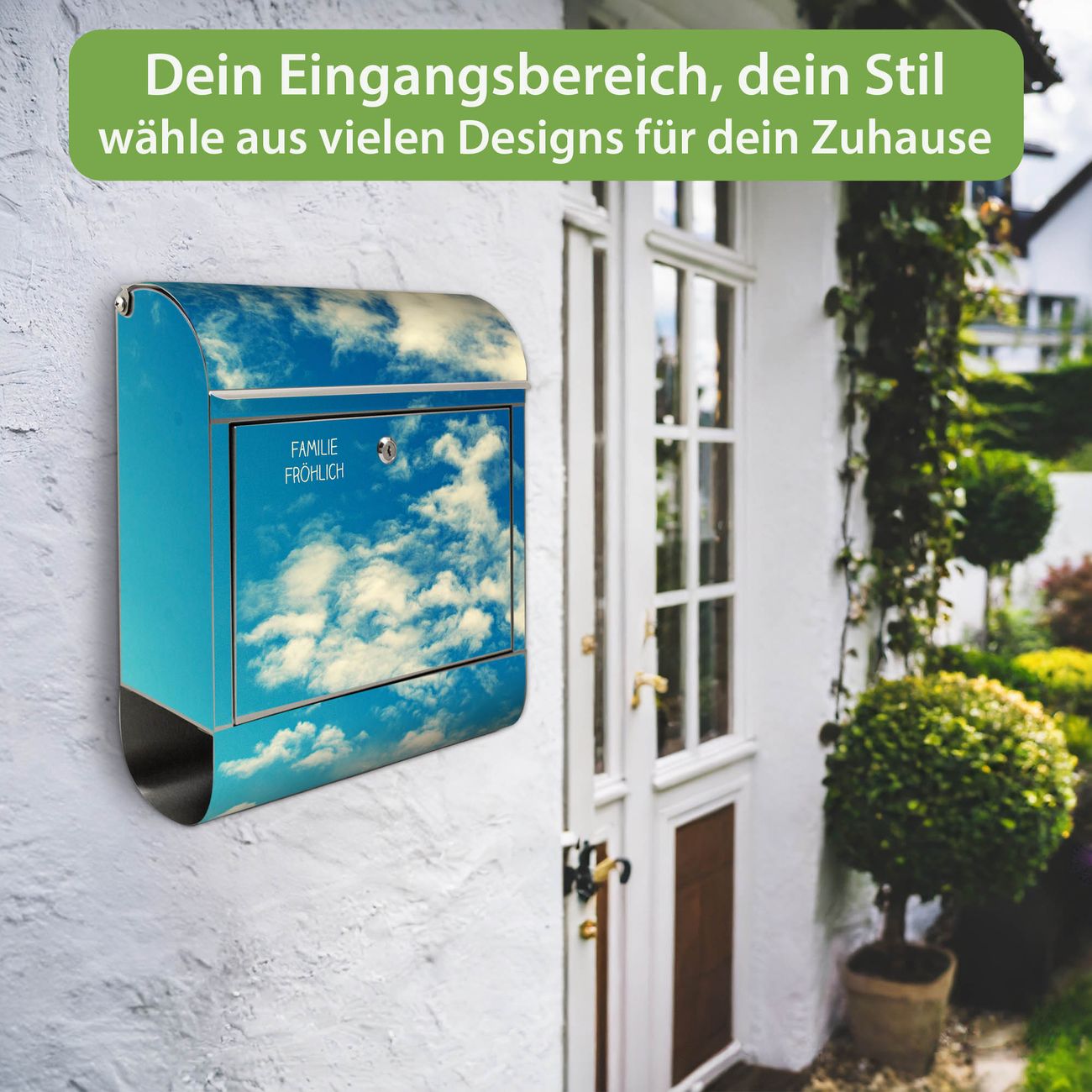 Wandbriefkasten Edelstahl Motiv Wolken 5