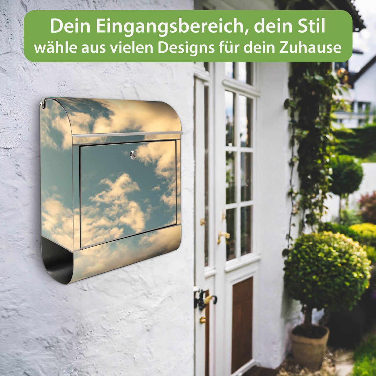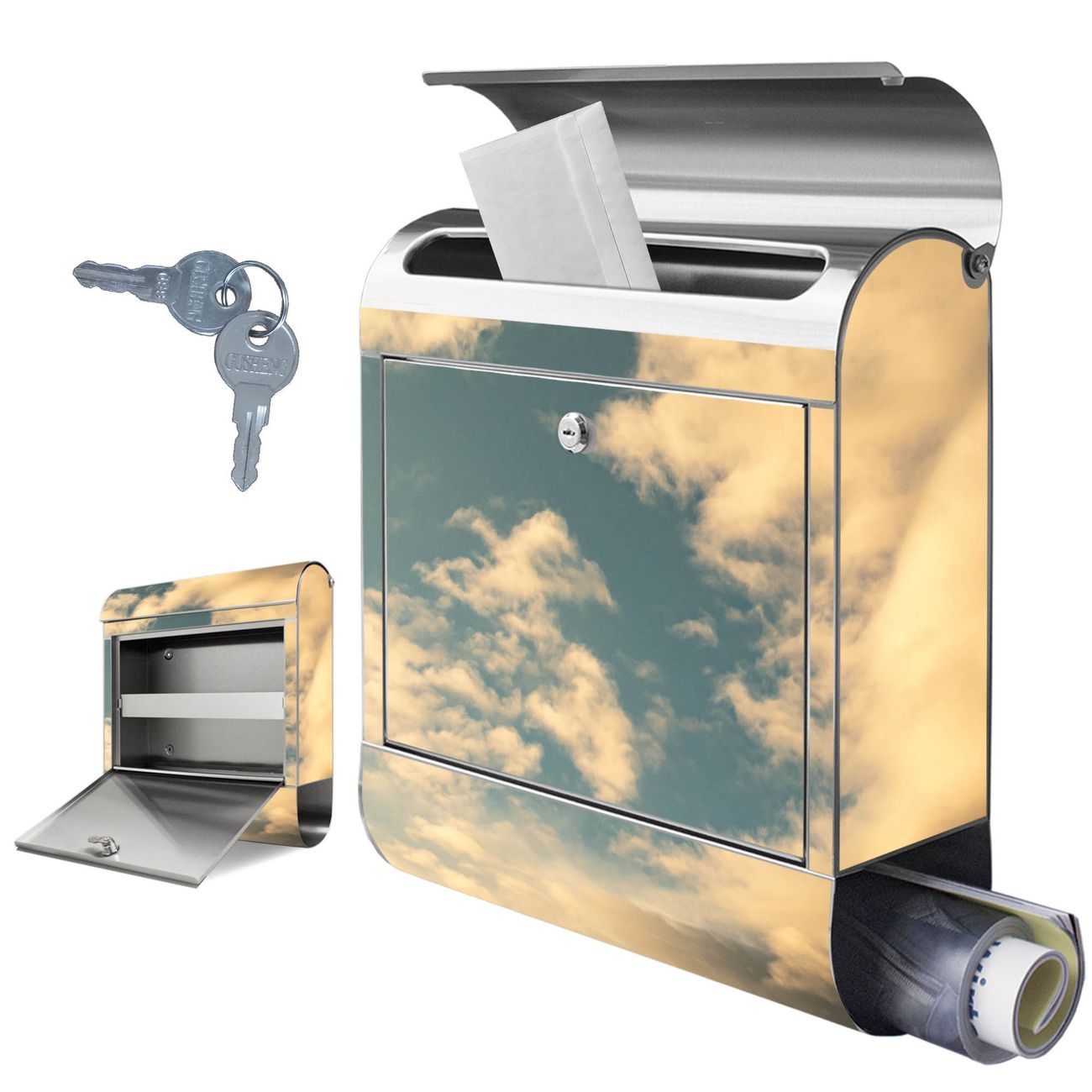 Wandbriefkasten Edelstahl Motiv Wolken 6