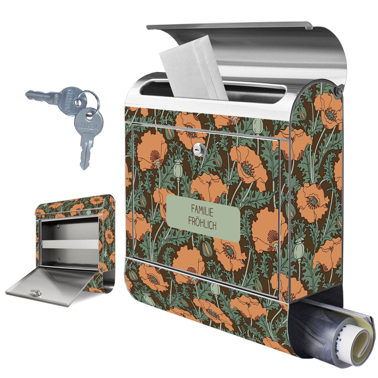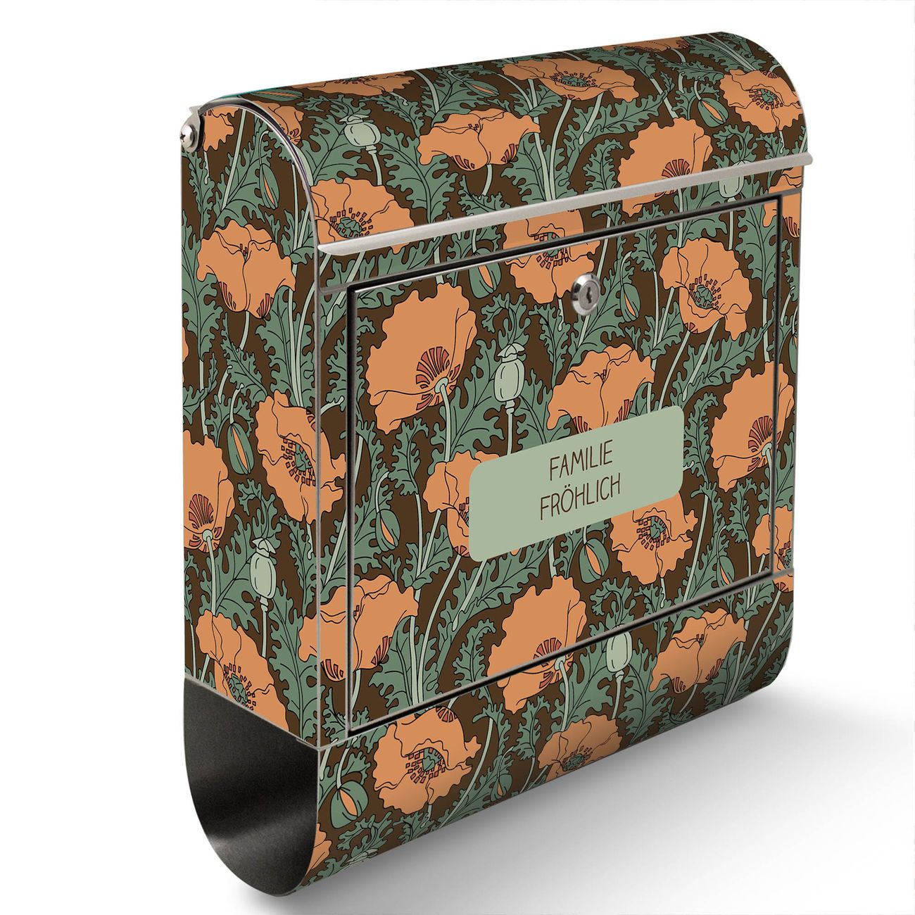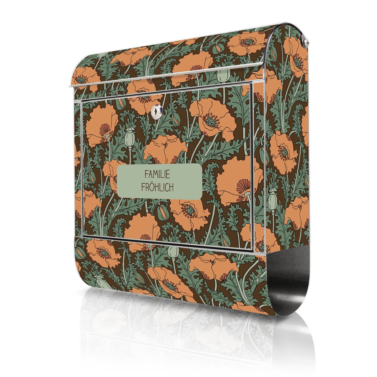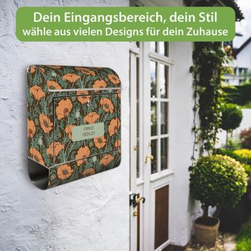 Wandbriefkasten Edelstahl Motiv Zeichnung Mohn