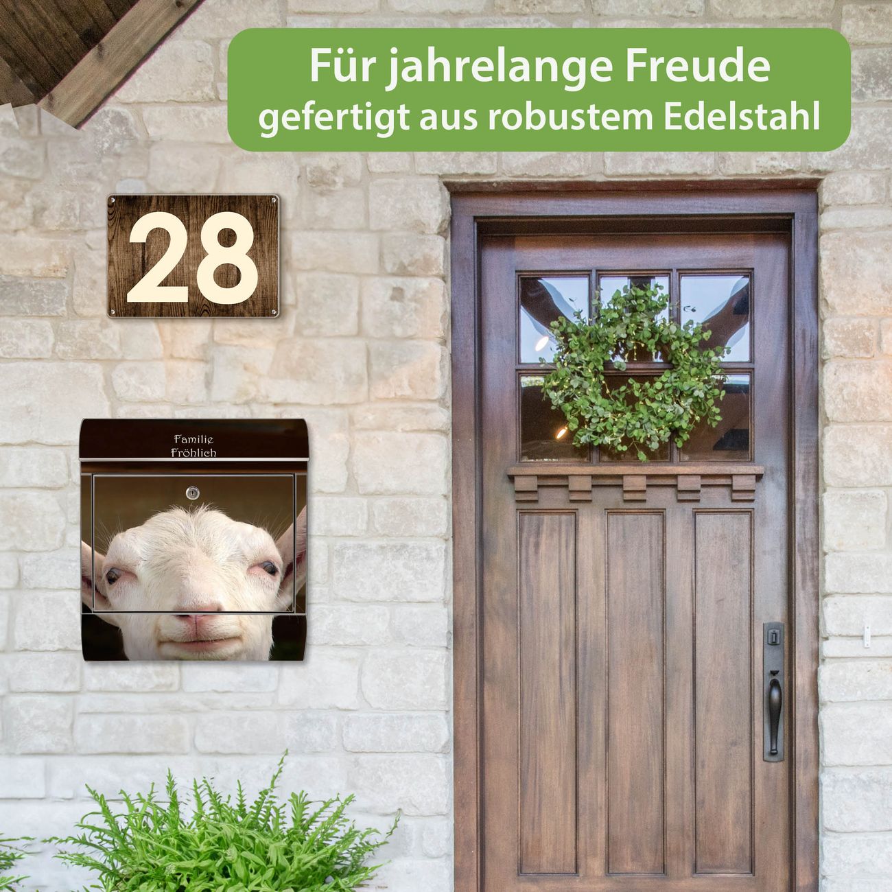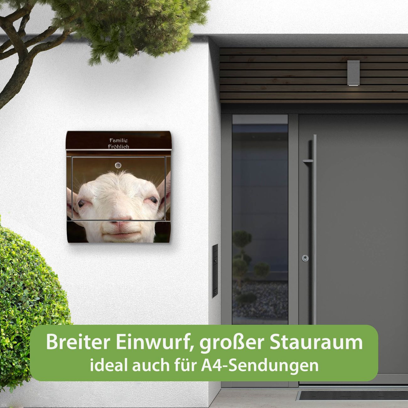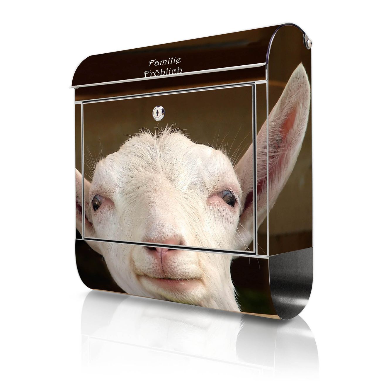 Wandbriefkasten Edelstahl Motiv Ziege