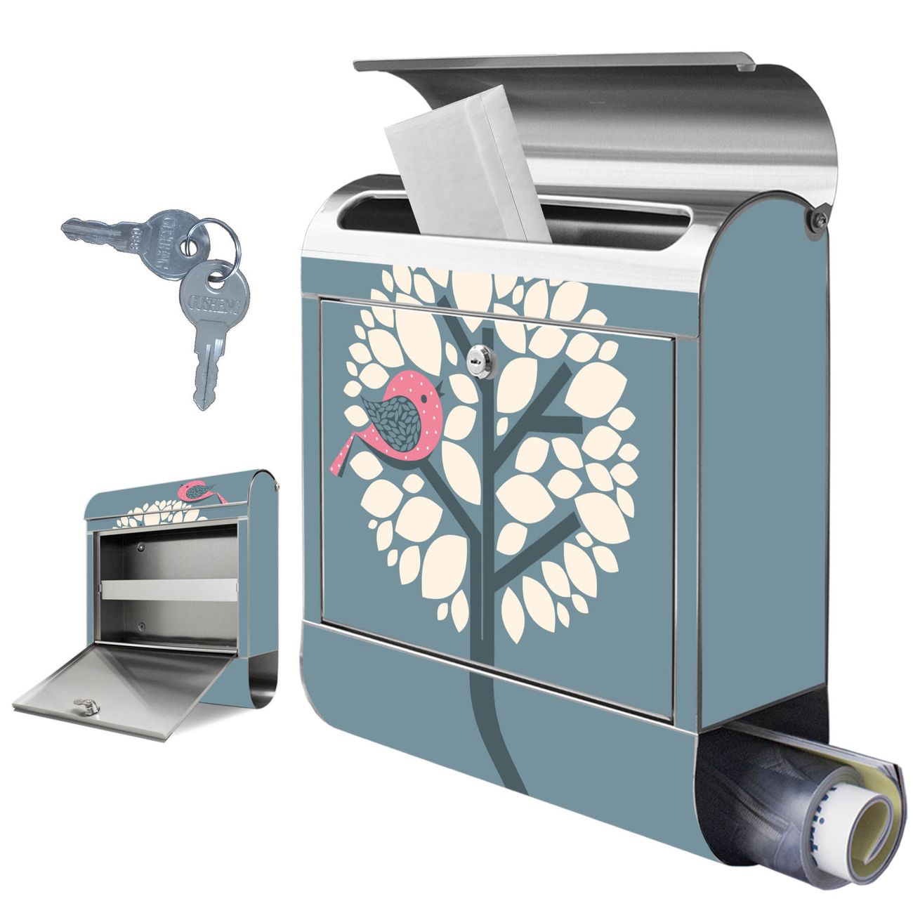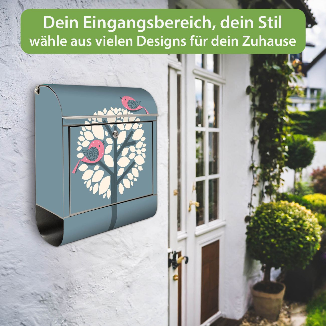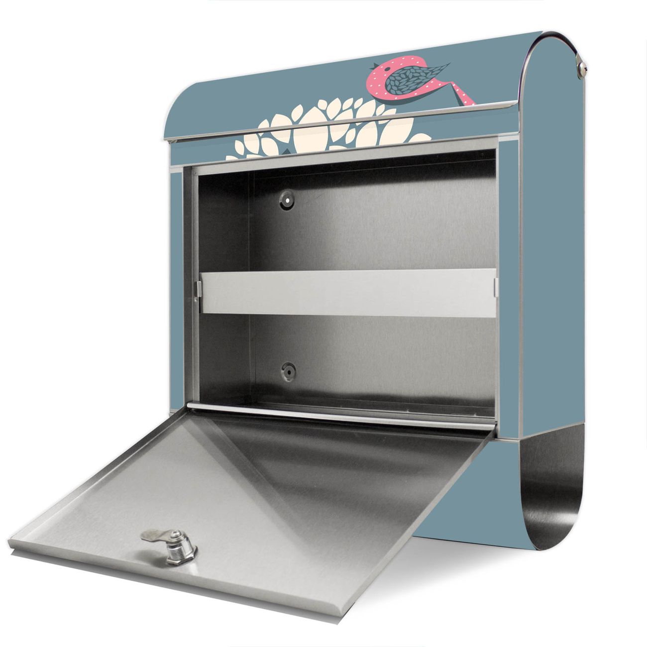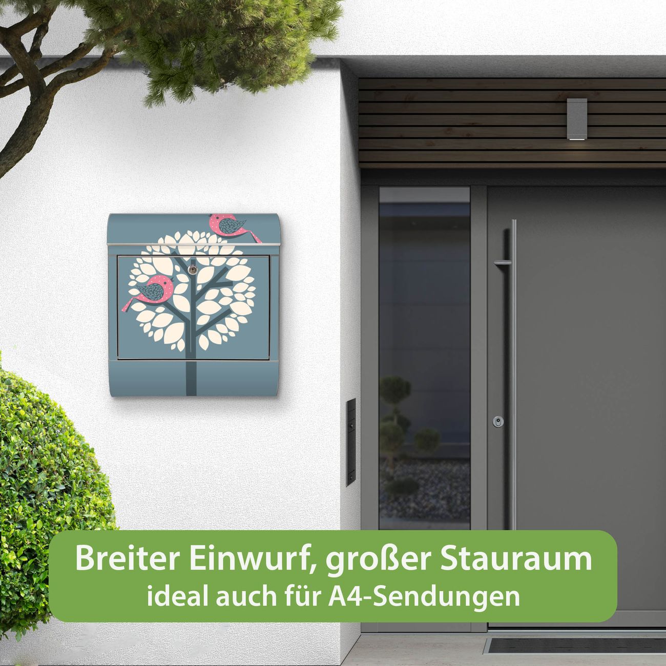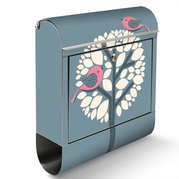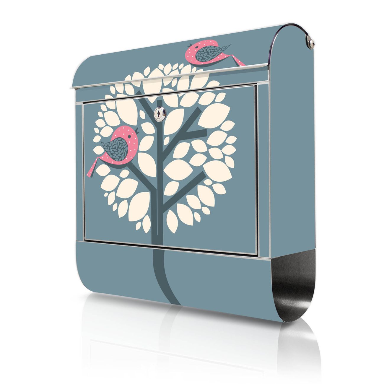Wandbriefkasten Edelstahl Motiv Zwei Rosa Vögel