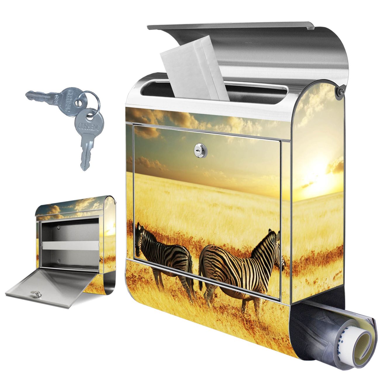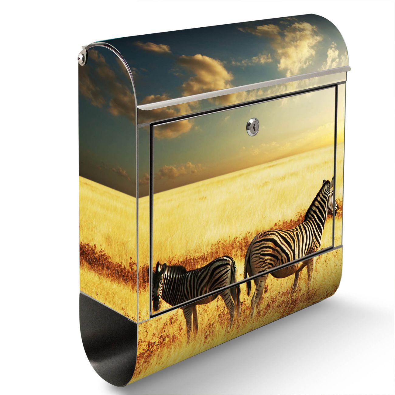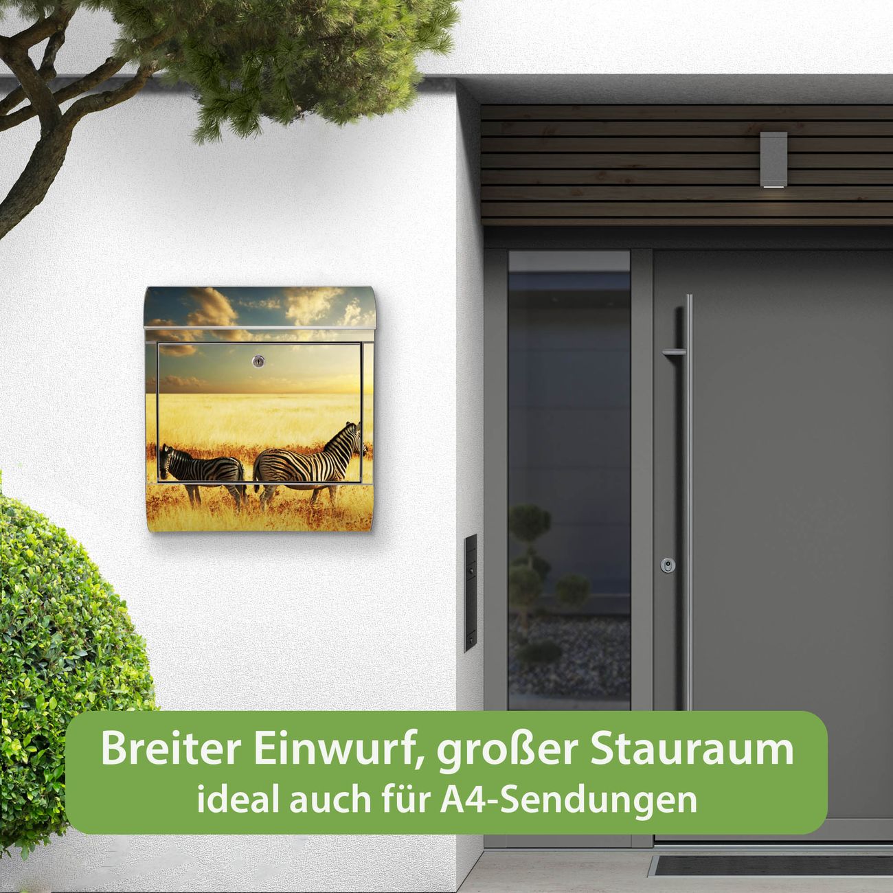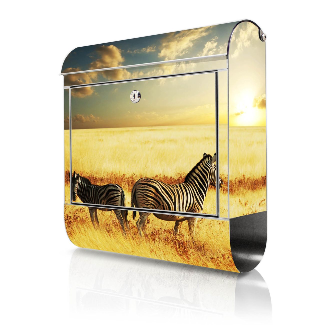 Wandbriefkasten Edelstahl Motiv Zwei Zebras