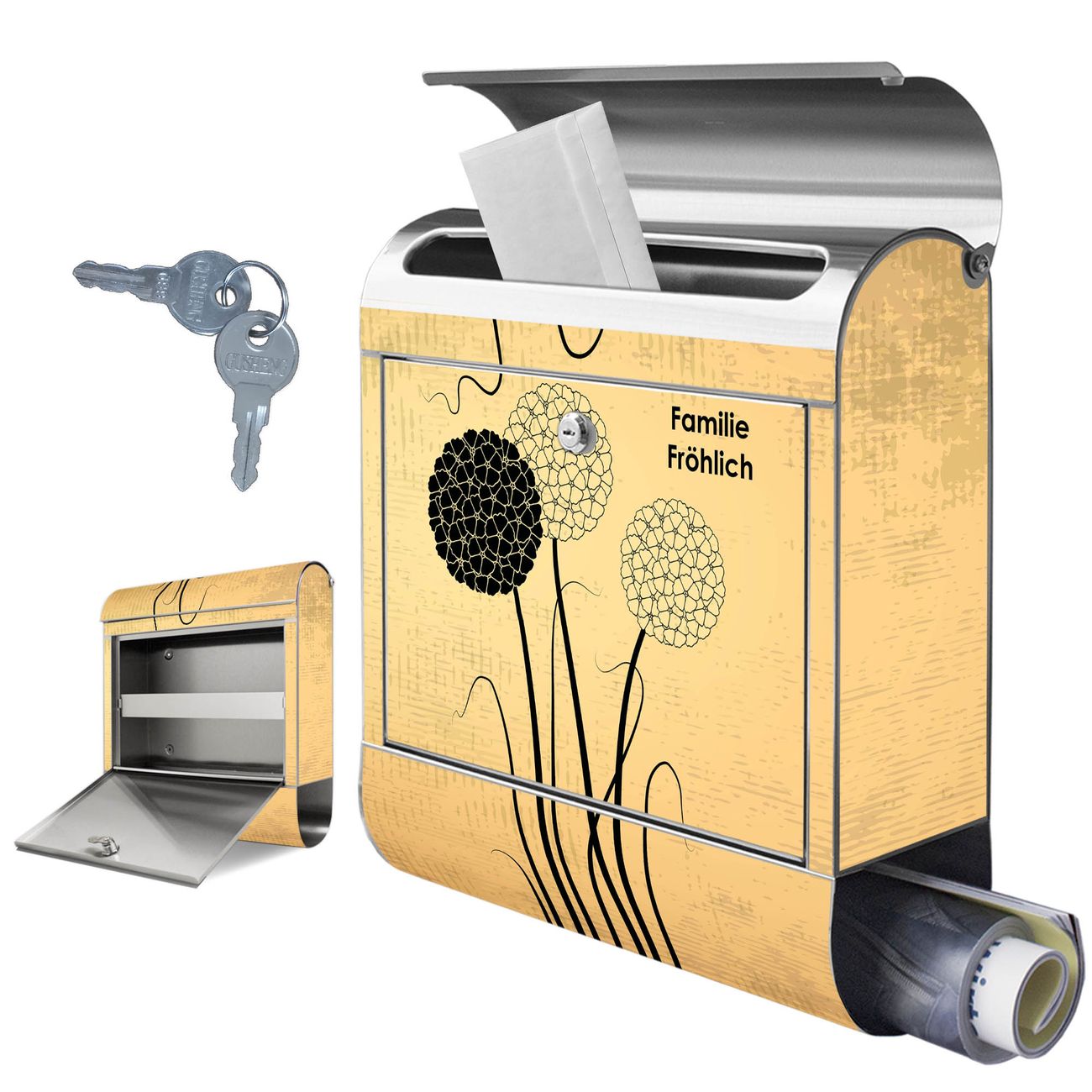 Wir bieten Ihnen ebenfalls Namensschilder, bereits beschriftet oder frei zu beschriften, und verschiedene selbst gestaltete Bitte-Keine-Werbung-Aufkleber.