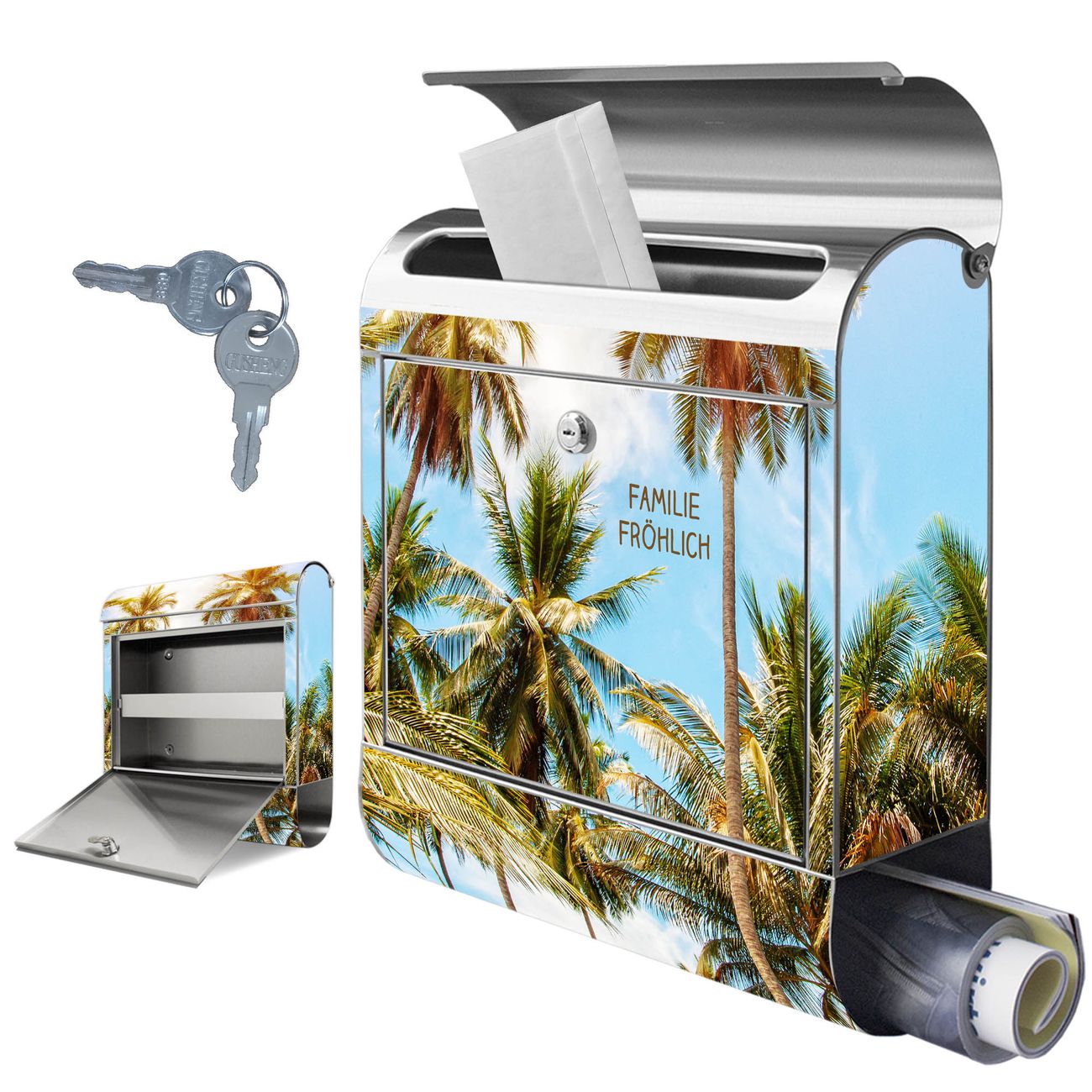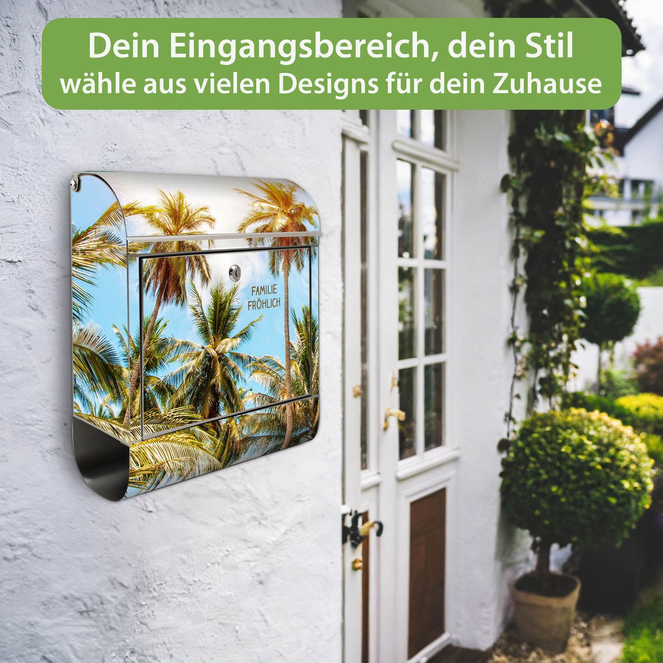 Wandbriefkasten Edelstahl Motiv Zwischen Palmen