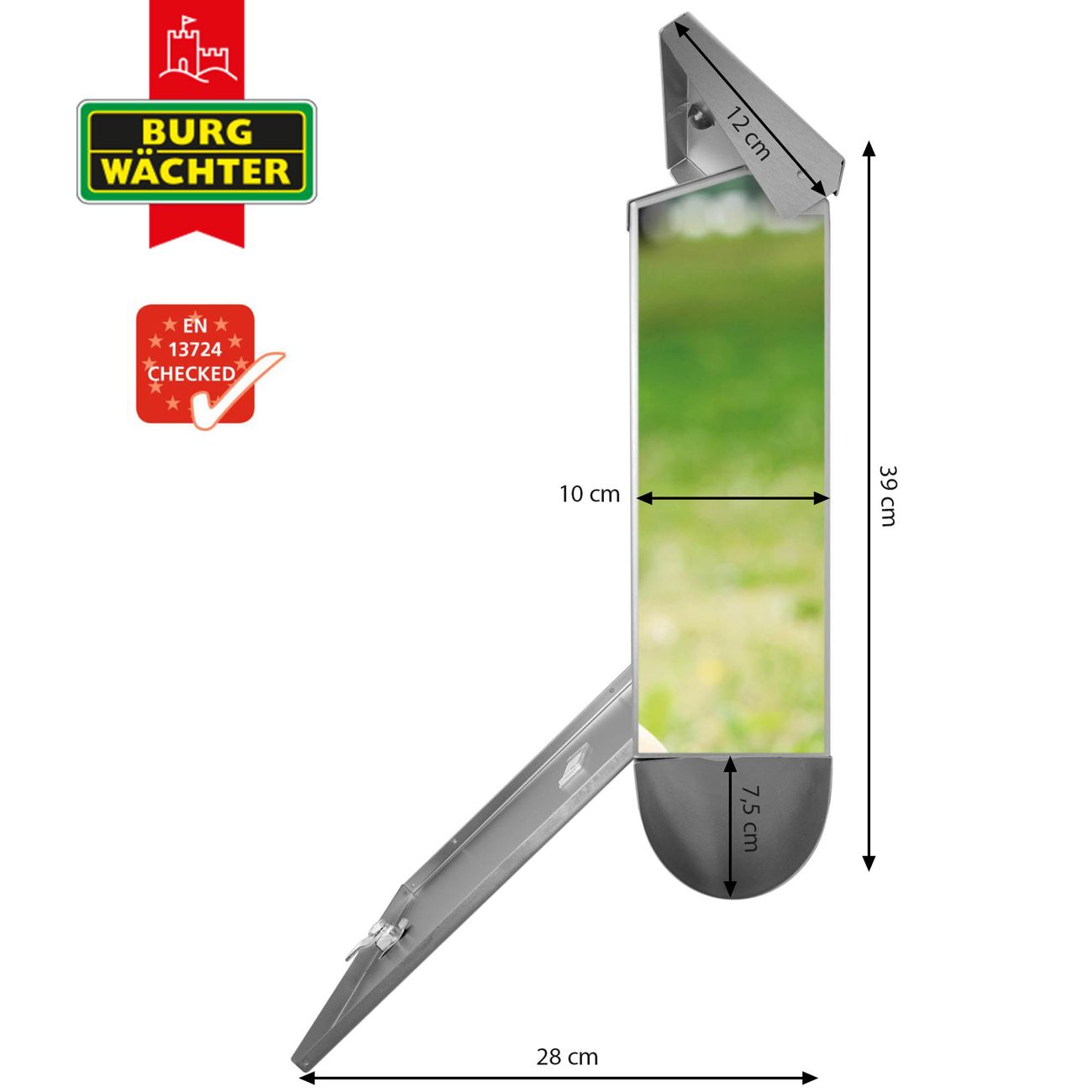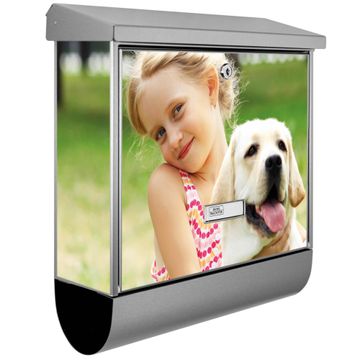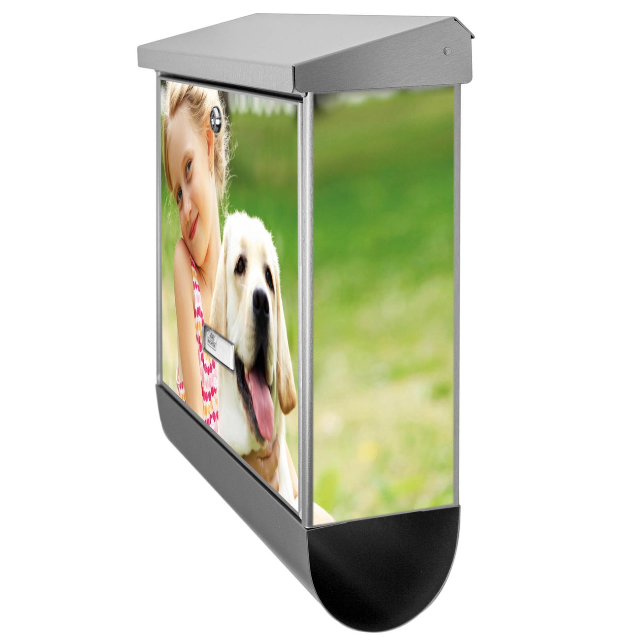 Der BURG-WÄCHTER Edelstahl Briefkasten mit Motiv mit Ihrem eigenen Motiv und Zeitungsrolle bietet Ihnen mit seinem Fassungsvermögen genügend Platz auch für große A4 Sendungen und Zeitschriften. Das integrierte Regendach schützt Ihre Post vor dem Eindringen von Regen.