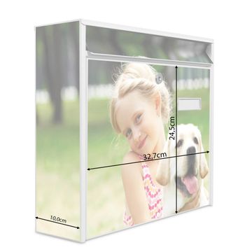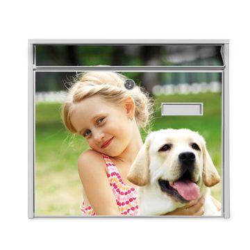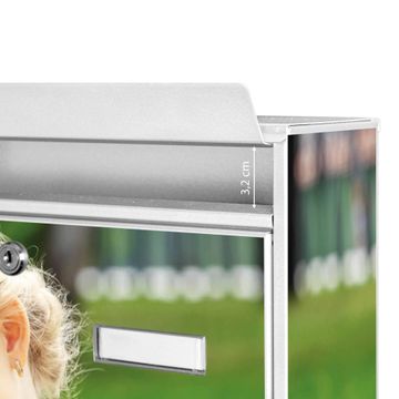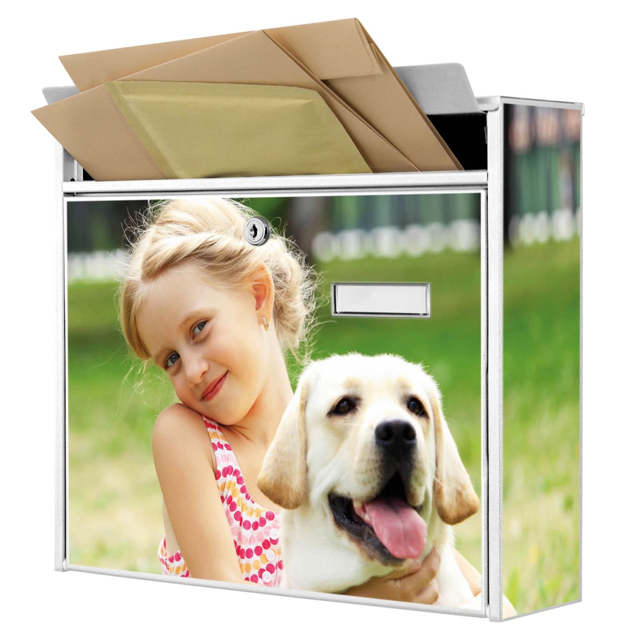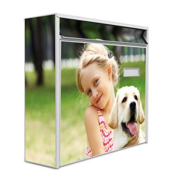 Der Burg Wächter Mail Briefkasten mit Motiv mit Ihrem eigenen Motiv bietet Ihnen mit seinem Fassungsvermögen genügend Platz auch für große A4 Sendungen. Auf Wunsch können Sie bei uns den passenden Standfuß kaufen und so aus dem Wandbriefkasten einen Standbriefkasten machen. Wir bieten Ihnen ebenfalls Namensschilder, bereits beschriftet oder frei zu beschriften, und verschiedene selbst gestaltete Bitte-Keine-Werbung-Aufkleber.