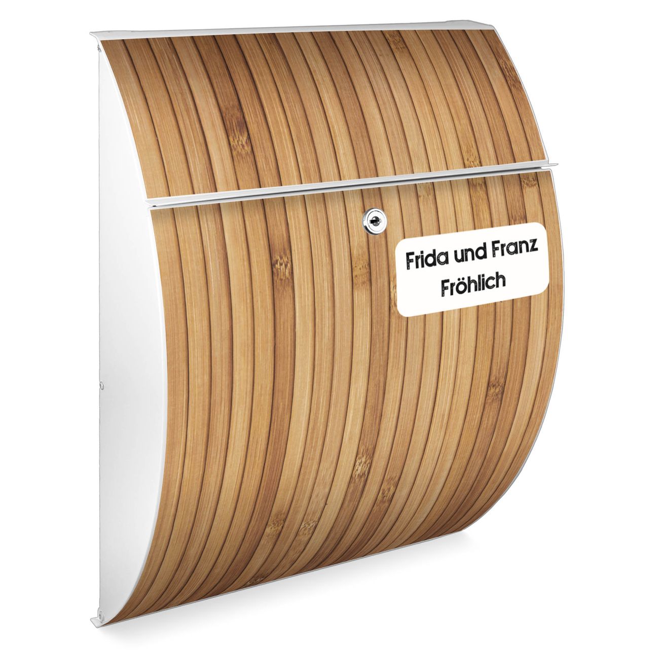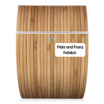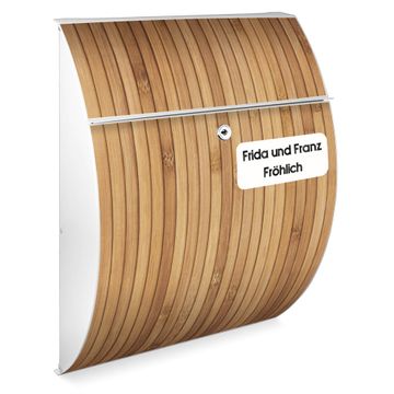 FUNKTION: DESIGN: Das Modell Riviera mit Motiv WT Bambusholz hat ein sehr ansprechendes und zeitloses Design. Heben Sie Sich von der tristen grauen Masse ab, ohne auf Funktionalität zu verzichten. Der integrierte Öffnungsstopp ermöglicht eine einfache Handhabung beim Entnehmen der Post. DETAILS: Der Postkasten besteht aus vollflächig verzinktem Stahl welcher in weiß lackiert wurde. Das Motiv besteht aus einer wetter- und UV-festen Folie, die mit einem Schutzlaminat überzogen ist, durch die Ihren Briefkasten zusätzlich vor Kratzern geschützt ist. Sie erhalten 2 Schlüssel sowie das passende Montagematerial. NUTZEN: Sie können den Briefkasten sowohl als Wandbriefkasten montieren oder einen passenden Ständer kaufen und als Standbriefkasten einbetonieren. Die Größe bietet genügend Platz für Sendungen aller Art, der Einwurf fasst auch größere A4 Sendungen. BANJADO: Ihr Briefkasten wird in Sachsen in einer kleinen Manufaktur von Hand veredelt. Die Motivfolie ist lösungsmittelfrei und schutzlaminiert, dies sorgt für einen langen Halt. Wir legen großen Wert auf die Verbindung von Funktionalität und Design. Sie erhalten Handarbeit aus Sachsen.