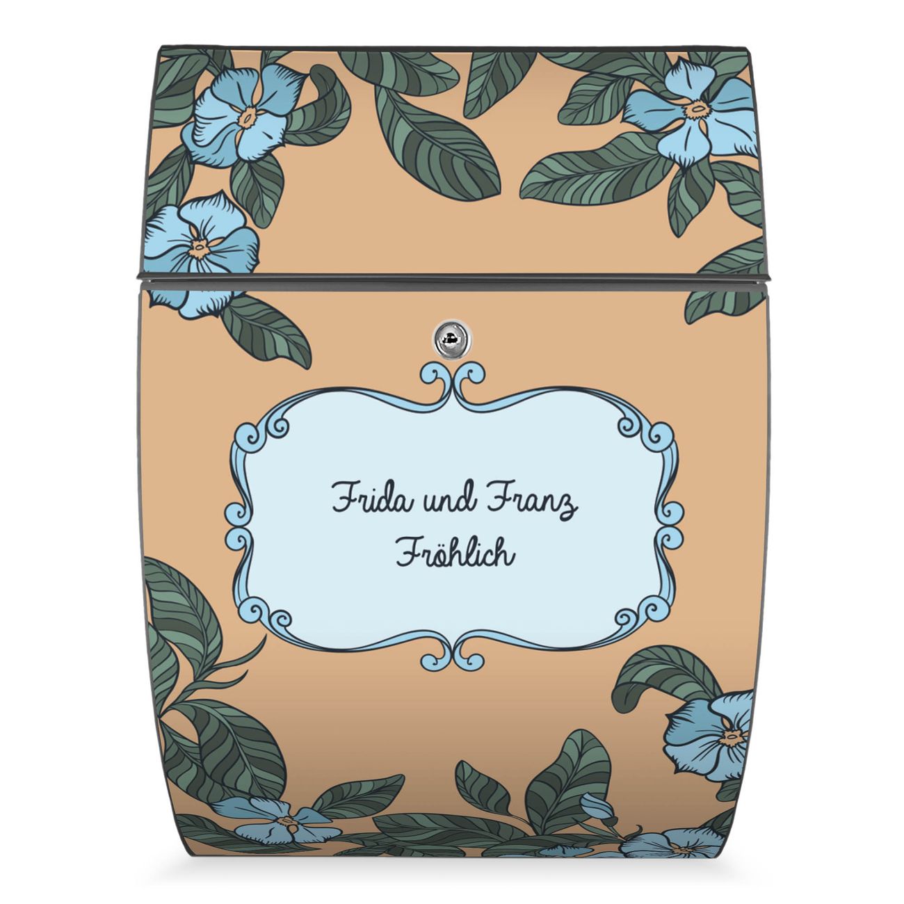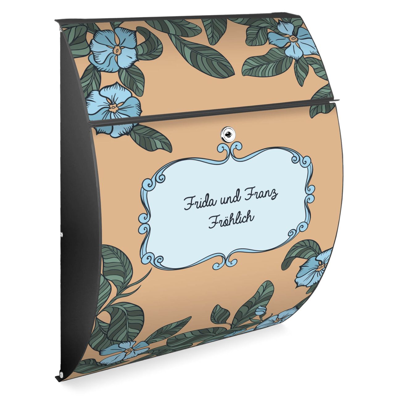 FUNKTION: DESIGN: Das Modell Riviera mit Motiv WT Blaue Veilchen hat ein sehr ansprechendes und zeitloses Design. Heben Sie Sich von der tristen grauen Masse ab, ohne auf Funktionalität zu verzichten. Der integrierte Öffnungsstopp ermöglicht eine einfache Handhabung beim Entnehmen der Post. DETAILS: Der Postkasten besteht aus vollflächig verzinktem Stahl welcher in Anthrazit lackiert wurde. Das Motiv besteht aus einer wetter- und UV-festen Folie, die mit einem Schutzlaminat überzogen ist, durch die Ihren Briefkasten zusätzlich vor Kratzern geschützt ist. Sie erhalten 2 Schlüssel sowie das passende Montagematerial. NUTZEN: Sie können den Briefkasten sowohl als Wandbriefkasten montieren oder einen passenden Ständer kaufen und als Standbriefkasten einbetonieren. Die Größe bietet genügend Platz für Sendungen aller Art, der Einwurf fasst auch größere A4 Sendungen. BANJADO: Ihr Briefkasten wird in Sachsen in einer kleinen Manufaktur von Hand veredelt. Die Motivfolie ist lösungsmittelfrei und schutzlaminiert, dies sorgt für einen langen Halt. Wir legen großen Wert auf die Verbindung von Funktionalität und Design. Sie erhalten Handarbeit aus Sachsen.