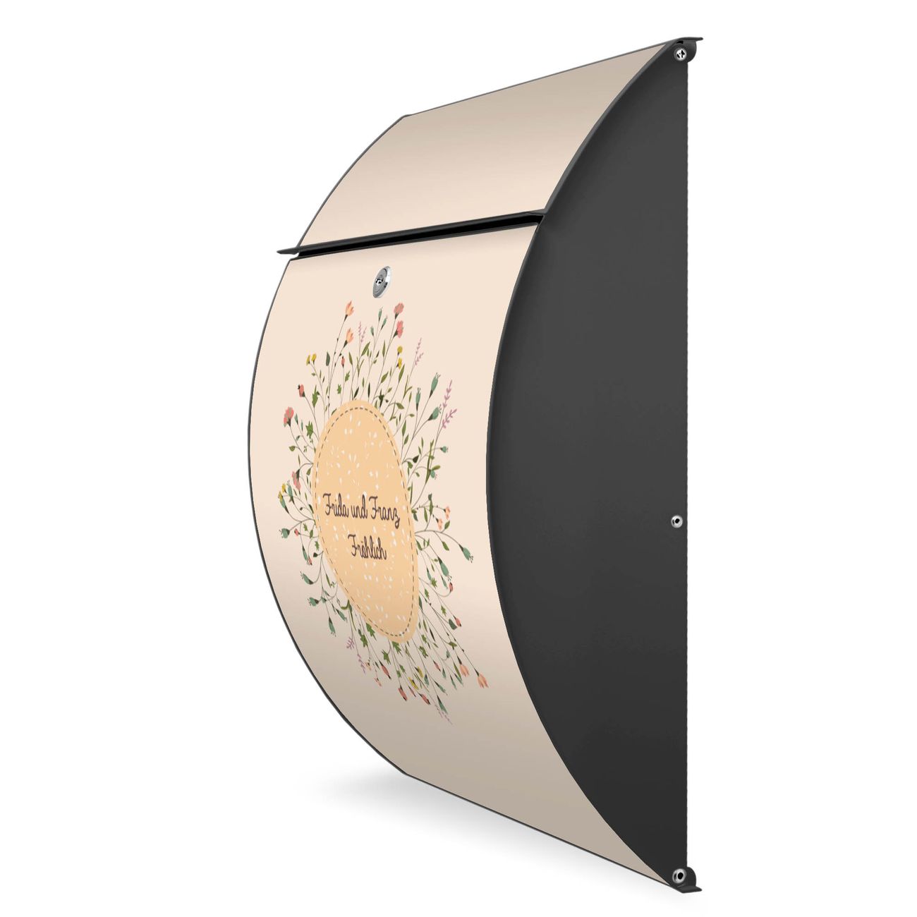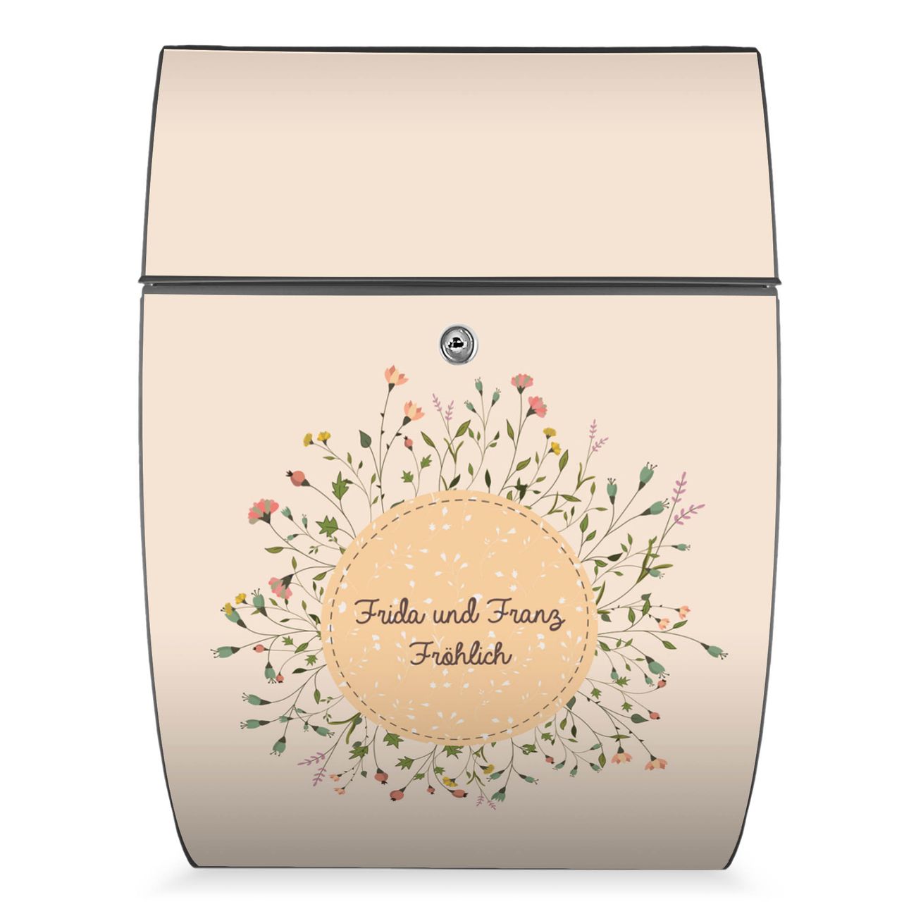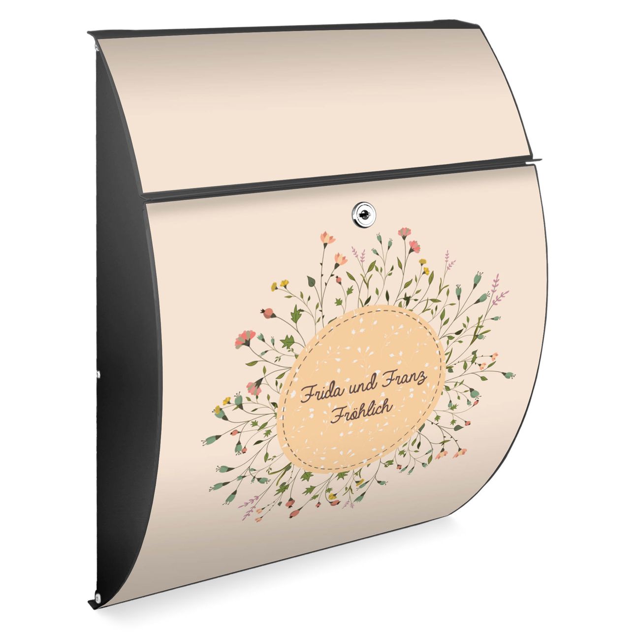 FUNKTION: DESIGN: Das Modell Riviera mit Motiv WT Blumenkranz hat ein sehr ansprechendes und zeitloses Design. Heben Sie Sich von der tristen grauen Masse ab, ohne auf Funktionalität zu verzichten. Der integrierte Öffnungsstopp ermöglicht eine einfache Handhabung beim Entnehmen der Post. DETAILS: Der Postkasten besteht aus vollflächig verzinktem Stahl welcher in Anthrazit lackiert wurde. Das Motiv besteht aus einer wetter- und UV-festen Folie, die mit einem Schutzlaminat überzogen ist, durch die Ihren Briefkasten zusätzlich vor Kratzern geschützt ist. Sie erhalten 2 Schlüssel sowie das passende Montagematerial. NUTZEN: Sie können den Briefkasten sowohl als Wandbriefkasten montieren oder einen passenden Ständer kaufen und als Standbriefkasten einbetonieren. Die Größe bietet genügend Platz für Sendungen aller Art, der Einwurf fasst auch größere A4 Sendungen. BANJADO: Ihr Briefkasten wird in Sachsen in einer kleinen Manufaktur von Hand veredelt. Die Motivfolie ist lösungsmittelfrei und schutzlaminiert, dies sorgt für einen langen Halt. Wir legen großen Wert auf die Verbindung von Funktionalität und Design. Sie erhalten Handarbeit aus Sachsen.