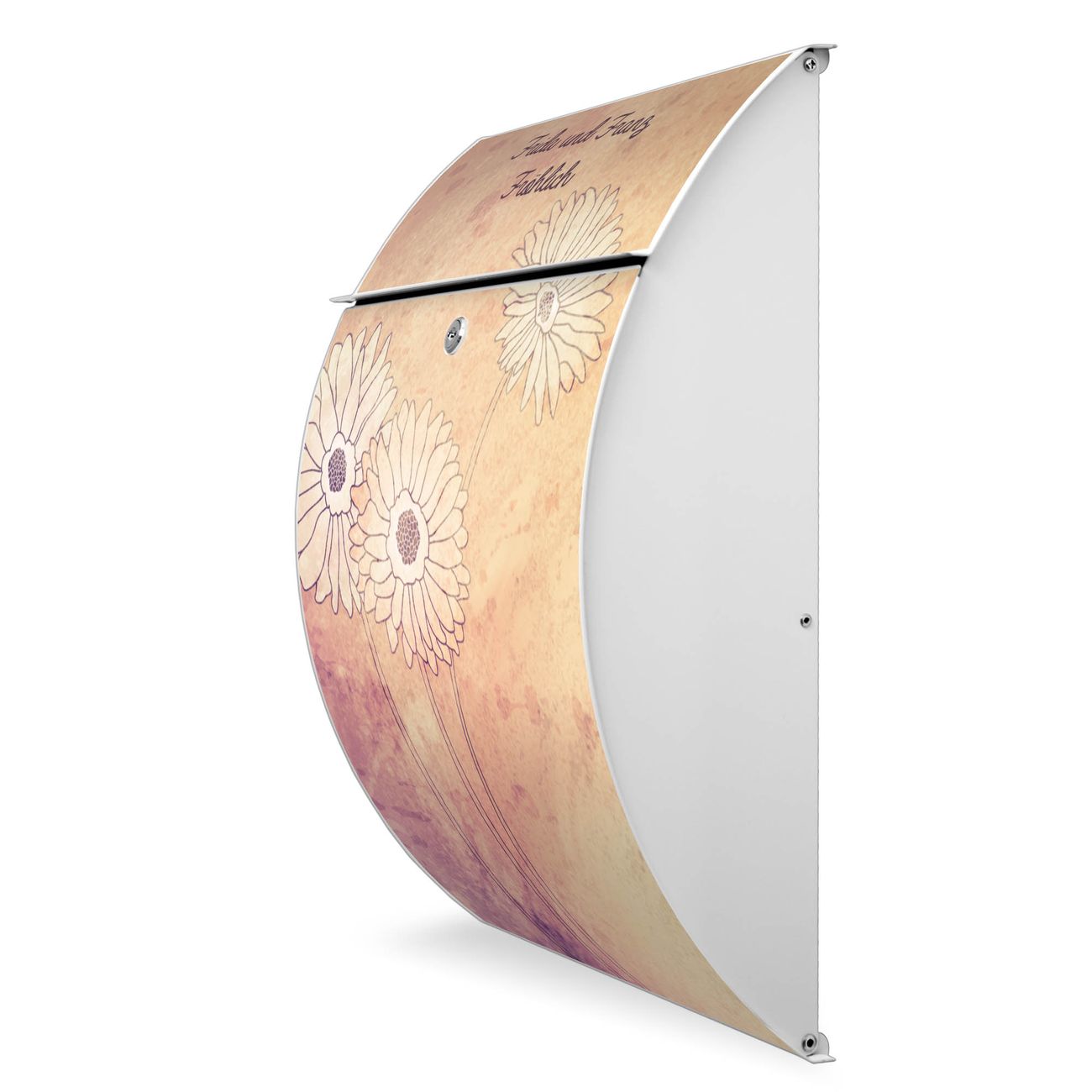 FUNKTION: DESIGN: Das Modell Riviera mit Motiv WT Gerbera hat ein sehr ansprechendes und zeitloses Design. Heben Sie Sich von der tristen grauen Masse ab, ohne auf Funktionalität zu verzichten. Der integrierte Öffnungsstopp ermöglicht eine einfache Handhabung beim Entnehmen der Post. DETAILS: Der Postkasten besteht aus vollflächig verzinktem Stahl welcher in weiß lackiert wurde. Das Motiv besteht aus einer wetter- und UV-festen Folie, die mit einem Schutzlaminat überzogen ist, durch die Ihren Briefkasten zusätzlich vor Kratzern geschützt ist. Sie erhalten 2 Schlüssel sowie das passende Montagematerial. NUTZEN: Sie können den Briefkasten sowohl als Wandbriefkasten montieren oder einen passenden Ständer kaufen und als Standbriefkasten einbetonieren. Die Größe bietet genügend Platz für Sendungen aller Art, der Einwurf fasst auch größere A4 Sendungen. BANJADO: Ihr Briefkasten wird in Sachsen in einer kleinen Manufaktur von Hand veredelt. Die Motivfolie ist lösungsmittelfrei und schutzlaminiert, dies sorgt für einen langen Halt. Wir legen großen Wert auf die Verbindung von Funktionalität und Design. Sie erhalten Handarbeit aus Sachsen.
