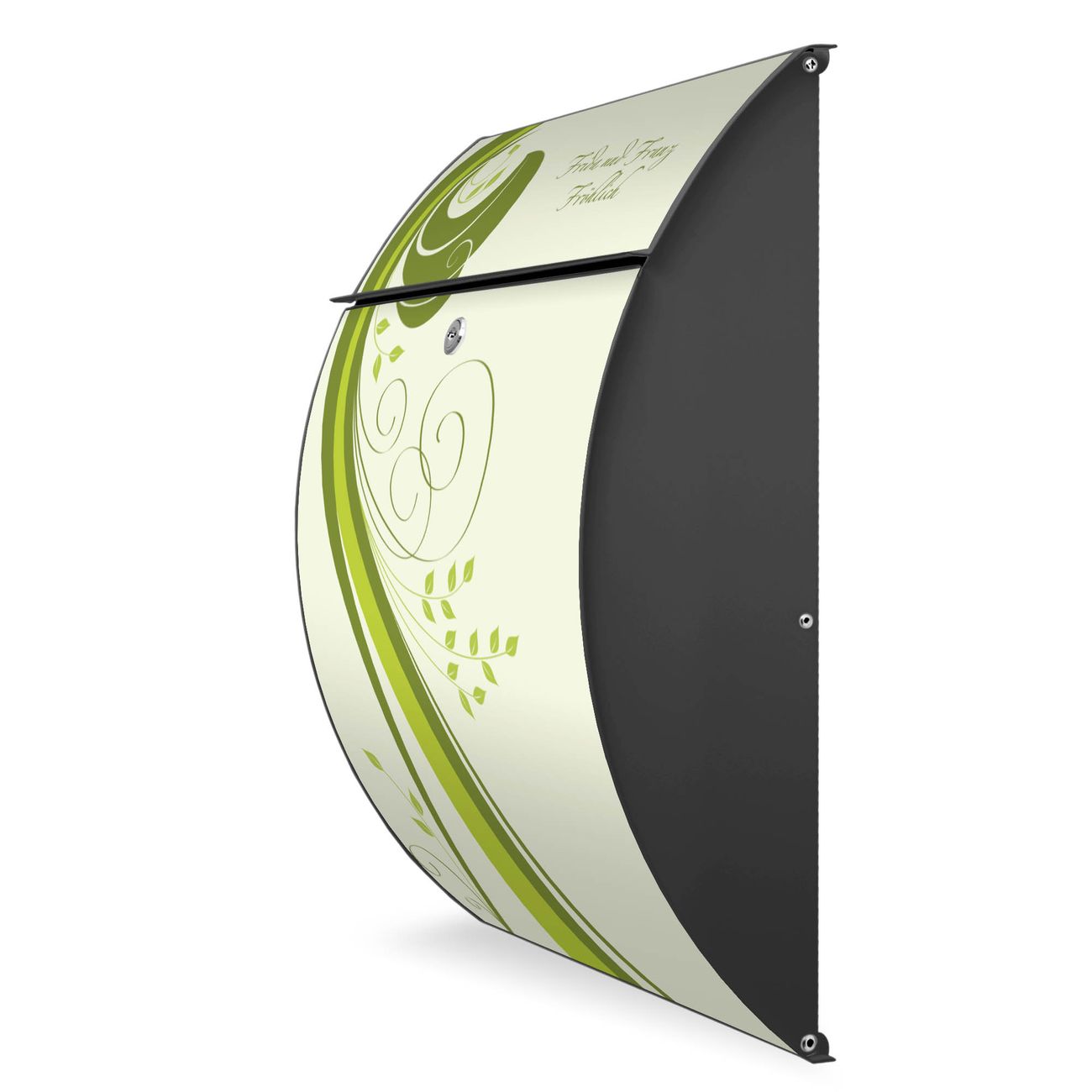 Der Burg Wächter Design Briefkasten mit Motiv WT Green Swirl bietet Ihnen mit seinem Fassungsvermögen genügend Platz auch für große A4 Sendungen. Auf Wunsch können Sie bei uns den passenden Ständer kaufen und so aus dem Wandbriefkasten einen Standbriefkasten machen.