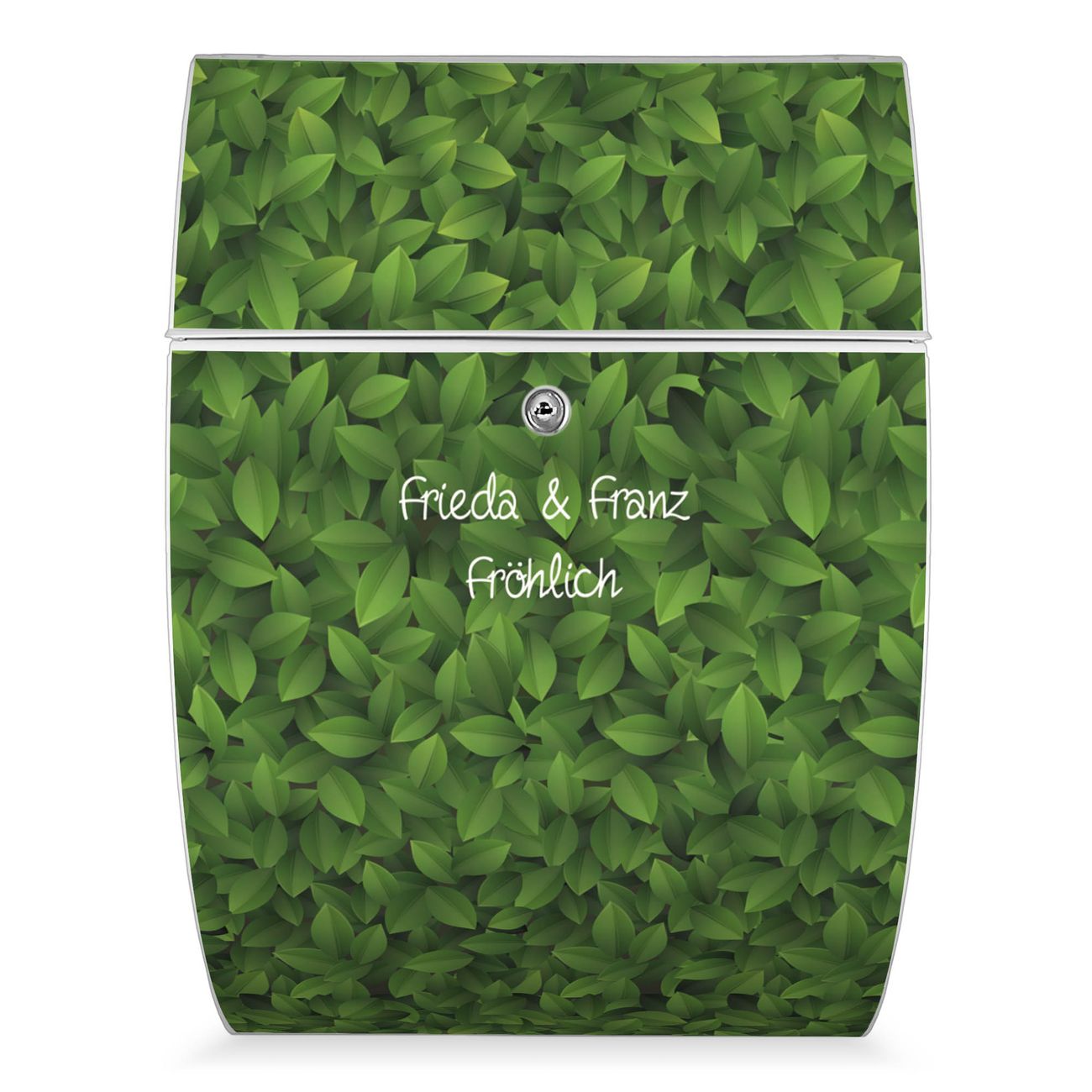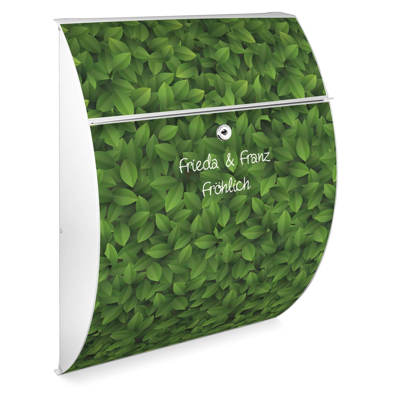 FUNKTION: DESIGN: Das Modell Riviera mit Motiv WT Grüne Blätter hat ein sehr ansprechendes und zeitloses Design. Heben Sie Sich von der tristen grauen Masse ab, ohne auf Funktionalität zu verzichten. Der integrierte Öffnungsstopp ermöglicht eine einfache Handhabung beim Entnehmen der Post. DETAILS: Der Postkasten besteht aus vollflächig verzinktem Stahl welcher in weiß lackiert wurde. Das Motiv besteht aus einer wetter- und UV-festen Folie, die mit einem Schutzlaminat überzogen ist, durch die Ihren Briefkasten zusätzlich vor Kratzern geschützt ist. Sie erhalten 2 Schlüssel sowie das passende Montagematerial. NUTZEN: Sie können den Briefkasten sowohl als Wandbriefkasten montieren oder einen passenden Ständer kaufen und als Standbriefkasten einbetonieren. Die Größe bietet genügend Platz für Sendungen aller Art, der Einwurf fasst auch größere A4 Sendungen. BANJADO: Ihr Briefkasten wird in Sachsen in einer kleinen Manufaktur von Hand veredelt. Die Motivfolie ist lösungsmittelfrei und schutzlaminiert, dies sorgt für einen langen Halt. Wir legen großen Wert auf die Verbindung von Funktionalität und Design. Sie erhalten Handarbeit aus Sachsen.