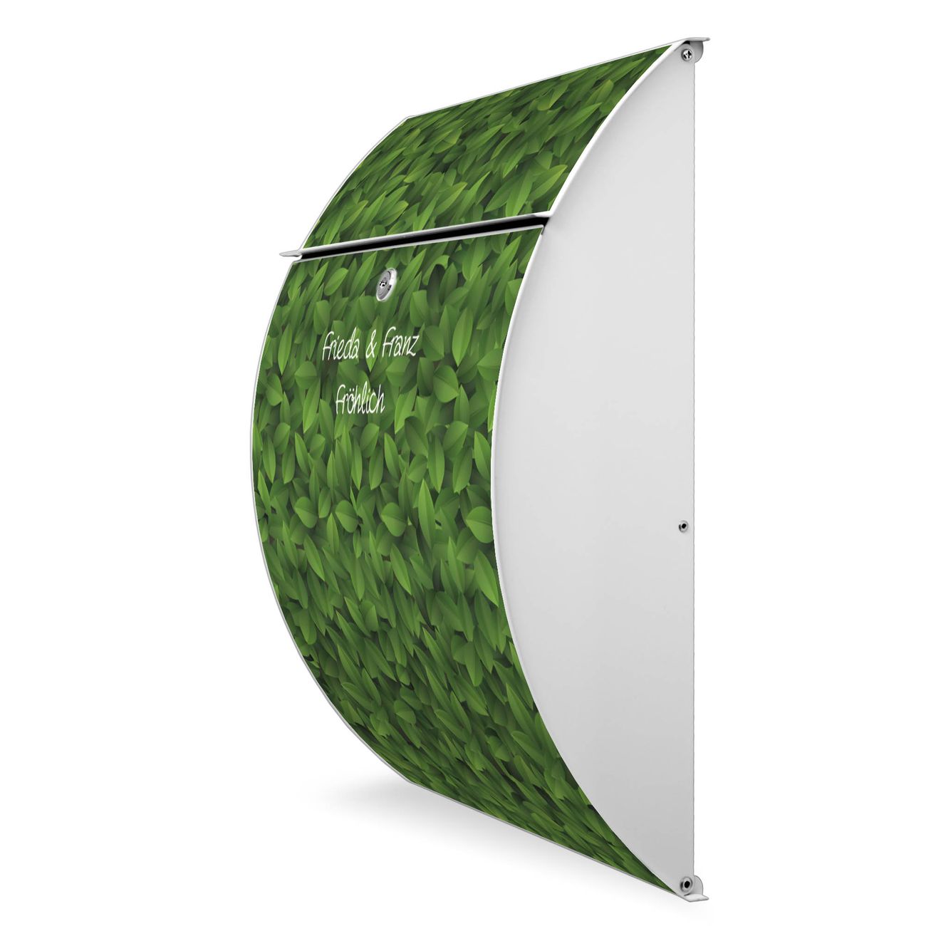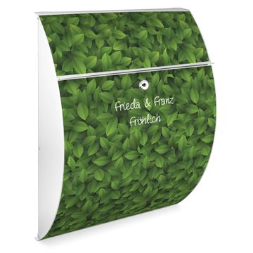 Der weiße Burg Wächter Design Briefkasten mit Motiv WT Grüne Blätter bietet Ihnen mit seinem Fassungsvermögen genügend Platz auch für große A4 Sendungen. Auf Wunsch können Sie bei uns auch den passenden Ständer kaufen und so aus dem Wandbriefkasten einen Standbriefkasten machen.