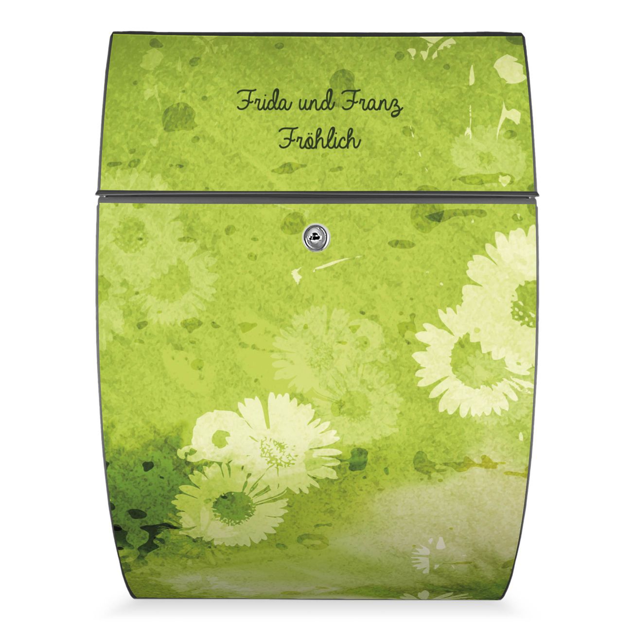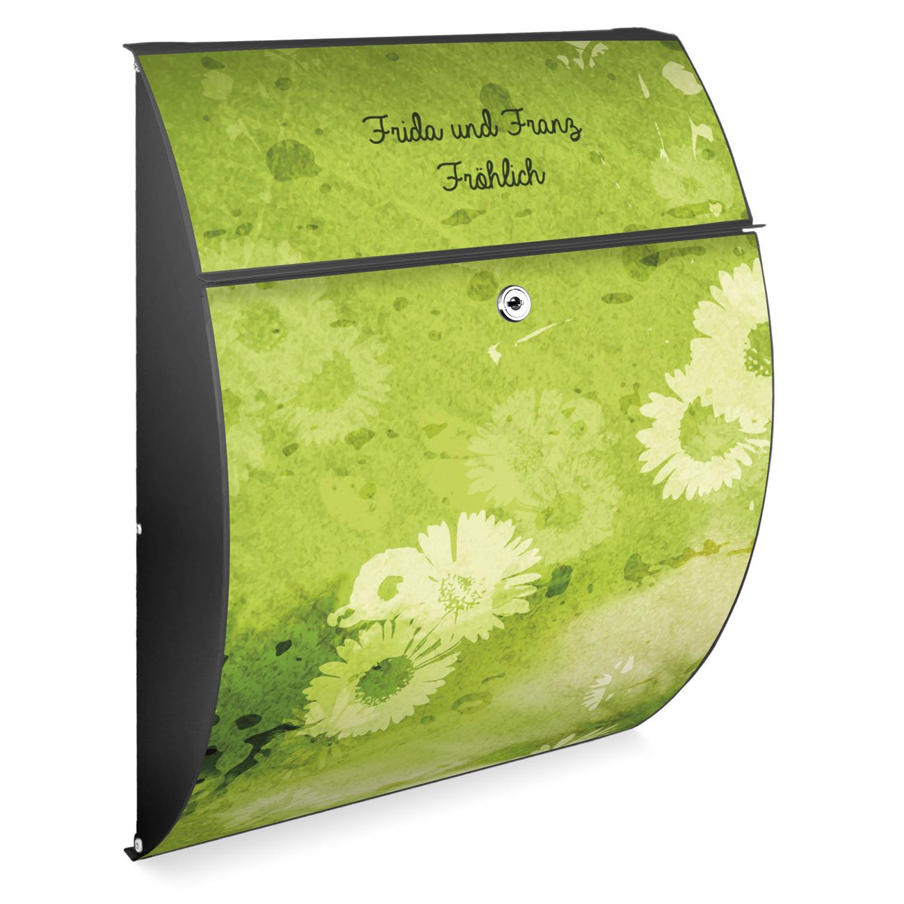 FUNKTION: DESIGN: Das Modell Riviera mit Motiv WT Kamille Grün hat ein sehr ansprechendes und zeitloses Design. Heben Sie Sich von der tristen grauen Masse ab, ohne auf Funktionalität zu verzichten. Der integrierte Öffnungsstopp ermöglicht eine einfache Handhabung beim Entnehmen der Post. DETAILS: Der Postkasten besteht aus vollflächig verzinktem Stahl welcher in Anthrazit lackiert wurde. Das Motiv besteht aus einer wetter- und UV-festen Folie, die mit einem Schutzlaminat überzogen ist, durch die Ihren Briefkasten zusätzlich vor Kratzern geschützt ist. Sie erhalten 2 Schlüssel sowie das passende Montagematerial. NUTZEN: Sie können den Briefkasten sowohl als Wandbriefkasten montieren oder einen passenden Ständer kaufen und als Standbriefkasten einbetonieren. Die Größe bietet genügend Platz für Sendungen aller Art, der Einwurf fasst auch größere A4 Sendungen. BANJADO: Ihr Briefkasten wird in Sachsen in einer kleinen Manufaktur von Hand veredelt. Die Motivfolie ist lösungsmittelfrei und schutzlaminiert, dies sorgt für einen langen Halt. Wir legen großen Wert auf die Verbindung von Funktionalität und Design. Sie erhalten Handarbeit aus Sachsen.