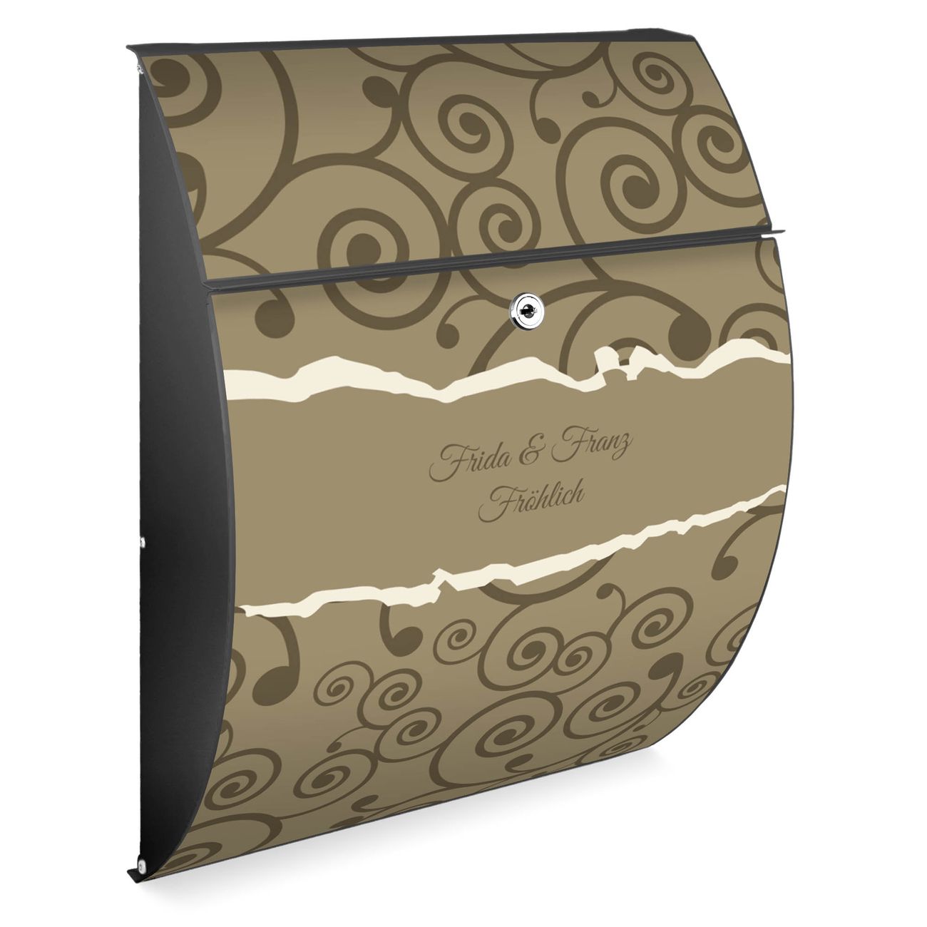 FUNKTION: DESIGN: Das Modell Riviera mit Motiv WT Kringel hat ein sehr ansprechendes und zeitloses Design. Heben Sie Sich von der tristen grauen Masse ab, ohne auf Funktionalität zu verzichten. Der integrierte Öffnungsstopp ermöglicht eine einfache Handhabung beim Entnehmen der Post. DETAILS: Der Postkasten besteht aus vollflächig verzinktem Stahl welcher in Anthrazit lackiert wurde. Das Motiv besteht aus einer wetter- und UV-festen Folie, die mit einem Schutzlaminat überzogen ist, durch die Ihren Briefkasten zusätzlich vor Kratzern geschützt ist. Sie erhalten 2 Schlüssel sowie das passende Montagematerial. NUTZEN: Sie können den Briefkasten sowohl als Wandbriefkasten montieren oder einen passenden Ständer kaufen und als Standbriefkasten einbetonieren. Die Größe bietet genügend Platz für Sendungen aller Art, der Einwurf fasst auch größere A4 Sendungen. BANJADO: Ihr Briefkasten wird in Sachsen in einer kleinen Manufaktur von Hand veredelt. Die Motivfolie ist lösungsmittelfrei und schutzlaminiert, dies sorgt für einen langen Halt. Wir legen großen Wert auf die Verbindung von Funktionalität und Design. Sie erhalten Handarbeit aus Sachsen.