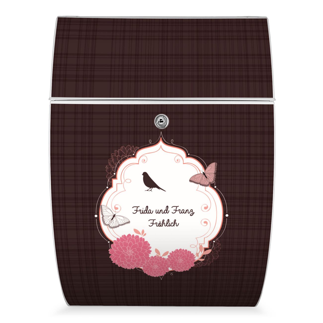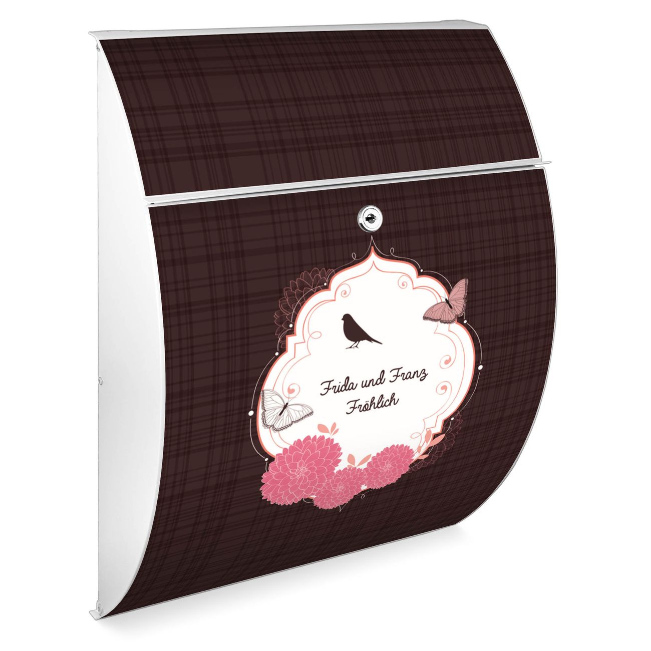 Der weiße Burg Wächter Design Briefkasten mit Motiv WT Ornament Mit Dahlien bietet Ihnen mit seinem Fassungsvermögen genügend Platz auch für große A4 Sendungen. Auf Wunsch können Sie bei uns auch den passenden Ständer kaufen und so aus dem Wandbriefkasten einen Standbriefkasten machen.