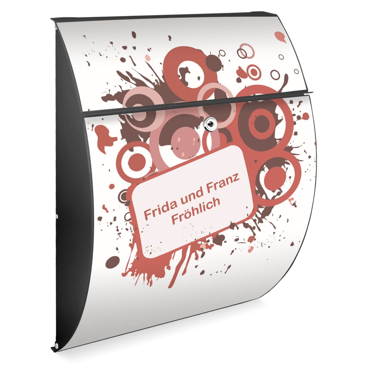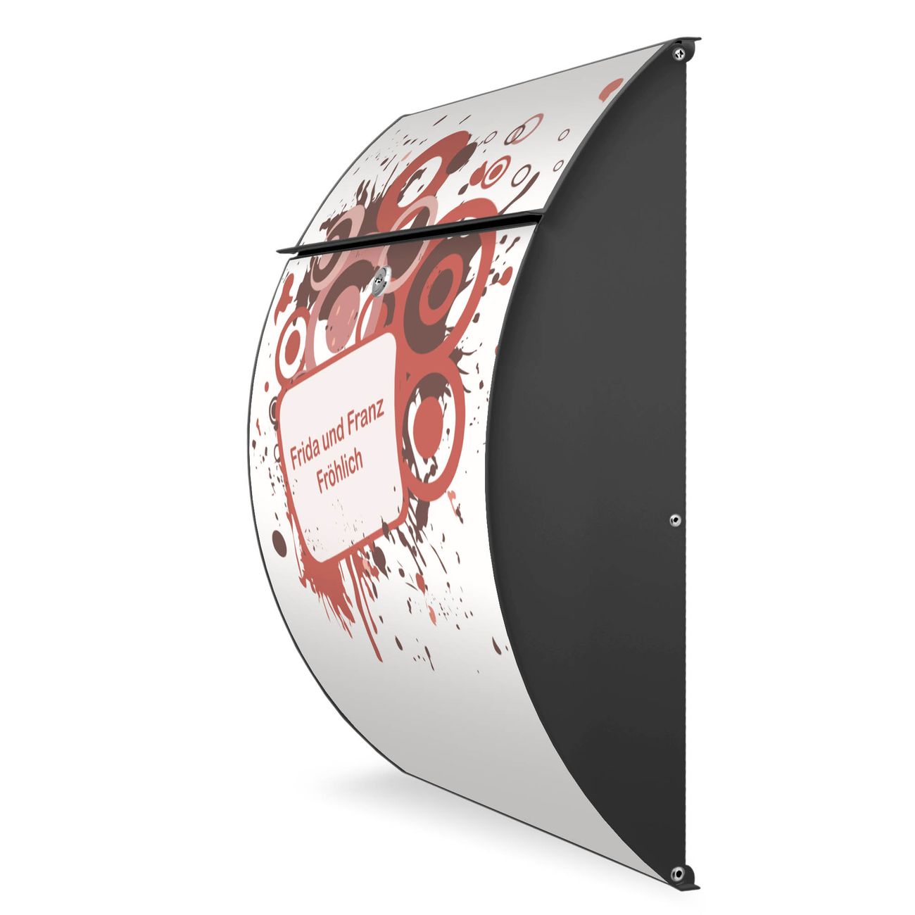 FUNKTION: DESIGN: Das Modell Riviera mit Motiv WT Pink Banner hat ein sehr ansprechendes und zeitloses Design. Heben Sie Sich von der tristen grauen Masse ab, ohne auf Funktionalität zu verzichten. Der integrierte Öffnungsstopp ermöglicht eine einfache Handhabung beim Entnehmen der Post. DETAILS: Der Postkasten besteht aus vollflächig verzinktem Stahl welcher in Anthrazit lackiert wurde. Das Motiv besteht aus einer wetter- und UV-festen Folie, die mit einem Schutzlaminat überzogen ist, durch die Ihren Briefkasten zusätzlich vor Kratzern geschützt ist. Sie erhalten 2 Schlüssel sowie das passende Montagematerial. NUTZEN: Sie können den Briefkasten sowohl als Wandbriefkasten montieren oder einen passenden Ständer kaufen und als Standbriefkasten einbetonieren. Die Größe bietet genügend Platz für Sendungen aller Art, der Einwurf fasst auch größere A4 Sendungen. BANJADO: Ihr Briefkasten wird in Sachsen in einer kleinen Manufaktur von Hand veredelt. Die Motivfolie ist lösungsmittelfrei und schutzlaminiert, dies sorgt für einen langen Halt. Wir legen großen Wert auf die Verbindung von Funktionalität und Design. Sie erhalten Handarbeit aus Sachsen.