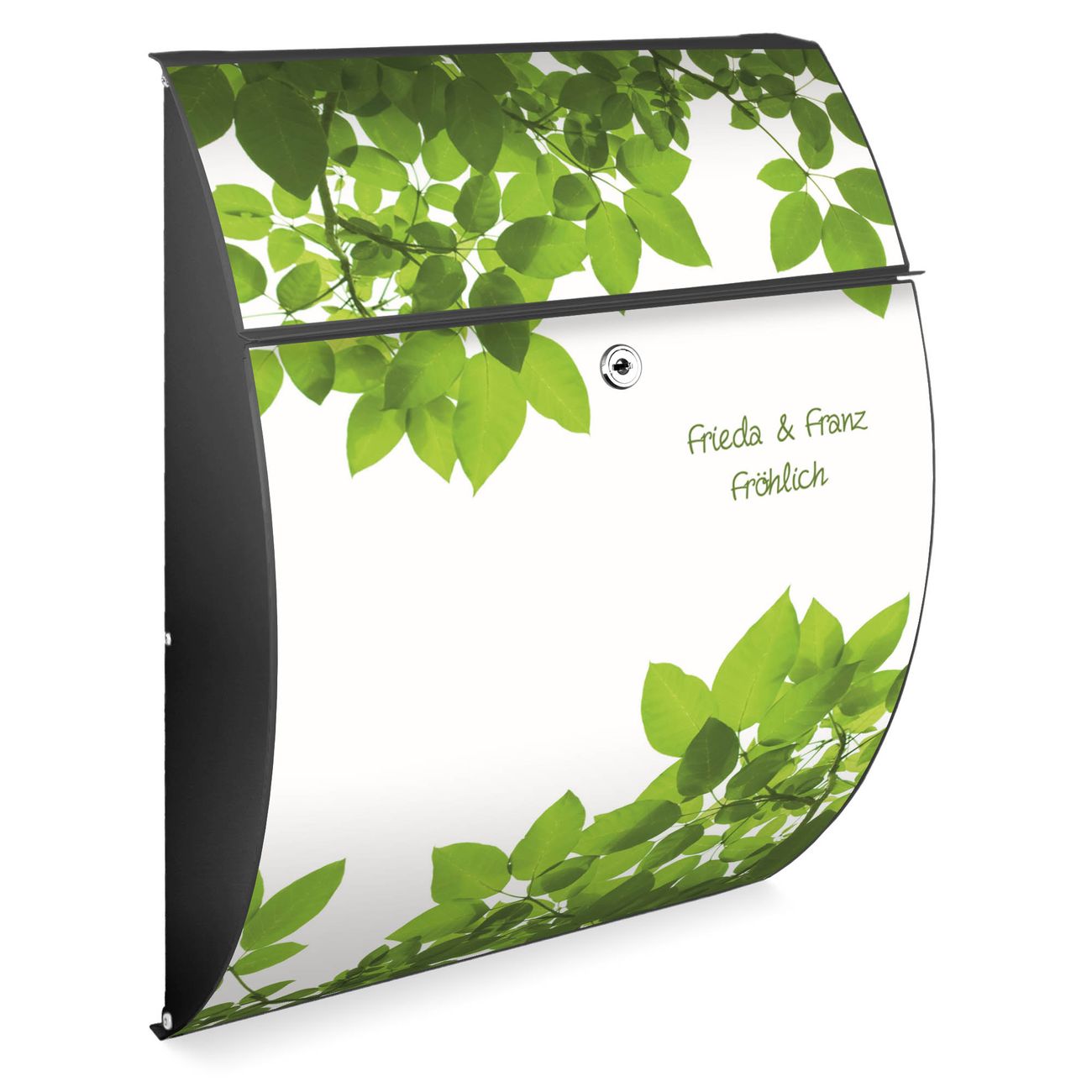 FUNKTION: DESIGN: Das Modell Riviera mit Motiv WT Rahmen Blätter hat ein sehr ansprechendes und zeitloses Design. Heben Sie Sich von der tristen grauen Masse ab, ohne auf Funktionalität zu verzichten. Der integrierte Öffnungsstopp ermöglicht eine einfache Handhabung beim Entnehmen der Post. DETAILS: Der Postkasten besteht aus vollflächig verzinktem Stahl welcher in Anthrazit lackiert wurde. Das Motiv besteht aus einer wetter- und UV-festen Folie, die mit einem Schutzlaminat überzogen ist, durch die Ihren Briefkasten zusätzlich vor Kratzern geschützt ist. Sie erhalten 2 Schlüssel sowie das passende Montagematerial. NUTZEN: Sie können den Briefkasten sowohl als Wandbriefkasten montieren oder einen passenden Ständer kaufen und als Standbriefkasten einbetonieren. Die Größe bietet genügend Platz für Sendungen aller Art, der Einwurf fasst auch größere A4 Sendungen. BANJADO: Ihr Briefkasten wird in Sachsen in einer kleinen Manufaktur von Hand veredelt. Die Motivfolie ist lösungsmittelfrei und schutzlaminiert, dies sorgt für einen langen Halt. Wir legen großen Wert auf die Verbindung von Funktionalität und Design. Sie erhalten Handarbeit aus Sachsen.