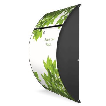 Der Burg Wächter Design Briefkasten mit Motiv WT Rahmen Blätter bietet Ihnen mit seinem Fassungsvermögen genügend Platz auch für große A4 Sendungen. Auf Wunsch können Sie bei uns den passenden Ständer kaufen und so aus dem Wandbriefkasten einen Standbriefkasten machen.