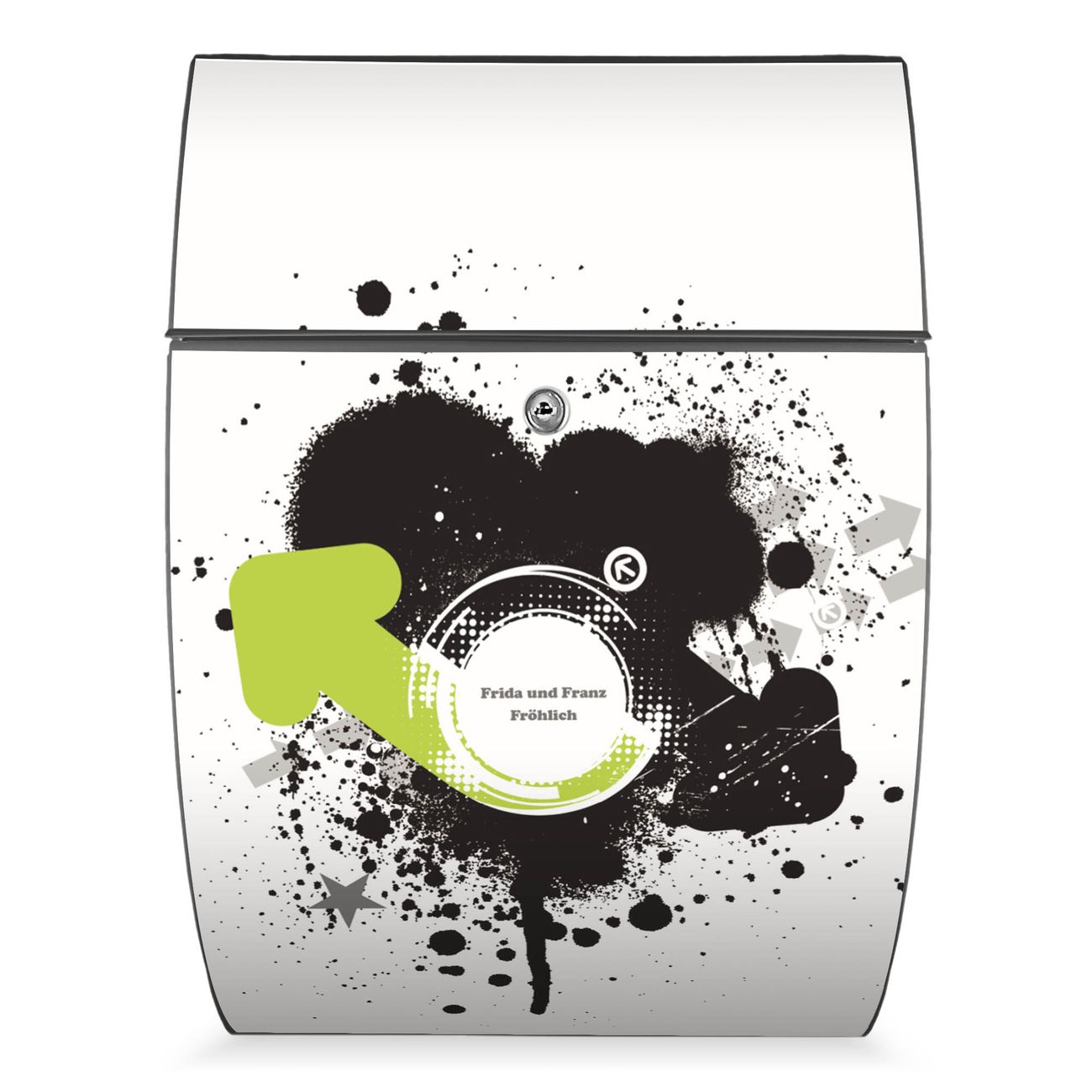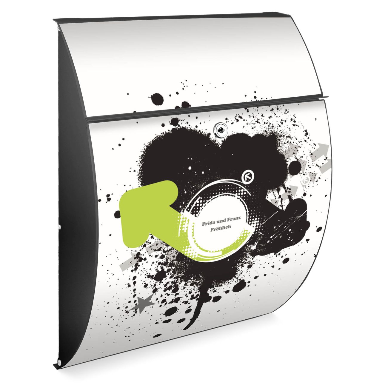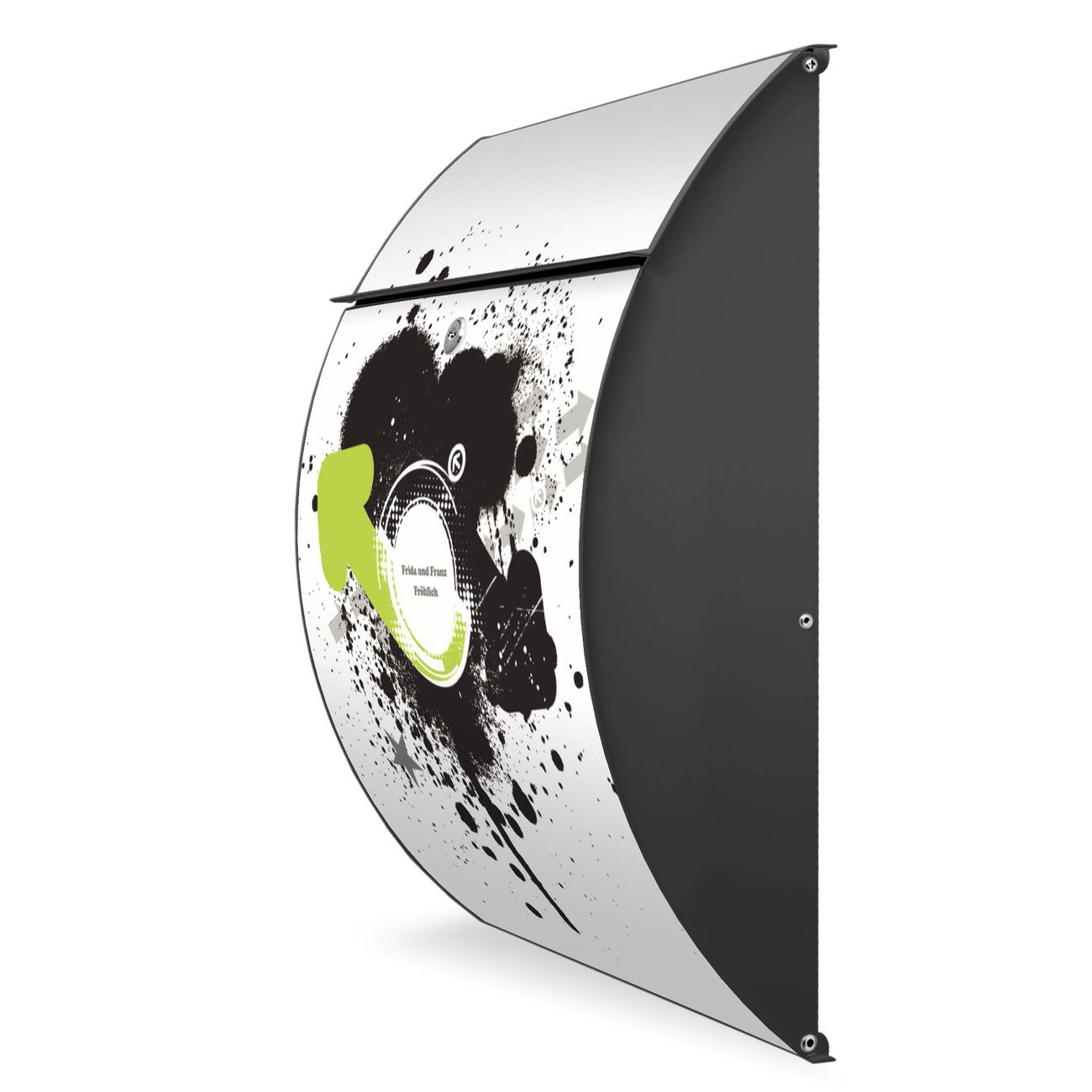 FUNKTION: DESIGN: Das Modell Riviera mit Motiv WT Rotation hat ein sehr ansprechendes und zeitloses Design. Heben Sie Sich von der tristen grauen Masse ab, ohne auf Funktionalität zu verzichten. Der integrierte Öffnungsstopp ermöglicht eine einfache Handhabung beim Entnehmen der Post. DETAILS: Der Postkasten besteht aus vollflächig verzinktem Stahl welcher in Anthrazit lackiert wurde. Das Motiv besteht aus einer wetter- und UV-festen Folie, die mit einem Schutzlaminat überzogen ist, durch die Ihren Briefkasten zusätzlich vor Kratzern geschützt ist. Sie erhalten 2 Schlüssel sowie das passende Montagematerial. NUTZEN: Sie können den Briefkasten sowohl als Wandbriefkasten montieren oder einen passenden Ständer kaufen und als Standbriefkasten einbetonieren. Die Größe bietet genügend Platz für Sendungen aller Art, der Einwurf fasst auch größere A4 Sendungen. BANJADO: Ihr Briefkasten wird in Sachsen in einer kleinen Manufaktur von Hand veredelt. Die Motivfolie ist lösungsmittelfrei und schutzlaminiert, dies sorgt für einen langen Halt. Wir legen großen Wert auf die Verbindung von Funktionalität und Design. Sie erhalten Handarbeit aus Sachsen.