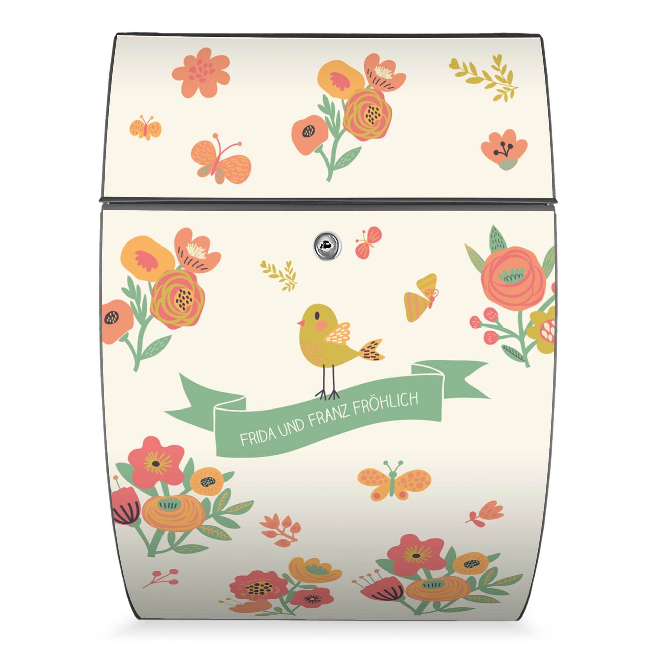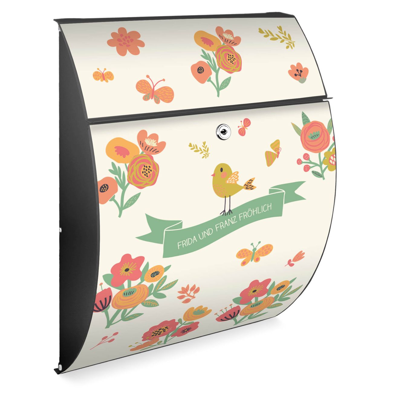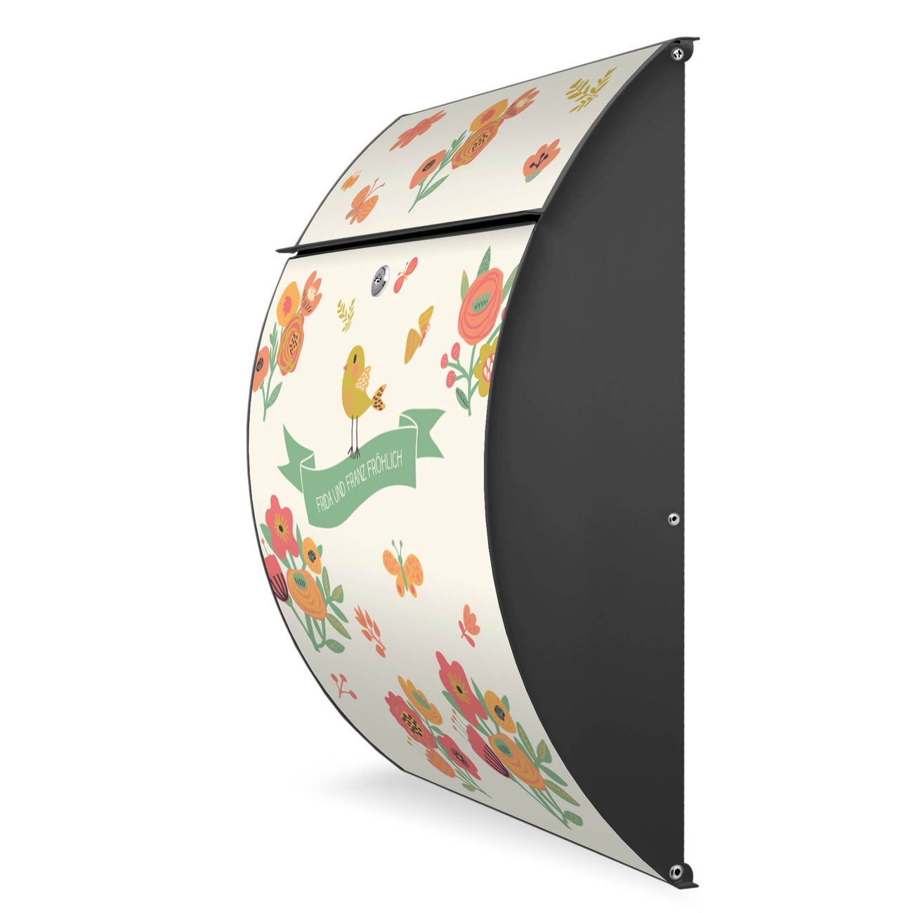 FUNKTION: DESIGN: Das Modell Riviera mit Motiv WT Vintage Flower hat ein sehr ansprechendes und zeitloses Design. Heben Sie Sich von der tristen grauen Masse ab, ohne auf Funktionalität zu verzichten. Der integrierte Öffnungsstopp ermöglicht eine einfache Handhabung beim Entnehmen der Post. DETAILS: Der Postkasten besteht aus vollflächig verzinktem Stahl welcher in Anthrazit lackiert wurde. Das Motiv besteht aus einer wetter- und UV-festen Folie, die mit einem Schutzlaminat überzogen ist, durch die Ihren Briefkasten zusätzlich vor Kratzern geschützt ist. Sie erhalten 2 Schlüssel sowie das passende Montagematerial. NUTZEN: Sie können den Briefkasten sowohl als Wandbriefkasten montieren oder einen passenden Ständer kaufen und als Standbriefkasten einbetonieren. Die Größe bietet genügend Platz für Sendungen aller Art, der Einwurf fasst auch größere A4 Sendungen. BANJADO: Ihr Briefkasten wird in Sachsen in einer kleinen Manufaktur von Hand veredelt. Die Motivfolie ist lösungsmittelfrei und schutzlaminiert, dies sorgt für einen langen Halt. Wir legen großen Wert auf die Verbindung von Funktionalität und Design. Sie erhalten Handarbeit aus Sachsen.