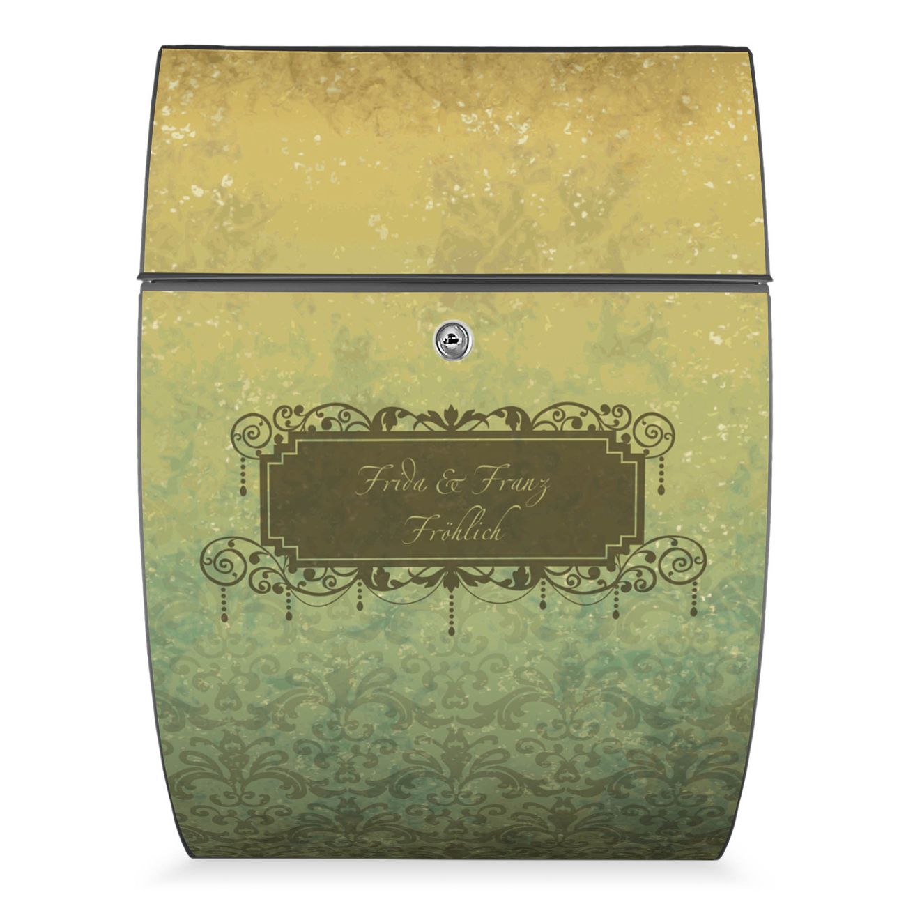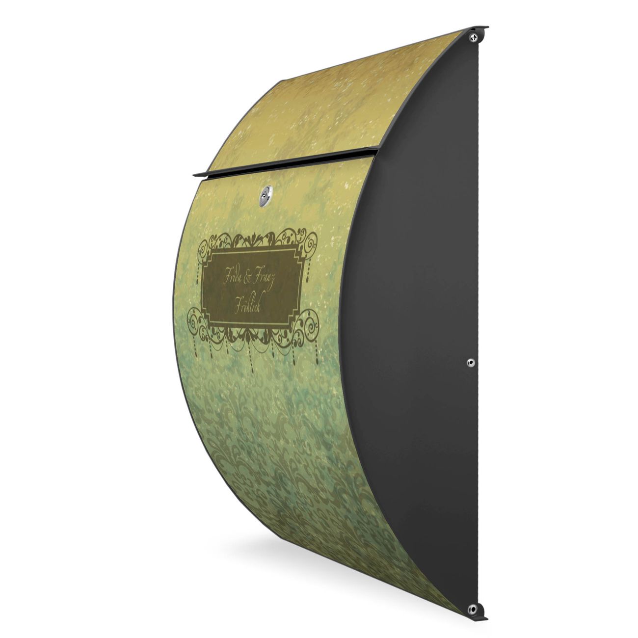 FUNKTION: DESIGN: Das Modell Riviera mit Motiv WT Vintage Messing hat ein sehr ansprechendes und zeitloses Design. Heben Sie Sich von der tristen grauen Masse ab, ohne auf Funktionalität zu verzichten. Der integrierte Öffnungsstopp ermöglicht eine einfache Handhabung beim Entnehmen der Post. DETAILS: Der Postkasten besteht aus vollflächig verzinktem Stahl welcher in Anthrazit lackiert wurde. Das Motiv besteht aus einer wetter- und UV-festen Folie, die mit einem Schutzlaminat überzogen ist, durch die Ihren Briefkasten zusätzlich vor Kratzern geschützt ist. Sie erhalten 2 Schlüssel sowie das passende Montagematerial. NUTZEN: Sie können den Briefkasten sowohl als Wandbriefkasten montieren oder einen passenden Ständer kaufen und als Standbriefkasten einbetonieren. Die Größe bietet genügend Platz für Sendungen aller Art, der Einwurf fasst auch größere A4 Sendungen. BANJADO: Ihr Briefkasten wird in Sachsen in einer kleinen Manufaktur von Hand veredelt. Die Motivfolie ist lösungsmittelfrei und schutzlaminiert, dies sorgt für einen langen Halt. Wir legen großen Wert auf die Verbindung von Funktionalität und Design. Sie erhalten Handarbeit aus Sachsen.