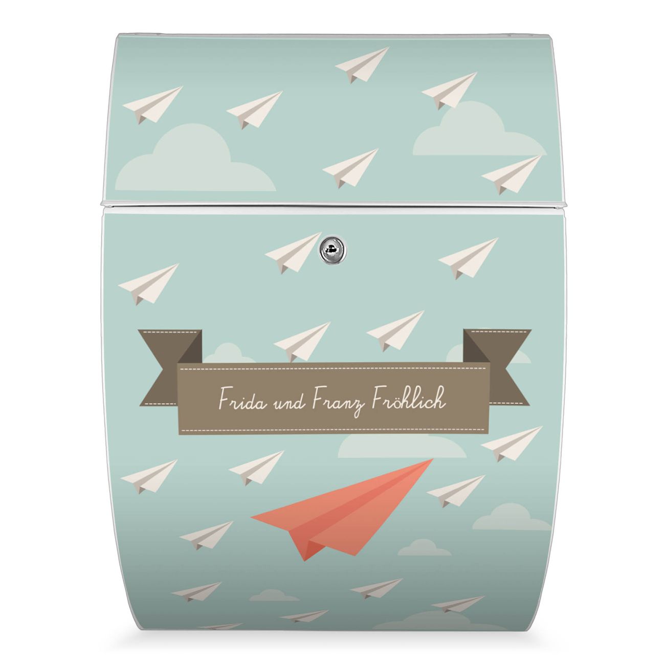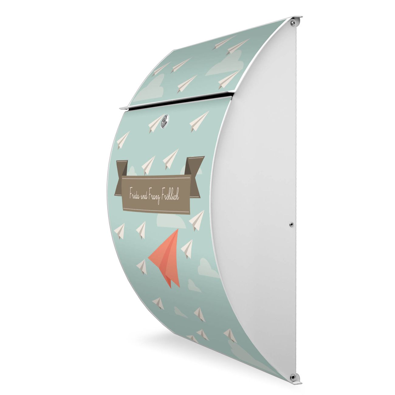 FUNKTION: DESIGN: Das Modell Riviera mit Motiv WT Wolken hat ein sehr ansprechendes und zeitloses Design. Heben Sie Sich von der tristen grauen Masse ab, ohne auf Funktionalität zu verzichten. Der integrierte Öffnungsstopp ermöglicht eine einfache Handhabung beim Entnehmen der Post. DETAILS: Der Postkasten besteht aus vollflächig verzinktem Stahl welcher in weiß lackiert wurde. Das Motiv besteht aus einer wetter- und UV-festen Folie, die mit einem Schutzlaminat überzogen ist, durch die Ihren Briefkasten zusätzlich vor Kratzern geschützt ist. Sie erhalten 2 Schlüssel sowie das passende Montagematerial. NUTZEN: Sie können den Briefkasten sowohl als Wandbriefkasten montieren oder einen passenden Ständer kaufen und als Standbriefkasten einbetonieren. Die Größe bietet genügend Platz für Sendungen aller Art, der Einwurf fasst auch größere A4 Sendungen. BANJADO: Ihr Briefkasten wird in Sachsen in einer kleinen Manufaktur von Hand veredelt. Die Motivfolie ist lösungsmittelfrei und schutzlaminiert, dies sorgt für einen langen Halt. Wir legen großen Wert auf die Verbindung von Funktionalität und Design. Sie erhalten Handarbeit aus Sachsen.